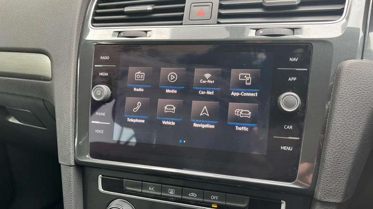 'Lights On' Reminder warning buzzer, 8" colour touch screen, ACC - Adaptive cruise control with front assist, forward collision warning, distance monitoring, city emergency brake and speed limiter, App-Connect, Bluetooth telephone and audio connection for compatible devices, Brake pad wear indicator warning light, Drive mode selector, Driver alert system, Driver profile selection, Front assist, radar sensor controlled distance monitor, city emergency braking + predictive pedestrian protection, Front assistant collision mitigation, Instrument cluster in white, Misfuelling protection device, Multifunction computer with visual gear change recommendation for fuel consumption, Power assisted speed sensitive electro-mechanical steering, Speedo, rev counter, electronic odometer, trip, service interval display, exterior temperature and fuel gauge, Stop/start system, Ultrasonic front and rear optical and audible parking sensors, Warning buzzer and light for front seatbelts unfastened, Battery regeneration during braking, Diesel particulate filter, XDS electronic differential lock, 8 Speakers, CD/MP3/WMA, USB and SD card reader, aux-in, Composition media system, DAB Digital radio receiver, SMS Functionality, Automatic coming/leaving home lighting function, Automatic dimming rear view mirror/rain sensor, Black front air intake and radiator grille with chrome insert, Black rear diffuser, Body colour bumpers, Body colour door handles, Body colour door mirrors with integrated indicators, Electric front windows, Electric rear windows, Electrically adjustable and heated door mirrors, Glavanised body, Heated rear windscreen, High level 3rd brake light incorporating LED Technology, Range adjustable headlights via infotainment system with LED daytime running lights, Rear number plate lights incorporating LED technology, Rear window aerial, Rear window wash/wipe with intermittent wipe, Reflectors in all doors, Remote electrically foldable door mirrors, door mirror puddle lights and reverse activated kerb-view adjustment on passengers door mirror, Tailgate with integrated rear roof spoiler, Windscreen wipers/ intermittent wipe + 4 position delay, 12V socket in luggage compartment, 3 rear headrests, 4 load lashing points in luggage compartment, 60/40 split folding rear seat backrest, Bag hook in luggage compartment x 2, Cooled glovebox, Dust/pollen filter, Front and rear reading lights incorporating LED technology, Front centre armrest with storage compartment and two rear air vents, Front seat back storage pockets, Grab handles front x 2, rear x 2 with integrated coat hooks, Height and reach adjustable steering wheel, Illuminated vanity mirrors, Instrument lighting white adjustable panel illumination, Interior light delay, Isofix preparation for 2 rear child seats, Load through provision with rear centre armrest and cupholders x2, Luggage compartment light, Multifunction leather steering wheel with leather trimmed gear knob, Overhead storage box, Pearl grey headlining, Storage box in luggage compartment, Storage compartment in roof console with cover, Storage compartments in front doors, Storage compartments in rear doors, Stowable luggage compartment cover, Sun visors, Three spoke multi-function leather trimmed steering wheel and gearknob, Variable boot floor, height adjustable and removable, Mirror pack - Golf, 3 rear three point seatbelts, Airbags - Driver's and front passenger's, curtain airbag, Driver's knee, front side impact and passenger's airbag deactivation switch, Anti-lock Braking System (ABS) with Hydraulic Brake Assist (HBA), Automatic post collision braking system, Child locks on rear doors, Driver/Passenger optimised head restraints, Electronic parking brake with auto hold, Electronic stability control (ESC) including Electronic differential lock (EDL) and ASR (Traction control) with deactivation via infotainment system, Pre crash preventive occupant protection, Three point height adjustable front seatbelts with tensioners, Tyre pressure loss indicator, Alarm with interior protection, Electronic engine immobiliser, Remote central locking with 2 remote folding keys, Brushed dark silver decorative inserts in dash and door panels, Chrome plated air vent surround, Chrome-plated light switch surround, Polar night black centre console, Steel space saver spare wheel,