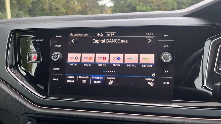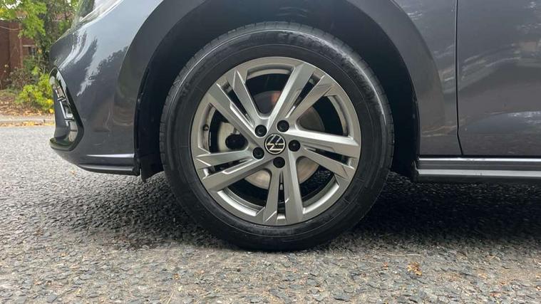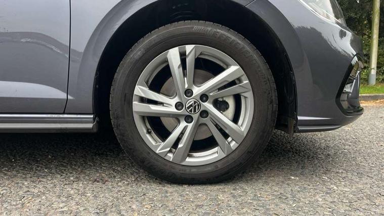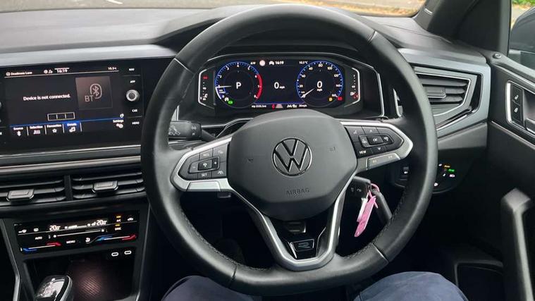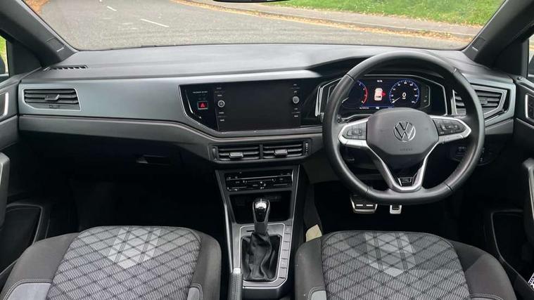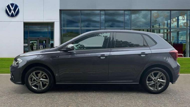 Adaptive cruise control with follow-to-stop and speed limiter, Advanced driver attention and drowsiness monitor, Bluetooth mobile phone interface, Digital Cockpit Pro with 10.25" Display, Dynamic road sign display, Emergency call service, Multifunction camera, Power assisted speed sensitive steering, Preparation for We connect and We connect plus, Speedo and rev counter, electronic odometer, trip, service interval display and fuel gauge, Standard rear axle, Travel Assist - Lane keeping system and traffic jam assist, Travel assist including emergency assist, Trip computer, Warning signal and warning light for front and rear seatbelts not fastened, Washer fluid level indicator, Wireless app connect, Front wheel drive, Rear shock absorpion, Start-stop system with battery regeneration (recuperation - energy recovery during braking), DAB Digital radio, Diversity antenna for FM reception, Front and rear 6 speakers, Body colour bumpers, Body colour door handles, Electric front windows, Front scuff plates with R-Line logo, Heat insulating glass windscreen, Power folding adjustable/heated exterior mirrors and front passenger exterior mirror lowering function, Rear electric windows, Rear fog light, Rear side wing doors, Rear windscreen washer and wiper with interval delay, Third brake light, 12V power socket in centre console, 2 USB-C ports in the front, 2 USB-C charging sockets on the center console in the rear, 3 rear head restraints, 60/40 split folding rear seat and rear seat bench not split, Air care climatronic air conditoning system with active combination filter and 2-zone temperature control, Black roof lining, Carpet mats, front and rear, Chrome plated radiator grille inserts, air vent surrounds and light switch surrounds, Door and side trim panel, Driver and front passenger seat height adjustment, Driver/passenger sunvisors with illuminated vanity mirrors, Front centre armrest, Front footwell illumination, Front seat backrest storage pockets, Front sports comfort seats, Handbrake lever handle in leather, Headliner in recycled material, Isofix child seat preparation easy-fit (for two outer rear seats, and front passenger seat) compatible with I-size, Karoso artvelours cloth upholstery, Leather trimmed gear knob, LED interior light with switch off delay and dimmer, 2 reading lights front and rear, Luggage compartment cover, Luggage compartment floor, Luggage compartment lighting, Lumbar adjustment for front seats, Single front passenger seat, Stainless steel pedals, Standard pedal cluster, Three spoke leather wrapped multifunction steering wheel with shifting paddles, Light and sight pack - Polo R-Line/Black Edition, 3 point height adj front seatbelts + pretensioners, 3x3 point rear seatbelts, ABS, Driver and front passenger airbag with front passenger airbag deactivation, Drivers and front passengers safety optimised head restraints, ESC (Electronic stability control) + EDL (Electronic Differntial lock) and ASR (Traction control), Extended and predictive pedestrian/ cyclist protection, Front curtain and side airbags with center airbag, Front/rear disc brakes, Hill hold control, Manual child lock in rear doors, Single tone horn, Tyre pressure loss indicator, Alarm with interior protection, Anti-theft alarm system with interior monitoring, backup horn, and towing protection, Anti-theft wheel bolts, Electronic engine immobiliser, Chrome applications on rotary light, mirror adjustment, window regulator switches, outlet with frame in black, Dark grey anodised matt decorative inserts in dash and front door panels, 16" Coventry alloy wheels, Low rolling resistance tyres,