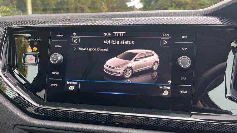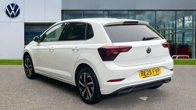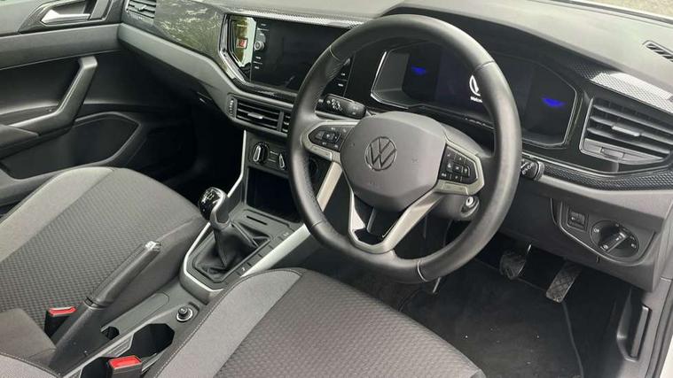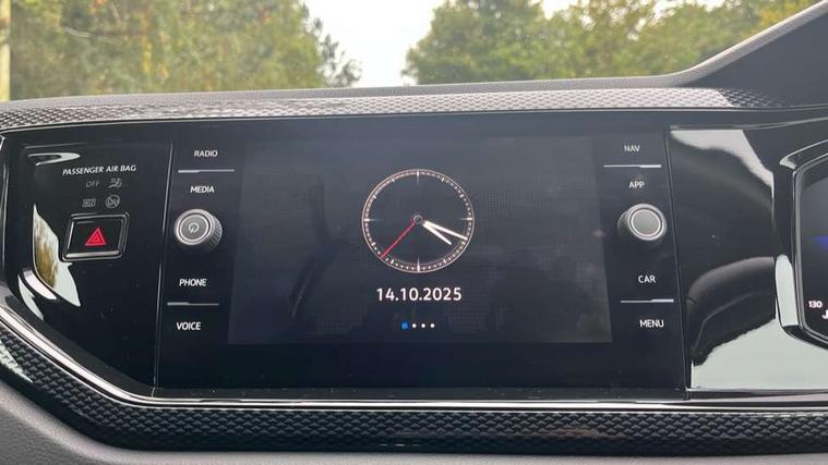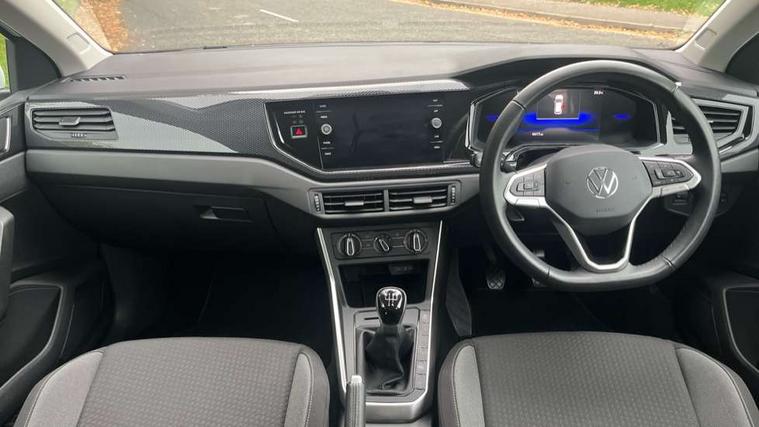 Adaptive cruise control without follow-to-stop and speed limiter, Advanced driver attention and drowsiness monitor, Bluetooth mobile phone interface, Dynamic road sign display, Emergency call service, Multifunction front facing camera for distance control, Park distance control, Power assisted speed sensitive steering, Preparation for navigation system with media and internet package, Preparation for We connect and We connect plus, Rear view camera, Speedo and rev counter, electronic odometer, trip, service interval display and exterior temperature gauge, Standard rear axle, Travel Assist - Lane keeping system and traffic jam assist, Travel assist including emergency assist, Trip computer, Warning signal and warning light for front and rear seatbelts not fastened, Washer fluid level indicator, Wireless app connect, Front wheel drive, Rear shock absorpion, Start-stop system with battery regeneration (recuperation - energy recovery during braking), DAB Digital radio, Diversity antenna for FM reception, Front and rear 6 speakers, Automatic dimming interior rear view mirror, Automatic headlight control with LED separate daytime running lights with coming/leaving home function, Body colour bumpers with chrome inserts, Body colour door handles, Body colour door mirrors, Electric front windows, Engine badge deletion, Headlight range adjustment, Heat insulating and laminated safety glass windshield, LED Headlights, LED rear combination lamps, Power folding adjustable/heated exterior mirrors and front passenger exterior mirror lowering function, Rain sensor, Rear electric windows, Rear fog light, Rear side wing doors, Rear tinted glass from B-pillar backwards approx 65% tinted, Rear windscreen washer and wiper with interval delay, Third brake light, 12V power socket in centre console, 2 front and 2 rear reading lights with switch off delay and dimmer, 2 USB-C ports in the front, 2 USB-C charging sockets on the center console in the rear, 3 rear head restraints, 60/40 split folding rear seat and rear seat bench not split, Ceramique roof lining, Chrome plated radiator grille inserts, air vent surrounds and light switch surrounds, Door and side trim panel, Driver and front passenger seat height adjustment, Driver/passenger sunvisors with illuminated vanity mirrors, Front centre armrest, Front seat backrest storage pockets, Front standard seats, Handbrake lever handle in leather, Hartley/Thomas cloth upholstery, Headliner in recycled material, Isofix child seat preparation easy-fit (for two outer rear seats, and front passenger seat) compatible with I-size, Leather trimmed gear knob, Luggage compartment cover, Luggage compartment lighting, Removable luggage compartment floor, Single front passenger seat, Standard climatic zones, Standard pedal cluster, Three spoke leather wrapped multifunction steering wheel, Light and vision pack - Polo, 3 point height adj front seatbelts + pretensioners, 3 point seat belt for centre rear seat, 3 point seatbelts, outer rear with ECE lable, ABS, Driver and front passenger airbag with front passenger airbag deactivation, Drivers and front passengers safety optimised head restraints, ESC (Electronic stability control) + EDL (Electronic Differntial lock) and ASR (Traction control), Extended and predictive pedestrian/ cyclist protection, Front assist with autonomous emergency braking (for Adaptive Cruise Control ACC up to 130 mph), Front curtain and side airbags with center airbag, Front disc brakes, Hill hold control, Manual child lock in rear doors, Rear drum brakes, Single tone horn, Tyre pressure loss indicator, Alarm with interior protection, Anti-theft alarm system with interior monitoring, backup horn, and towing protection, Anti-theft wheel bolts, Electronic engine immobiliser, Lava stone black gloss/matt decorative inserts in dash and front door panels, 16" Torsby alloy wheels, Low rolling resistance tyres,