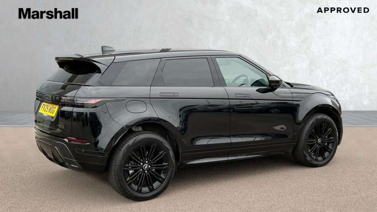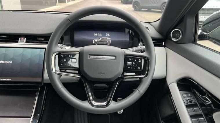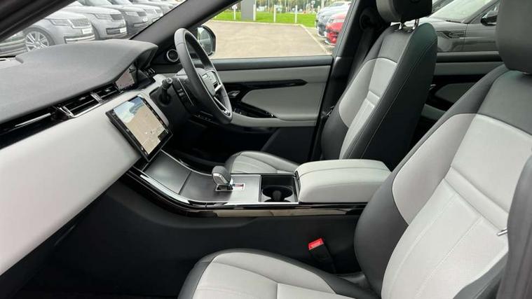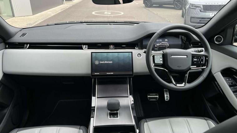 11.4" touch screen, 3D 360 degree surround camera with wade sensing, Adaptive cruise control, Android Auto, Apple car play, Blind spot assist, Bluetooth connectivity, Brake pad wear indicator warning light, Driver condition monitor, eCall emergency system, Eco mode, Electronic power assisted steering (EPAS), Front and rear parking sensors with auto brake, InControl remote, Interactive driver display, Land Rover InControl apps, Lane keep assist, Pivi pro connected includes diamond pivi variant, smart settings, connected navigation pro, nuance speech licence, Powered tailgate/boot lid, Rear collision monitor, Rear traffic monitor, Tailgate, Traffic sign recognition with adaptive speed limiter, Voice control system, Wireless device charging, All terrain progress control, Electric rear axle drive, Large fuel tank, Passive suspension, Public charging cable, Terrain Response 2, Digital Audio Broadcast radio-DAB, Steering wheel mounted controls, Acoustic laminated windscreen, Auto headlights, Auto high beam assist, Automatic headlight levelling, Electric windows with one touch open/close and anti trap, Flush deployable exterior door handles, Front and rear recovery eyes, Heated rear window with timer, Heated washer jets, Heated windscreen, LED headlights with signature DRL and LED tail Lights, Power fold, auto-dimming, heated door mirrors with approach lights and auto dimming driver side, Rain sensing windscreen wipers, Rear animated directional indicators, Rear fog lights, Rear side wing doors, Rear wiper, Tailgate spoiler, Third brake light, Winter wiper park position, 12 way driver memory and 10 way passenger electric front seats with 2 way manual headrest + 4 way lumbar support, 40:20:40 split folding rear seats with centre headrest and armrest, Bright metal pedals, Carpet mats, Chrome tread plates with range rover branding Includes stainless steel loadspace scuff plate with etched graphic, Customer configurable single point entry, Front and rear cupholders, Heated front seats, Heated steering wheel, Isofix system on outer rear seats, Manually adjustable steering column, Overhead lighting console, Overhead stowage for sunglasses, Passive front head restraints, Rear air vents, Rear head restraints, Satin chrome gearshift paddles, SE Grained leather upholstery, Single passenger seat, Standard steering wheel with Moonlight Bezel, Sunvisors with illuminated vanity mirrors, Twin sliding front centre armrest, Power socket pack 2 - Evoque, 3 rear 3 point seatbelts, Anti-lock braking system (ABS), Brake hold function, Customer configurable autolock, DSC - Dynamic Stability Control, Electronic brake force distribution, Electronic parking brake, Electronic traction control, Emergency braking, Front and rear seatbelt reminder, Hill descent control, Hill launch assist, Low traction launch, Occupant protection assist, Passenger seat occupant detector, Power operated child locks, Roll stability control, Six airbags - Driver and passenger airbags/driver knee airbag/front side airbag and curtain airbags, Torque vectoring brake, Tyre pressure monitoring system, Alarm, Immobiliser, Intrusion sensor, Keyless entry, Locking wheel nuts, All season tyres,