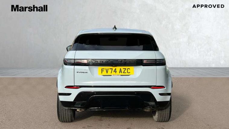 11.4" touch screen, 3D 360 degree surround camera with wade sensing, Adaptive cruise control, Android Auto, Apple car play, Blind spot assist, Bluetooth connectivity, Brake pad wear indicator warning light, Driver condition monitor, eCall emergency system, Eco mode, Electronic power assisted steering (EPAS), Front and rear parking aid, InControl remote, Interactive driver display, Land Rover InControl apps, Lane keep assist, Pivi pro connected includes diamond pivi variant, smart settings, connected navigation pro, nuance speech licence, Powered tailgate/boot lid, Rear collision monitor, Rear traffic monitor, Tailgate, Traffic sign recognition with adaptive speed limiter, Voice control system, Wireless device charging, All terrain progress control, Diesel exhaust fluid (DEF) large tank, Efficient Driveline, Large fuel tank, Terrain Response 2, Digital Audio Broadcast radio-DAB, Steering wheel mounted controls, Acoustic laminated windscreen, Auto headlights, Auto high beam assist, Automatic headlight levelling, Electric windows with one touch open/close and anti trap, Flush deployable exterior door handles, Front and rear recovery eyes, Heated rear window with timer, Heated washer jets, Heated windscreen, LED headlights with signature DRL and LED tail Lights, Power fold, auto-dimming, heated door mirrors with approach lights and auto dimming driver side, Rain sensing windscreen wipers, Rear animated directional indicators, Rear fog lights, Rear side wing doors, Rear wiper, Side repeater indicators in mirror, Tailgate spoiler, Third brake light, Winter wiper park position, 12 way driver memory and 10 way passenger electric front seats with 2 way manual headrest + 4 way lumbar support, 40:20:40 split folding rear seats with centre headrest and armrest, Ambient interior lighting, Bright metal pedals, Carpet mats, Chrome tread plates with range rover branding Includes stainless steel loadspace scuff plate with etched graphic, Customer configurable single point entry, Front and rear cupholders, Heated front seats, Heated steering wheel, Isofix system on outer rear seats, Manually adjustable steering column, Overhead lighting console, Overhead stowage for sunglasses, Passive front head restraints, Rear air vents, Rear head restraints, Satin chrome gearshift paddles, SE Grained leather upholstery, Single passenger seat, Standard steering wheel with Moonlight Bezel, Sunvisors with illuminated vanity mirrors, Twin sliding front centre armrest, Power socket pack 2 - Evoque, 3 rear 3 point seatbelts, Anti-lock braking system (ABS), Brake hold function, Customer configurable autolock, DSC - Dynamic Stability Control, Electronic brake force distribution, Electronic parking brake, Electronic traction control, Emergency braking, Front and rear seatbelt reminder, Hill descent control, Hill launch assist, Low traction launch, Occupant protection assist, Passenger seat occupant detector, Power operated child locks, Roll stability control, Six airbags - Driver and passenger airbags/driver knee airbag/front side airbag and curtain airbags, Torque vectoring brake, Tyre pressure monitoring system, Alarm, Immobiliser, Intrusion sensor, Keyless entry, Locking wheel nuts, All season tyres,