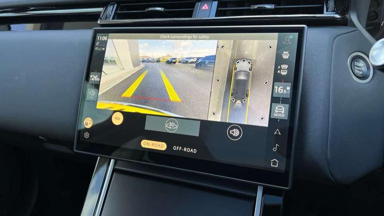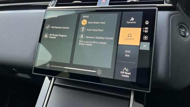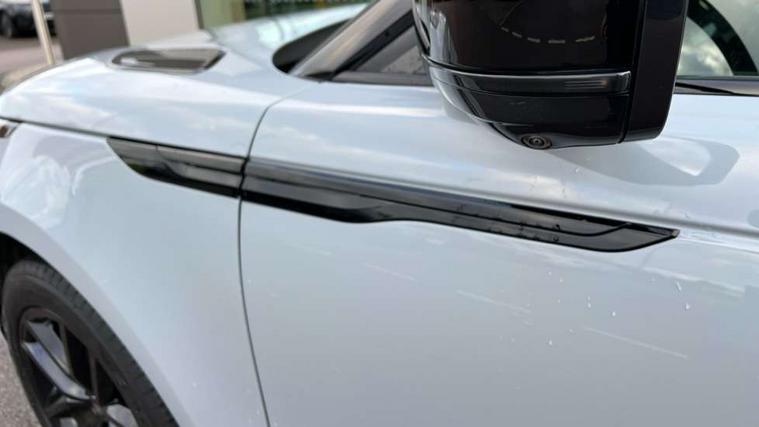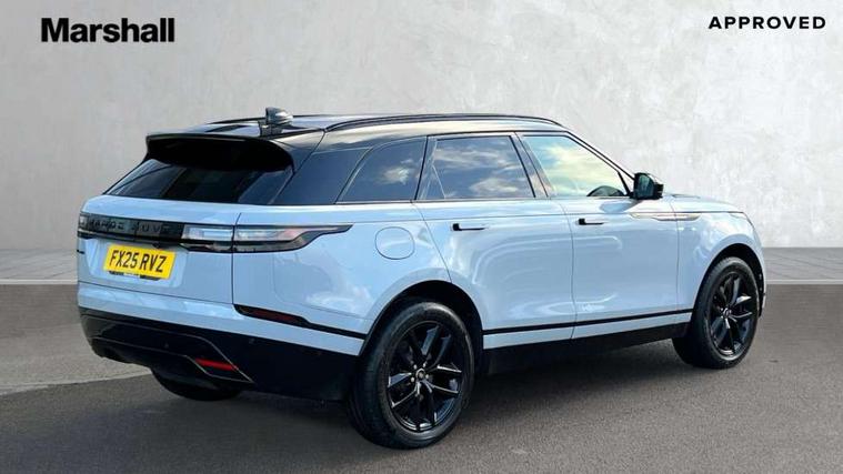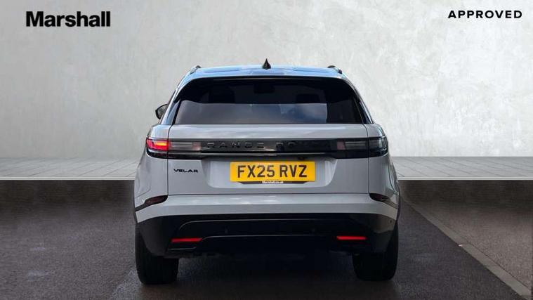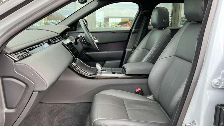3D surround camera includes forward traffic detection and vehicle guidance, Android Auto, Apple CarPlay, Blind spot assist, Bluetooth connectivity, Brake pad wear indicator warning light, Driver condition monitor, eCall emergency call system, Front and rear parking aid, InControl remote, Land Rover InControl apps, Lane keep assist, Pivi pro with connected navigation, Rear traffic monitor, Service indicator, Speed proportional electronic power assisted steering (EPAS), Traffic sign recognition with adaptive speed limiter, Trip computer, Voice control system, Wade Sensing, Wireless device charging, 8 speed automatic transmission, All terrain progress control, Coil suspension system, Open differential with torque vectoring by braking, Single speed transfer box, DAB radio, Steering wheel mounted controls, 3rd brake light, Acoustic laminated windscreen, Auto dimming interior rear view mirror, Auto high beam assist, Automatic headlamp levelling, Automatic headlights, Body coloured bumpers, Boot protection plate, Electric windows with one touch open/close and anti trap, Flush deployable exterior door handles, Follow me home headlights, Heated rear window with timer, Heated washer jets, Heated windscreen, LED headlights with signature DRL, Metal front tread plates, Metal load space scuff plates, Power fold, auto-dimming, heated door mirrors with memory and approach lights, Rain sensor windscreen wipers, Rear animated directional indicators, Rear fog lights, Rear side wing doors, Rear wash/wipe, Tailgate/boot lid spoiler, Trailer stability assist, Velar badge, 14 way electrically adjustable front seats with driver's memory function, 3 seat bench in 2nd row, Ambient lighting, Bright metal pedals, Carpet mats, Driver/passenger sunvisors with illuminated vanity mirrors, Ebony morzine headlining, Electrically adjustable steering column, Heated steering wheel, Isofix system on outer rear seats, Loadspace cover, Overhead lighting console, Overhead stowage for sunglasses, Passive front headrests, Rear air vents, Rear centre headrest, Single front passenger seat, Twin front cupholders, Twin sliding front centre armrest, Online pack with data plan - Velar, Power socket pack 2 - Velar, 355mm Front and 325mm Rear brakes, 3x3 point rear seatbelts, Anti-lock braking system (ABS), Cornering brake control, Curtain airbags, Customer configurable autolock, Door side intrusion beams, Driver airbag, DSC - Dynamic Stability Control, Electronic brake force distribution, Electronic parking brake, Electronic traction control, Emergency braking, Front and rear seatbelt reminder, Hill descent control, Hill launch assist, Low traction launch, Passenger airbag, Power operated child locks, Rear airbags, Roll stability control, Side airbags, Tyre pressure monitoring system (TPMS), Global lock and unlock switch on driver door, Immobiliser, Intrusion sensor, Keyless entry, Lock only switch on front passenger door, Locking wheel nuts, Perimetric alarm, Remote central locking, All season tyres,