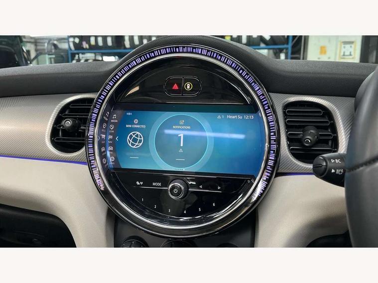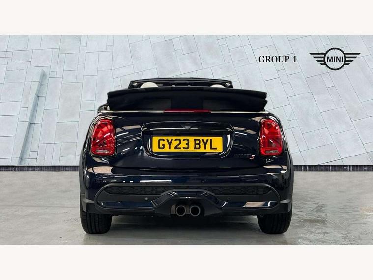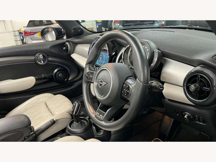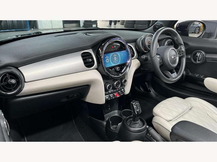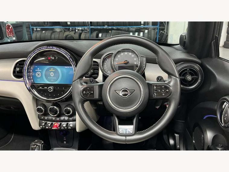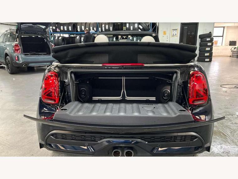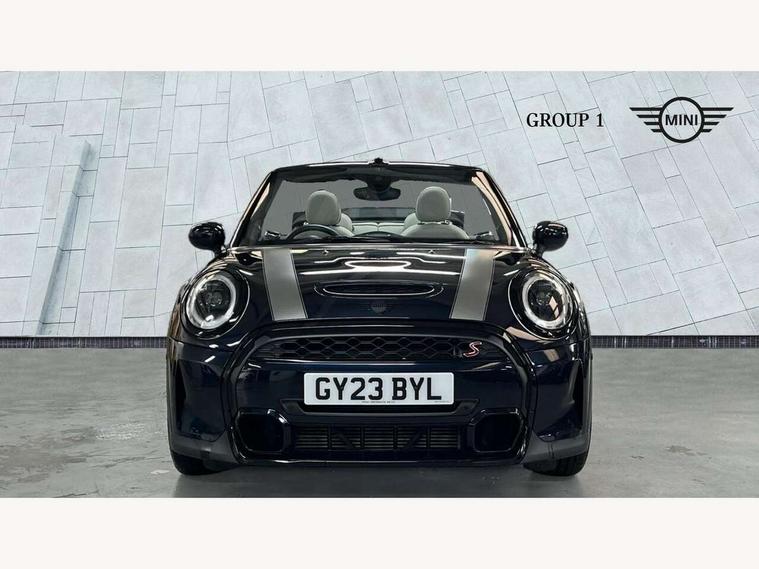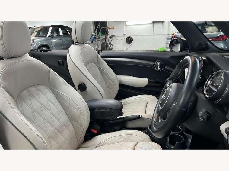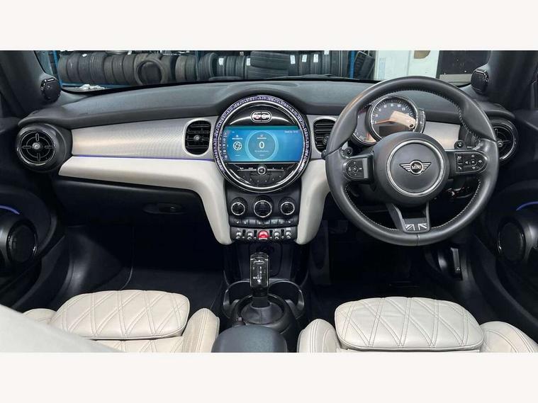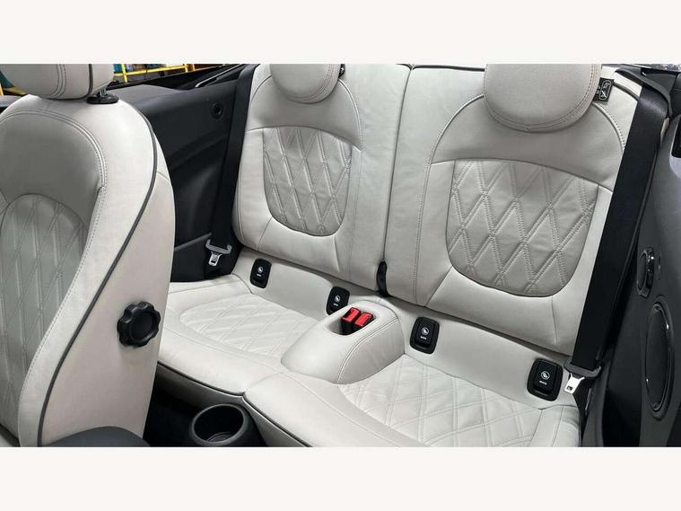 Automatic start/stop function with brake energy recuperation, Compatible mobile phone bluetooth with audio streaming, Electro-mechanical speed dependant steering assistance, Instrument cluster, MINI Driving Modes - centre toggle switch to control driving setting (sport, mid and green), Mini E-call, MINI TeleServices, On board computer, Rear park distance control, Service interval indicator, Double Vanos system, Fully variable valve control, High precision injection, Performance Control, Steptronic sport transmission with double clutch and steering wheel paddles, FM tuner and DAB digital radio, Automatic headlight activation switch, Bonnet scoop, Chrome plated fuel cap, Dynamic brake lights, Electric windows, Fully electric black softtop with integrated sunroof functionality, Heated rear window, Heated windscreen washer jets, Metal door sill strips with Cooper S imprint, Model logo Cooper S on right of tailgate, Radiator grille bars, tailgate handle, lower front grille grating, rear central fog light in chrome, Rain sensor window wipers, Rear fog lights, Rear LED lights with union jack design, Side scuttle panel with integrated indicator, Sun/heat protection glass, Two central exhaust tailpipes with chrome finisher, White indicator lenses, 12V Accessory socket in centre console, 4 lashing eyes in luggage compartment, 50/50 split folding rear seats, Air vents, gear lever base, speakers in doors, door handles in chrome, Chrome interior highlights, Cupholders, Easy Load boot handles, Front and rear head restraints, Front and rear isofix with front passenger airbag deactivation, Front seatback storage pockets, Glove compartment, Height and length steering column adjustment, Interior lighting with 12 basic colours selectable via toggle switch in roof, Leather gearshift lever and handbrake gaiters, LED reading lights, vanity mirror lights, front foot well light and spotlight on front seats, Mechanical seat adjustment, driver seat height adjust, forward/back and front seats backrest, Mini logo projection on floor from drivers exterior mirror, MINI Yours fine walk nappa leather steering wheel with contrast stitching in silver and MINI Yours badge, Multifunction steering wheel, Storage compartments in doors, Sunvisors with vanity mirrors, Convertible pack with comfort access - Mini Convertible, 3 point seatbelts on all four seats, 6 Airbags - front, side and seat belt tensioners, Active rollover protection, Anti-lock braking system (ABS), DSC - Dynamic Stability Control, Front and rear disc brakes, Hill start assist, Two tone horn, Tyre pressure monitoring system, Alarm system with tilt sensor, monitoring doors, bonnet interior and tailgate, Electronic vehicle immobiliser, Keyless Go, Chrome line interior, Tool kit,