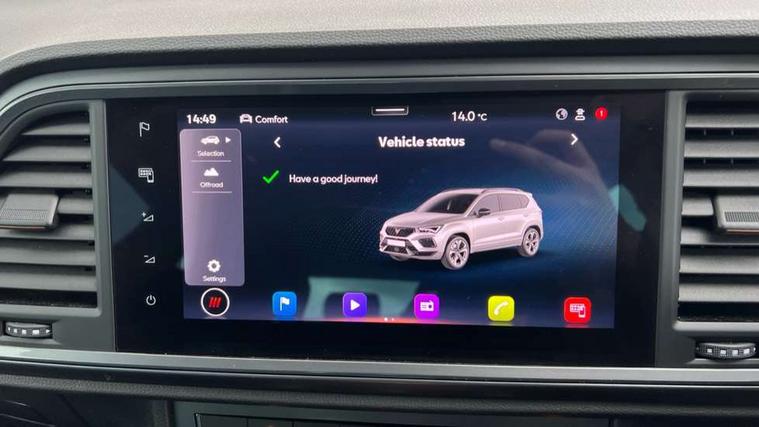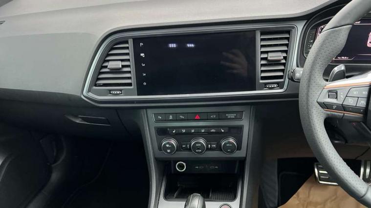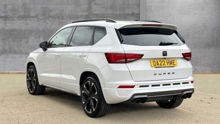 CUPRA drive profile -Normal, Sport, CUPRA and Individual modes, steering/throttle response, gearshift mode, sound actuator and dynamic chassis control, Digital cockpit, E-call, Electric tailgate with virtual pedal, Front and rear view camera, Outside temperature gauge, Progressive power assisted steering, Self parking functionality (includes front and rear parking sensors), Top view camera, Trip computer, Wireless full link smartphone integration, Wireless phone charger, CUPRA sport suspension, Beats audio system, Steering wheel mounted audio/phone controls, Body colour bumpers with dark aluminium diffusor, Body coloured wheel arch surrounds, Dark tinted rear windows, Daytime running lights, Door mirrors with welcome CUPRA light silhouette, Dynamic headlight range control with self adjusting whilst driving, Electric adjustable/heated/folding door mirrors, Front and rear electric windows, Front grille frame in chrome, Full LED headlamps with lens and LED front fog lamps with cornering function, Gloss black door mirrors, Gloss black roof rails, Gloss black side mouldings, Gloss black side window trim, Illuminated aluminium front door sill, LED rear tail lights with dynamic indicators, Rear fog lights, Rear side wing doors, Rear spoiler, Rear wash/wipe, Specific CUPRA design front bumper, Third brake light, Visible twin black exhaust pipes in both sides with dark aluminium diffuser, 12v socket in front, 3 seat bench in 2nd row, 60/40 split folding rear seat, Aluminium pedals, Cupra steering wheel emblem, Dual zone climate control, Electric driver seat with memory function, Front and rear head restraints, Front centre armrest, Front seat back storage pockets, Heated front seats, Heated steering wheel, Height adjustable driver and passenger seat with lumbar adjustment, ISOFIX points in outer rear seats with top tether anchorage points, Leather steering wheel and gear knob, Multicoloured ambient lighting with LED interior illumination, Pedal cluster, Petrol blue leather bucket seats, Rear armrest and easy back seat release mechanism from boot, Single front passenger seat, Steering wheel mounted gearshift paddles, Storage compartment in roof console for sunglass, Storage compartment under driver's seat, Convenience pack - Ateca, Interior lighting pack - Ateca, Navigation system plus pack with DAB - Ateca, Safe and driving pack with High beam control - Ateca, 3x3 point rear seatbelts, ABS, Traction control system (TCS), Electronic stability control (ESC) and Electronic differential lock system (XDS), Airbags - Driver and front passenger airbag with deactivation, front side, two curtain and driver's knee airbags, Black brake callipers with CUPRA logo, Electric parking brake with auto hold function, Front and rear seatbelt reminder, Front assist with autonomous emergency braking, Hill hold control, Manual rear child locks, Single tone horn, Tiredness recognition system, Tyre pressure monitoring system, Alarm, Keyless entry, Locking wheel bolts,