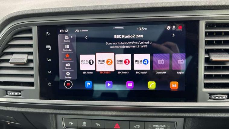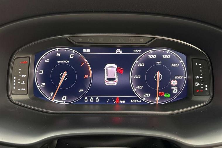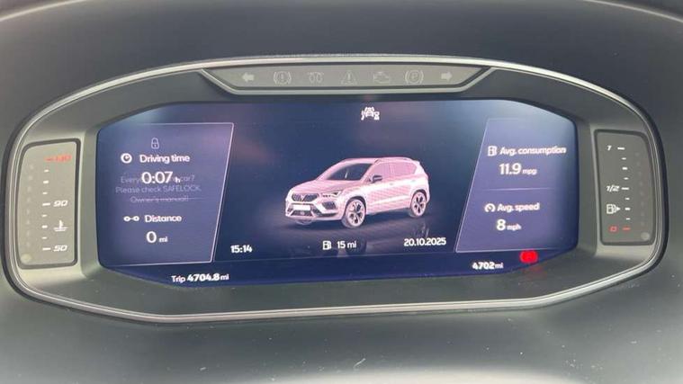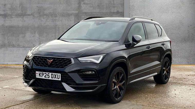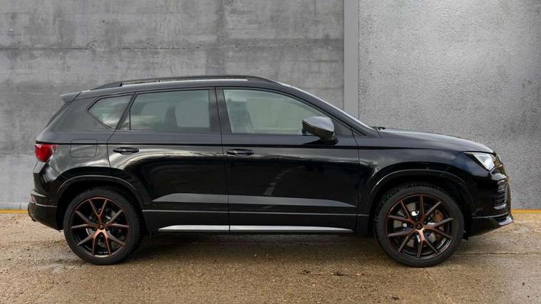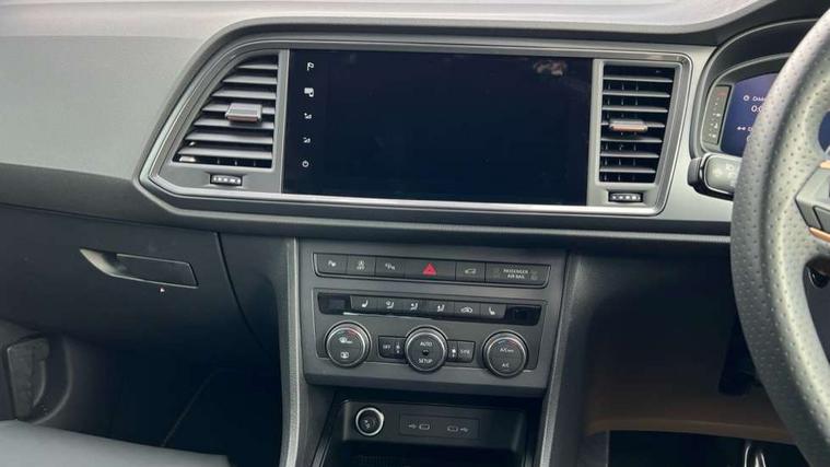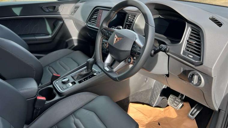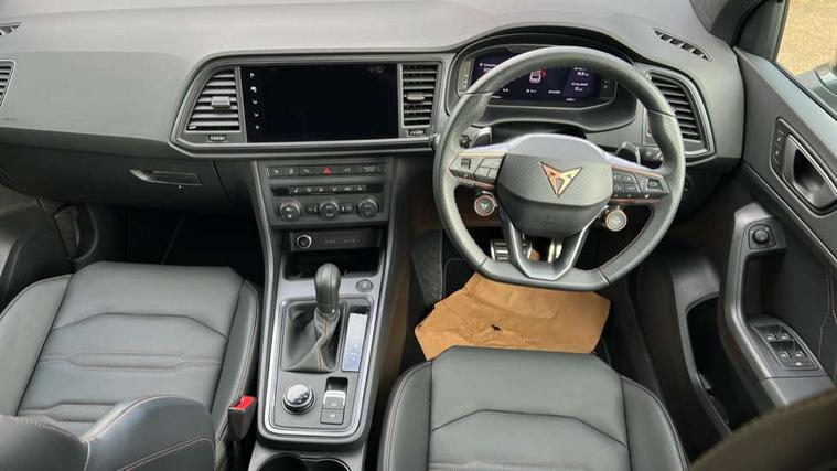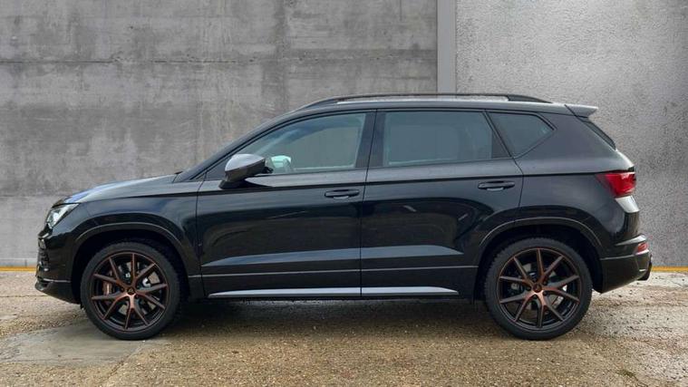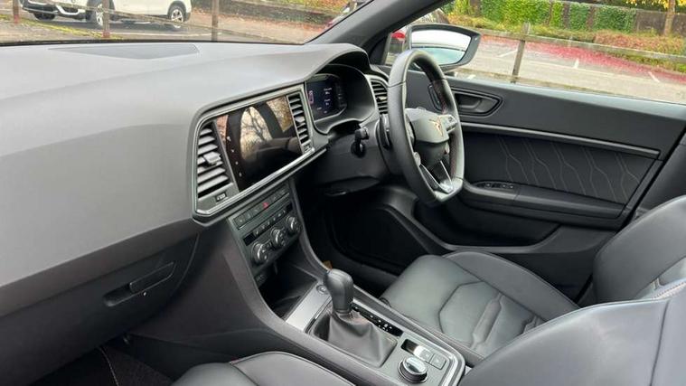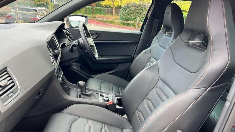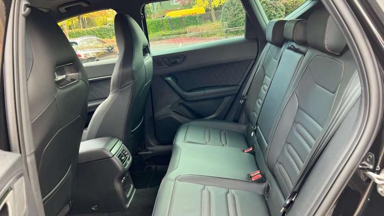 CUPRA drive profile - Normal, sport, CUPRA and individual modes and Hydraulic damper control (DCC), Digital cockpit, E-call, Electric tailgate with virtual pedal, Front and rear view camera, Outside temperature gauge, Progressive power assisted steering, Self parking functionality (includes front and rear parking sensors), Top view camera, Trip computer, wired and wireless full link smartphone integration, Wireless phone charger, CUPRA sport suspension, Steering wheel mounted audio/phone controls, Body colour bumpers with dark aluminium diffusor, Body coloured wheel arch surrounds, Dark tinted rear windows, Daytime running lights, Door mirrors with welcome CUPRA light silhouette, Dynamic headlight range control with self adjusting whilst driving, Electric adjustable/heated/folding door mirrors, Front and rear electric windows, Front grille frame in chrome, Full LED headlamps with lens and LED front fog lamps with cornering function, Gloss black door mirrors, Gloss black roof rails, Gloss black side mouldings, Gloss black side window trim, Illuminated aluminium front door sill, LED rear tail lights with dynamic indicators, Rear fog lights, Rear side wing doors, Rear spoiler, Rear wash/wipe, Specific CUPRA design front bumper, Third brake light, Visible twin black exhaust pipes in both sides, 12v socket in front, 3 seat bench in 2nd row, 60/40 split folding rear seat, Aluminium pedals, Black roof lining, Cupra steering wheel emblem, CUPRA supersports steering wheel including satellite buttons, Dual zone climate control, Electric driver seat with memory function, Front and rear head restraints, Front centre armrest, Front seat back storage pockets, Heated front seats, Heated steering wheel, Height adjustable driver and passenger seat with lumbar adjustment, ISOFIX points in outer rear seats with top tether anchorage points, Leather sport bucket seats, Multicoloured ambient lighting with LED interior illumination, Pedal cluster, Rear armrest and easy back seat release mechanism from boot, Single front passenger seat, Storage compartment in roof console for sunglass, Storage compartment under driver's seat, Convenience pack - Ateca, Interior lighting pack - Ateca, Navigation system plus pack with DAB - Ateca, Safe and driving pack with High beam control - Ateca, 3x3 point rear seatbelts, ABS, Traction control system (TCS), Electronic stability control (ESC) and Electronic differential lock system (XDS), Airbags - Driver and front passenger airbag with deactivation, front side, two curtain and driver's knee airbags, Attention and drowsiness assist, Black brake callipers with CUPRA logo, Electric parking brake with auto hold function, Front and rear seatbelt reminder, Hill hold control, Manual rear child locks, Performance brakes with front brembo calipers, Single tone horn, Tiredness recognition system, Tyre pressure monitoring system, Tyre pressure warning light, Alarm, Keyless entry, Locking wheel bolts, 19" Copper alloy wheels, Tyre repair kit,