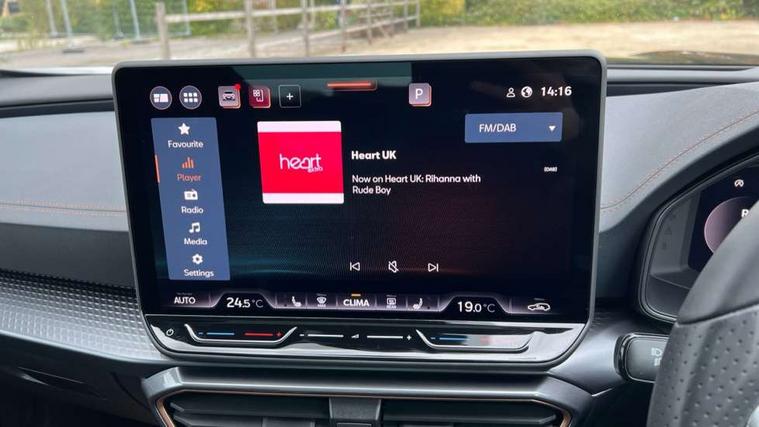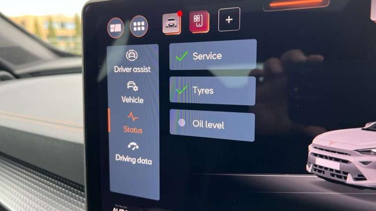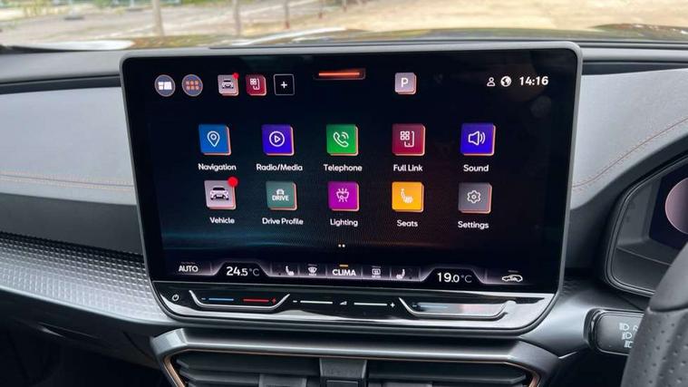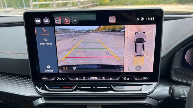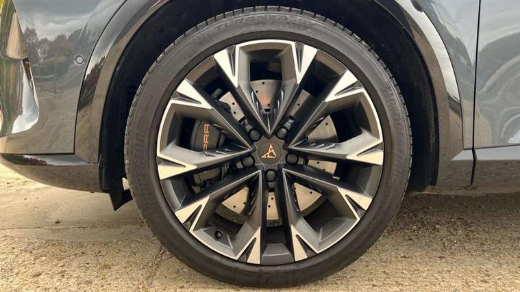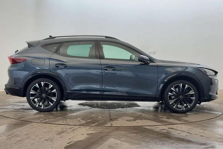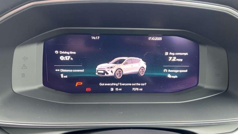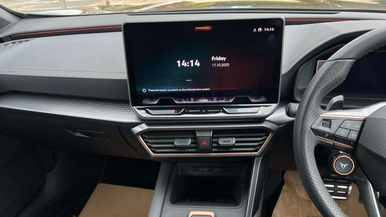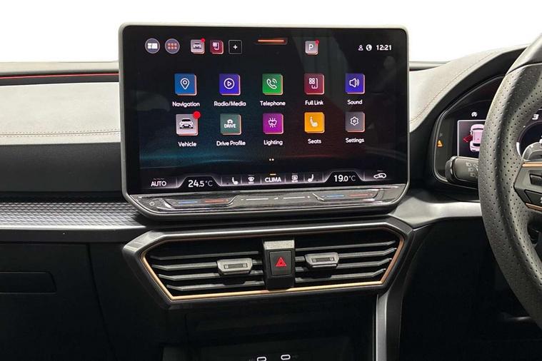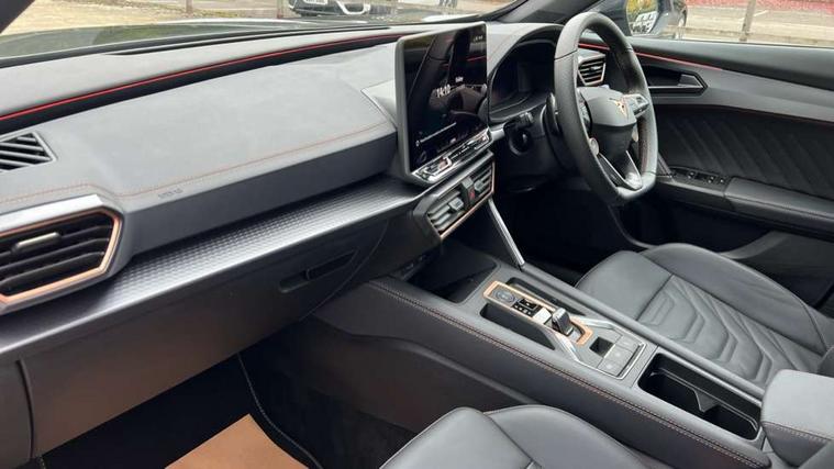 10.25" digital cockpit and configurable dashboard, Adaptive cruise control with follow-to-stop and speed limiter, Advanced driver alert system, Advanced lane assist with semi-automatic vehicle control in a medical emergency and traffic jam assist, Dynamic chassis control with driving profile selection (Comfort, Sport, CUPRA, Individual), Dynamic road sign display, Emergency steering support with turn assist, Forward collision warning with automatic braking, Full link phone integration, Intelligent park assist, RPM, trip computer, outside temp gauge, instrument light brightness, low fuel warning light, lights on reminder, gearshift indicator, Service interval indicator, Side and exit assist, Speed sensitive power steering, Start/stop system with regenerative braking, Top view camera, Virtual pedal and electric tailgate, Voice control system, Wired Android Auto, Wireless apple carplay, Wireless phone charger, Adaptive chassis control with continuous operation, CUPRA sport suspension, Electronic locking differential and dynamic traction support, 2 front and 2 rear USB type C sockets, Media system with navigation, 12.9" touchscreen display, voice control, DAB, steering wheel mounted controls, Auto dimming rear view mirror, Body colour door handles, Body coloured bumpers, Dark grey wing mirror, Daytime running light with automatic headlight control and coming home feature, Door panel ambient lighting, Dynamic headlight range control, Electric front/rear windows, Electrically adjustable heated and folding door mirrors with memory function, Gloss black roof rails and window surrounds, High beam assist, LED 3rd brake light, LED front fog lamps with cornering function, LED Taillights with dynamic indicator, Matrix LED headlights with multifunction camera, Rain sensing wipers, Rear diffuser with twin exhaust pipe on each side, Rear fog lights, Rear side wing doors, Rear wash/wipe, Tinted rear windows, Welcome lights (within exterior mirror housing), 12V socket, 2 front and 2 rear reading lights, 3 seat bench in 2nd row, 60/40 split rear bench seat with armrest and mechanical seat release, Black headlining, Black interior roof lining, Cupra sports pedals, Dust/pollen filter, Electrically adjustable front seats with lumbar support and memory function, Front and rear head restraints, Front centre armrest, Heated front seats, Heated supersports multifunction leather steering wheel with satellite buttons and gear shift paddles, Height/reach adjust steering wheel, Illuminated aluminium doorsteps, Illuminated interior front door sills, Illuminated sunvisor with mirror, Isofix, Leather dashboard, door insert and side trim panel, LED smart wraparound lighting, PVC/Leather upholstery, Satellite steering wheel, Single front passenger seat, Storage pockets on rear of front seats, Three zone climate control with control panel in rear, Variable luggage/load compartment floor, 3 point seatbelts on all rear seats, ABS, Brake control system - ESC and brake booster, Child proof door locks, Driver and front passenger airbags with front passenger airbag de-activation, Electronic parking brake, Front and rear disc brakes, Front side curtain airbags, Hill hold control, Pre-crash front and rear seat belt tensioner, window closure and hazard lights, Public e-call, Seat belt reminder for front and rear seats, Tyre pressure monitoring system, Anti theft alarm system, KESSY Advanced - Keyless start, keyless entry with SAFELOCK, Locking wheel bolts, Copper and aluminium interior detailing, 19" Artic machined sport black and silver alloy wheels, Breakdown and tool kit,