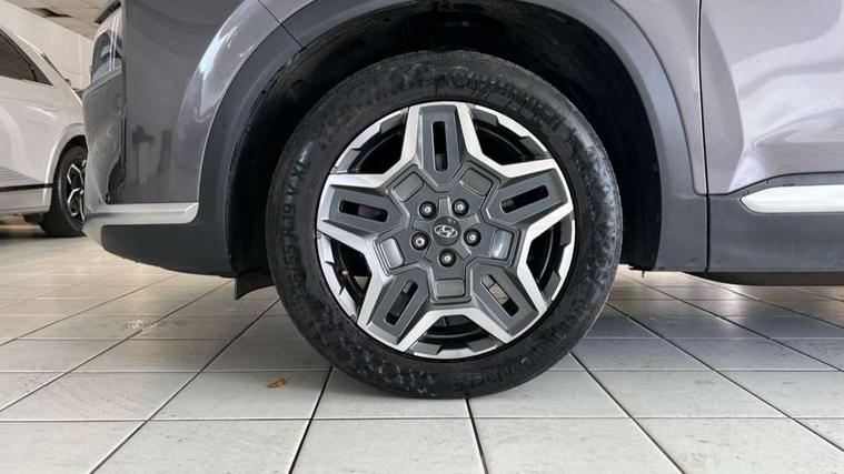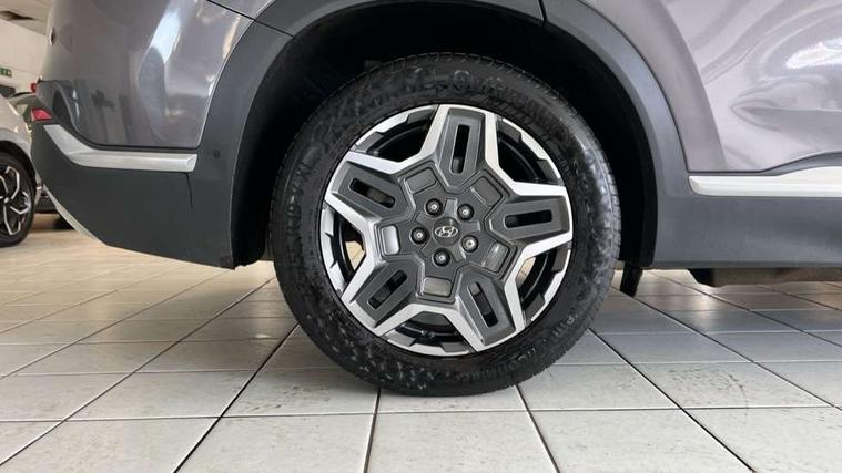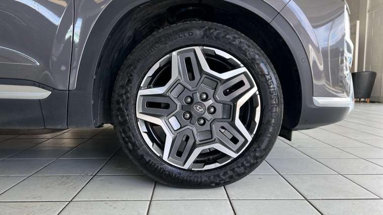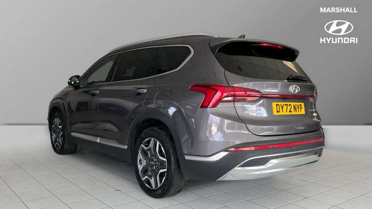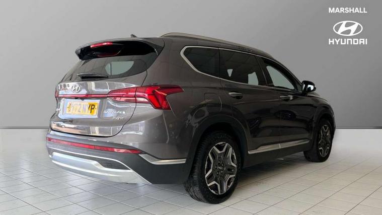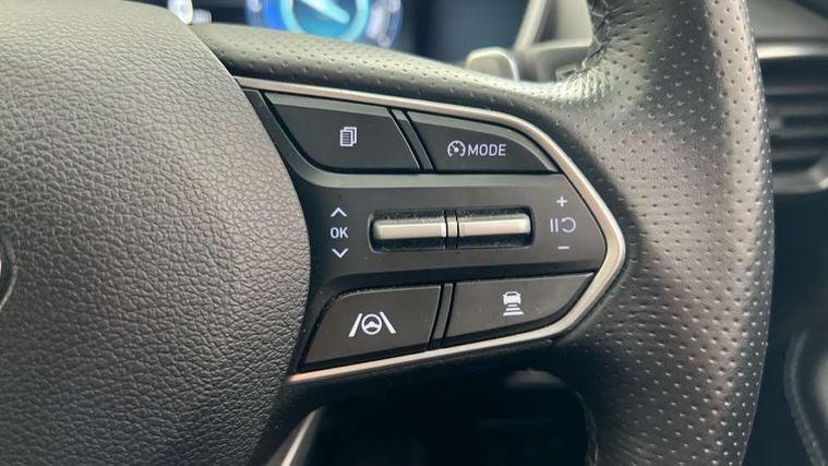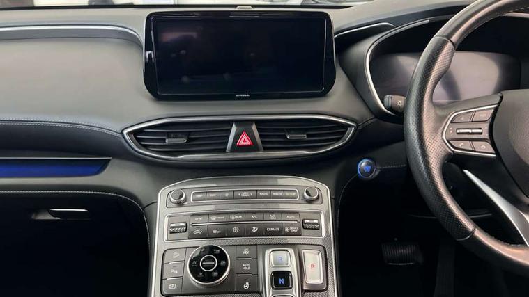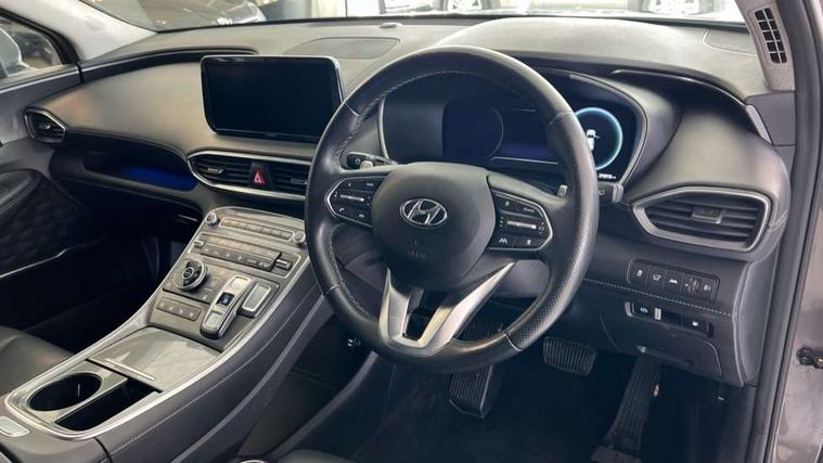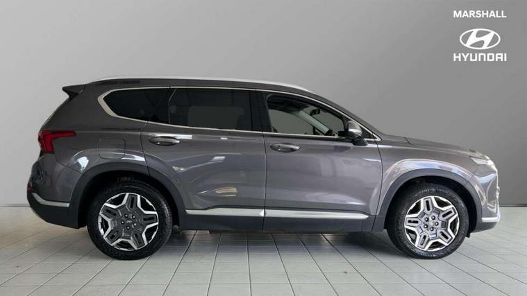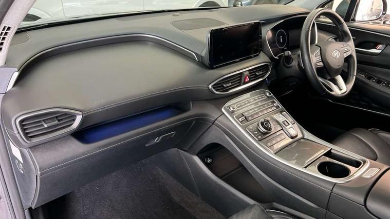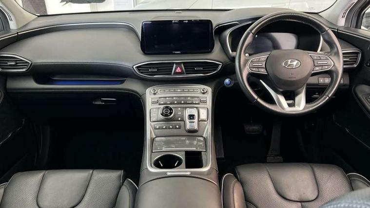 10.25" touchscreen satellite navigation with mapcare and live services, 12.3" TFT supervision cluster display, Apple car play/Android Auto, Blind spot collision avoidance assist, Blind spot monitor, Bluetooth connectivity with voice control, Cruise control - smart adaptive speed control with stop and go function, Drive mode selector, Driver attention alert system, E-call, Emergency stop signalling system, Forward Collision Avoidance Assist (FCA) - Car, Pedestrian and Cycle, Forward Collision Avoidance Assist Junction Turning (FCAJX), Front parking sensor, Head up Display, Highway driver assist, Intelligent speed limit warning, Lane departure warning system with lane keep assist - LKAS, Parking system with surround view monitor, PAS, Rear cross traffic alert, Rear parking sensor, Remote smart parking, Reverse parking collision aviodance assist, Safe exist assist (SEA), Smart electric tailgate with hand's free opening function, Smart posture control, Smartphone connectivity, Smartphone wireless charging plate, Trip computer, 3.3 kW On Board Charger, Charging cable - 7 pin type 2, Emergency 3 pin connector charging cable (ICCB), Self levelling suspension, Auxiliary input socket, DAB Digital radio, Krell premium audio with 10 speakers including external amplifier and subwoofer, Rear USB port, Steering wheel mounted controls, USB connection located in centre console, Automatic defog system, Automatic dimming rear view mirror, Automatic headlights with dusk sensor, Automatic windscreen wiper control, Body colour door handles with chrome inserts, Body coloured bumpers, Body coloured door mirrors, Dynamic bending headlight/cornering lights, Electric adjustable/heated/folding door mirrors, Electric front/rear windows/one touch/anti trap, Electric glass tilt and slide panoramic sunroof, Follow me home headlights, Full LED headlights, Heated rear windscreen with washer, LED daytime running lights, LED front fog lights, LED rear fog light, LED rear lights, Positioning Lights - LED, Privacy glass in rear window and tailgate, Puddle lights, Rain sensor, Rear side wing doors, Rear wash/wipe with intermittent wipe setting, Roof rails, Smart high beam headlights, Solar glass with windscreen shade band, Third brake light, Trailer stability assist, Variable front intermittent wipers, Windscreen wiper de-icer, 12V power point in luggage area, 12V power points in front + rear centre consoles, 2 seat bench in 3rd row, 3 seat bench in 2nd row, 50/50 split/folding 3rd row of seats, 60/40 split folding slide/recline seats 2nd row, Adjustable head restraints, Air conditioning - rear manual temperature control, Bottle holders, Driver seat memory function, Driver's lumbar support, Driver's seat electric adjustments, Driver/passenger sunvisors + illuminated vanity mirrors (drivers with ticket holder), Dual zone climate control, Faux leather door trim, Front and rear door pockets, Front armrest with storage compartment, Front cupholders, Front map reading lights, Front passenger's seat electric adjustments, Front seat and rear pockets, Front/rear interior lights, Grab handles (x3), Heated front seats, Heated outer rear seats, Heated steering wheel, Height/reach adjustable steering column, Illuminated cooling glove compartment, Isofix child seat preparation for front passenger seat, Isofix on 2nd row outer seats, Leather wrapped gear shift knob, Leather wrapped hand brake, Leather wrapped steering wheel, Luggage compartment lighting, Luggage cover, Luggage hooks, Luggage net, Manual rear door side blinds, One-touch folding rear seats, Rear armrest with storage, Retractable load area cover, Single front passenger seat, Sunglasses holder, Underfloor storage system in load area, Ventilated front seats, Trailer wiring pack - Santa Fe, 3 point seatbelts on all seats, ABS/EBD, Childproof rear door locks, Curtain airbags, Downhill brake control, Driver and passenger airbags, Electric parking brake, ESP, Front seatbelt pretensioner, Front side airbags, Height adjustable front seatbelts, Hill start assist control (HAC), Passenger airbag deactivate switch, Rear seat belt pretensioners, Rear seat Occupancy alert, Seat belt reminder, Seatbelt warning lamp, Traction control, Tyre pressure monitoring system, Deadlocks, Engine immobiliser, Keyless entry with start/stop button, Locking wheel nuts, Remote control central locking, Speed sensitive auto door locking, Thatcham category 1 alarm, 19" Alloy wheels, Temporary spare wheel (space saver),