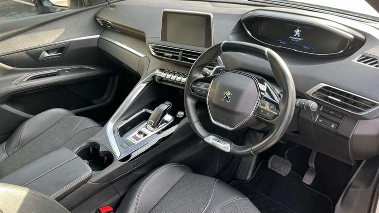 'Lights On' Reminder warning buzzer, 3D connected navigation + voice control + Peugeot connect SOS and assistance, Bluetooth telephone facility, Digital clock, Electric impulse automatic gearbox control, Exterior temperature indicator with ice warning, Front and rear parking sensors, Lane departure warning system, Mirror screen with mirror link, apple carplay and android auto, Multi function trip computer, PEUGEOT i-Cockpit with 8.0" capacitive touchscreen in centre console, PEUGEOT i-Cockpit with compact sports steering wheel, PEUGEOT i-Cockpit with configurable 12.3" Head-up digital instrument panel, Smartphone charging plate, Speed limit recognition and recommendation, Sports button, Diesel particulate filter, Dynamic stability control and electronic anti-skid system, DAB Digital radio, Steering wheel mounted controls, USB socket, 2 X Rear number plate lights, Aluminium longitudinal roof bars, Auto self levelling headlights, Automatic hazard light activation upon heavy brake application, Automatic triggered rear windscreen wiper in reverse gear, Black and chrome front wing trim, Body colour door handles, Body colour rear spoiler with stainless steel edging trim, Body coloured bumpers, Body protectors (bottom of front and rear bumpers + wheel arches + protection at bottom of doors) in black, Chrome front fog light trim, Chrome rear bumper facia, Chrome side window trim, Dark tinted rear side windows + tailgate window, Door mirror mounted LED Peugeot lion approach lights, Electric operated/heated door mirrors, Front windscreen wiper with magic wash cleaning system, Full LED headlights with LED fog lights with static cornering function, sports front bumper and grille, Gloss black B and C pillar and aerodynamic deflector trim, Gloss black rear cluster connecting strip, Gloss black windscreen surround, GT Line emblem in satin copper (front wings and tailgate), Headlights left on audible warning, Heated rear windscreen with integrated antenna, LED daytime running lights, LED sequential scrolling front indicators, LED side indicator lights integrated into door mirrors, Lion grey front bumper scuff plate, Nera black door mirrors, One touch electric front/rear windows with pinch protection, Panoramic opening glass roof, Power folding door mirrors with blind spot detection indicator and auto dipping function in reverse gear, Radiator grille in chrome edge trim with chequered design and black 'PEUGEOT' lettering, Rear LED Peugeot signature 'Claw Effect' lights, Stainless steel roof arches, Twin exhaust tailpipe, 1/3 to 2/3 split folding rear seats, 12V Sockets in dashboard, rear cabin and load area, 2 cupholders in front centre console, 2 rear reading spotlights, 230V socket on rear centre console, 2x Rear coat hooks, 3x Isofix child seat fittings in the front passenger and outer rear seats, 4 Grab handles retractable and damped, Aikinite stitching in armrest, gear lever and dashboard facia, Automatic gear lever in satin chrome, Blue ambient lighting for connecting zone, Blue ambient lighting to front door panels, central storage and cupholders, Blue ambient lighting to head up instrument panel, Centre front armrest with butterfly wing opening and illuminated storage compartment, Driver and front passenger seat height adjustment, Driver seat manual adjustment, Dual zone automatic climate control, Electric power steering with reach and rake adjustable steering column, Fixing rings 4 in load compartment, Flocked front door pocket interior with blue ambient lighting, Flocked glovebox interior, Fold flat front passenger seat with picnic table, Footwell illumination, Front interior light with 2 reading spotlights and rear interior light with timer, Front passenger seat manual adjustments, Front seat back map pockets, Gear shift indicator, Illuminated glovebox, Illuminated vanity mirrors, Imila cloth/Leather upholstery, LED interior lighting in storage spaces and load area, Mistral floor mats with Aikinite contrast stitching, Mistral full grain perforated leather steering wheel with aikinite stitch detail and satin chrome 'GT Line' emblem, Rear armrest with ski flap and two cup holders, Rear centre console ventilation system, Reclining front seats, Roof LED interior lighting, Roof lining - Mistral black, Satin chrome dashboard trim, Satin chrome digital instrument panel and touchscreen trim, Satin chrome front door panel recess trim, Satin chrome interior door handles, Satin chrome scorpion's tail and toggle switch trim, Seatbelt not fastened audible and visual alert for front seats, Seatbelt unfastened on the move audible and visual alert for front and rear seats, Stainless Steel Scuff Plates, Two position boot floor, Driver sport pack - 3008 Auto, Safety pack - 3008, Safety Plus Pack - 3008, Visibility pack - 3008, 3x Rear three-point retractable seatbelts with force limiters in the outer rear seats, Adaptive driver and front passenger airbags with passenger airbag deactivation function, Anti lock braking system + Electronic brake force distribution, Driver and front passenger side airbags, Electric child locking functionality on rear windows and doors, Electric parking brake, Front and rear curtain airbags, Front optimised safety headrests and 3 x rear retractable headrests with height adjustable, Front three point retractable seatbelts with pre tensioners and force limiters, Front ventilated disc brakes and rear disc brakes, Height adjustable front seatbelts, Hill start assist, Tyre pressure sensor, Automatic door locking when moving off, Central locking button on dash, Deadlocks, Electric tailgate with Peugeot open & go system, Electronic immobiliser, Locking wheel bolts, Perimetric and volumetric alarm with lift and tilt sensor, Remote control central locking with two plip keys, Brumeo fabric Dashboard, front and rear door panel finish, 19" Washington two tone diamond cut alloy wheels, Tyre repair kit,