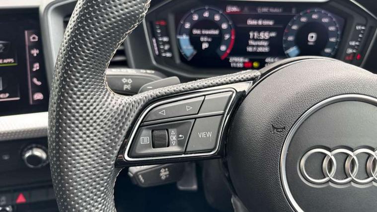 Advanced driver attention and drowsiness monitor, Audi connect emergency call and service, Audi smartphone interface, Bluetooth interface, Camera based traffic sign recognition, Cruise control, Driver's information system, Electromechanical power steering, Lane departure warning system, Service interval indicator, Speed limiter, Start stop system with recuperation, Voice control system, Washer fluid level indicator, Sports suspension, 2 x USB type C connection points, DAB Digital radio, Auto dimming rear view mirror, Black side skirts, Body coloured bumpers, Door sill trims with aluminium inlays and logo, Electric front and rear windows, Electrically adjustable, heated, folding door mirrors with integrated LED side indicator, Front side air inlets in grained matt black and C frame in anthracite black, Front wing badges, Headlight cleaning system, Heat insulating glass windscreen and side windows, Heated rear windscreen, High level LED brake light, LED daytime running lights, LED headlights with range control LED rear lights + dynamic rear indicators, Light and rain sensors, Privacy glass, Radiator grille and rear diffuser in matt anthracite black, Radiator protective grille frame in matt aluminium silver, Rear fog lights, Rear side wing doors, Rear wiper, Side front spoiler lips in grained matt black, 12V socket in centre console with two cup holders, 3 rear seats with headrests, 3 seat bench in 2nd row, 3 spoke flat bottomed multi-function plus leather steering wheel with S badging, grips in preforated leather, contrast stitching and paddle shift, 40:60 Split folding rear seat or fully collapsed, Black cloth headlining, Front and rear velour black floor mats with contrast stitching in fine silver, Front head restraints, Front passenger seat, Height and reach adjustable steering wheel, Interior lighting includes roof module, front and rear reading lights and right luggage compartment lighting, ISOFIX child seat mounting for front passenger and outer rear seats including top tether attachment point of outer rear seats, Leather gear knob with aluminium trim, Leather handbrake grip, Manual height adjustable for driver and front passenger seat, Manually adjustable lumbar support in front seats, Stainless steel pedals, Ambient lighting package - A1, Black styling pack - A1 Sportback Black Edition, Luggage compartment pack - A1, Technology pro pack with convenience key - A1, 3x3 point rear seatbelts, Audi pre-sense front with pedestrain and cyclist recognition, Brake assist function, Driver and front passenger airbag with front side and head airbags, Electronic Stability Control including ABS, EBD, ASR and EDL, Front passenger airbag deactivation switch, Hill hold assist, Manual rear child locks, Seatbelt height adjustment for front seats, Seatbelt monitoring, Tyre pressure loss indicator, Warning triangle and first aid kit, Anti theft alarm, Anti theft wheel bolts, Immobiliser, Aluminium trim for control switches, air vents and digital instrument cluster, Black dashboard, Silver grey inlays polygon structure in diamond paint finish, Structured grey accent surfaces insert of air vents, interior door handle recesses and centre console in quartz paint finish,