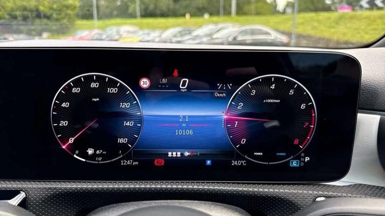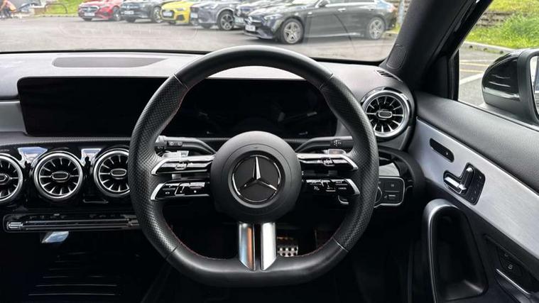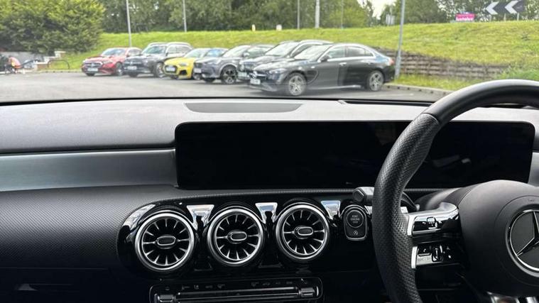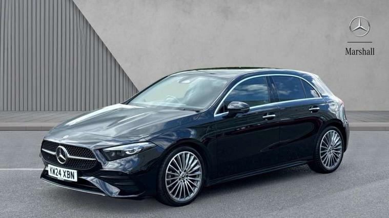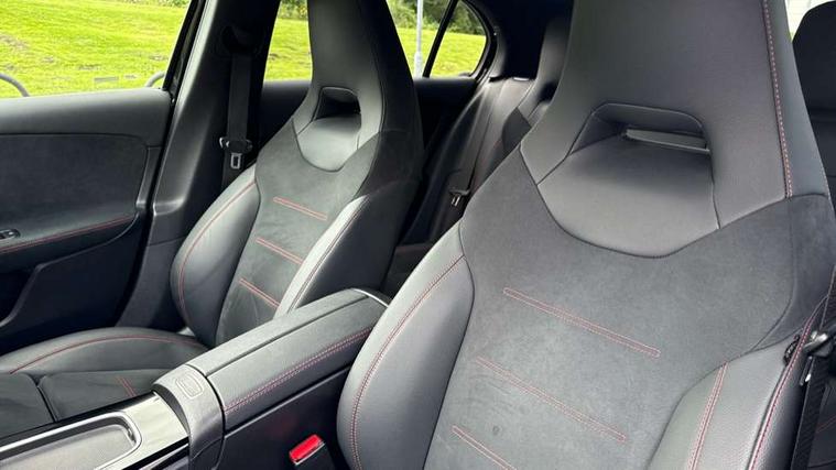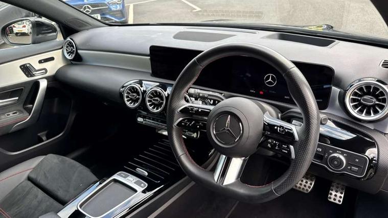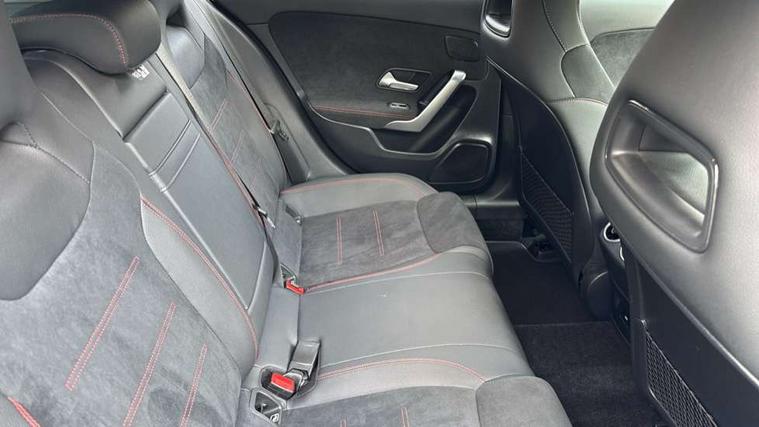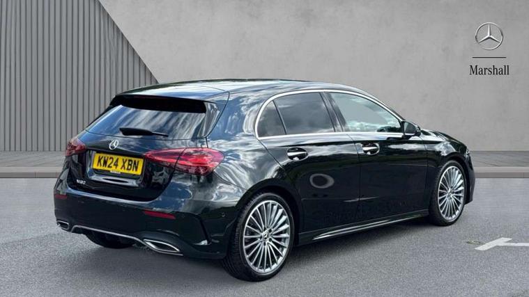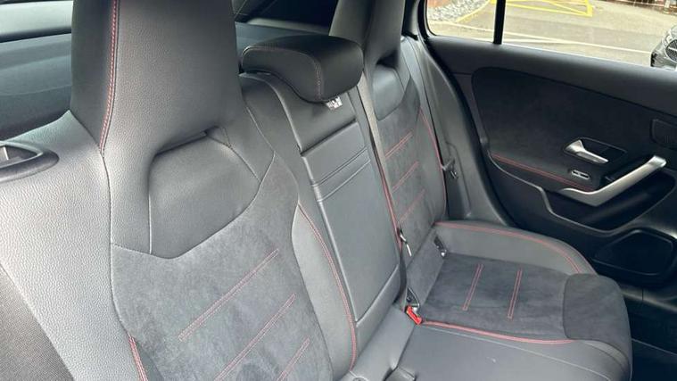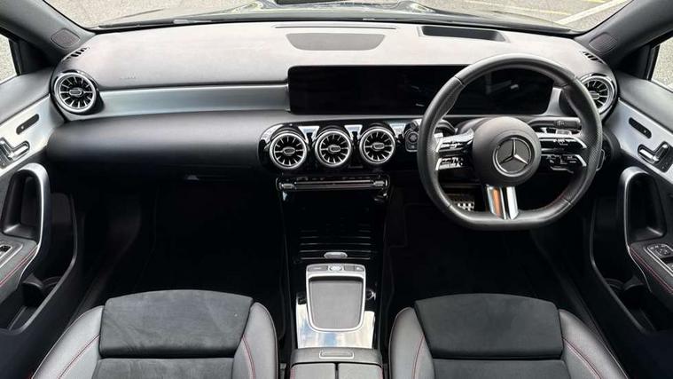 10.25 inch touchscreen central media display, 10.25" Digital instrument cluster display screen, Attention assist, Brake pad wear indicator warning light, Car wash mode, Direct steering, Direction indicators with lane change function, Dual bluetooth interfaces, DYNAMIC SELECT with a choice of driving modes (ECO, Comfort, Sport and Individual), Easy pack tailgate hands-free access, ECO start/stop function, Engine start/stop button, Fluid level warning indicator for fuel, oil, coolant and washer fluid, Fluorescent jacket for driver, Hard-disk navigation, Head up Display, Hey Mercedes Voice activation, Lamp failure indicator, MBUX Interior assistant, Mercedes me connect including emergency call system, accident recovery, breakdown and maintenance management, Mercedes me remote services, Outside temperature gauge, Owners manual in English, Pre-installation of private car share, Preinstallation for Mercedes Benz link, Remote boot closing, Service indicator (ASSYST), Smartphone integration with Apple CarPlay and Android auto, Speed sensitive power steering, Tailgate, Traffic sign assist, Trip computer in multifunction display with current consumption indicator, Wireless charging, Lowered comfort suspension, DAB Digital radio, MBUX multimedia system, Mercedes Benz advanced sound system (225 W) with 10 speakers, 1 central speaker, speakers on doors, a tweeter on door, one sub woofer + boost amplifier, 4 Electric Front and Rear windows, Adaptive brake lights, AMG body styling - AMG front apron with front splitter and AMG rear apron and visible exhaust tailpipe trim elements, Body colour bumpers, Body colour door handles with chrome inserts, Body colour side skirt, Body coloured door mirrors, Chrome beltline strips, Diamond radiator grille with pins in fine star pattern, Electric adjustable and heated door mirrors with integrated LED side indicators, Exhaust system with 2 visible tailpipe trim elements and rear apron, Headlamp assist automatic headlamp activation, Heat insulating dark tinted rear and rear side windows, Heated glass rear windscreen + timer control, LED daytime running lights, LED High level third brake light, LED tail lamp, Multibeam LED headlamps with adaptive highbeam assist and cornering function, Panoramic sliding sunroof, Privacy glass, Radio aerial, Rain sensing windscreen wipers with two sensitivity settings, Rear fog lights, Rear side wing doors, Rear windscreen wiper, Surround lighting with logo projection, Window line trim strip in chrome, 3 seat bench in 2nd row, 3 Spoke flat bottom leather multi function steering wheel with perforated leather in grip area, 40:20:40 split folding rear seats, Air conditioning - Two zone thermotronic luxury automatic climate control with display, AMG floor mats, Automatic child seat recognition sensor, Black air vents with surround in silver chrome, Black roof lining, Brushed stainless steel sports pedals with rubber studs, Electrically adjustable front memory seats including lumbar support and backrest inclination, Front centre armrest with stowage, Front seat backs luggage nets, Galvanished gear shift paddles on steering wheel, Heated front seats, Height/reach adjustable steering column, Illuminated Mercedes Benz lettering front door sills with changeable cover, Interior lighting - 64 colour Ambient lighting, Interior mirror with reading lamps in black and frameless, Rear armrest with 2 cupholders, Seat occupancy sensor for front passenger seat, Single front passenger seat, Sports seats with integrated headrests, Stowage compartment in centre console with retractable cover, Sunvisors with illuminated vanity mirrors, Twin front cupholders, Light and sight pack - A Class, Mirror package - A Class, Parking pack with 360 degree camera - A Class, Seat comfort pack - A Class, USB pack plus - A Class, 3 rear 3 point seatbelts, ABS with Brake Assist, Active bonnet, Adaptive brake assist with hold function and hill start assist, Black seatbelts, Bonnet with power domes, Childproof locks manually operated for rear doors and electrically operated for rear power windows, Crash responsive emergency lighting, Driver and passenger head and side airbags, Drivers knee airbag, Dual stage driver/passenger airbags, Electronic parking brake, ESP curve dynamic assist, ESP with ASR, Exit warning, Front and rear seatbelt reminder, ISOFIX and top tether child seat fixing points in two outer rear seats, Tyre pressure monitoring system, Warning triangle and first aid kit, Window airbags, Alarm system/interior protection/immobiliser, Guard 360 degree vehicle protection, Keyless entry lock/unlock, Keyless Go, Remote central locking and crash sensor with emergency opening function, Light longitudinal grain aluminium trim, 19" AMG multi-spoke light alloy wheels, aerodynamically optimised, painted in titanium grey with high sheen finish, Summer tyres, Tirefit sealant kit,