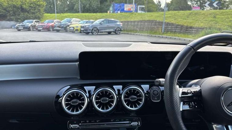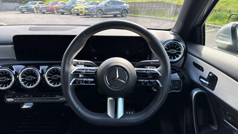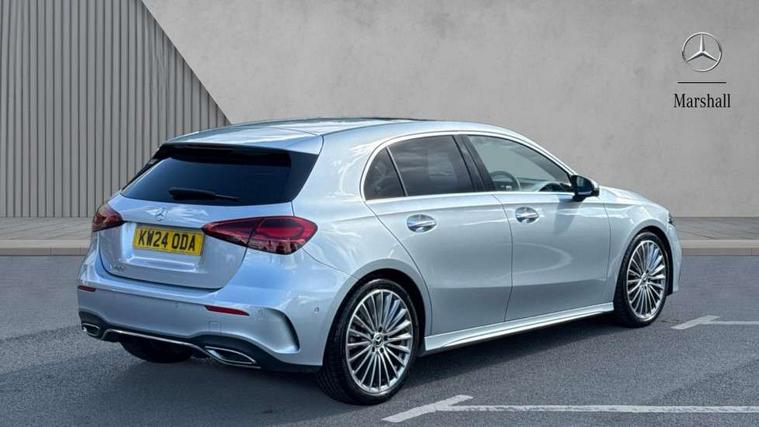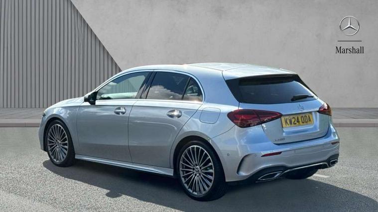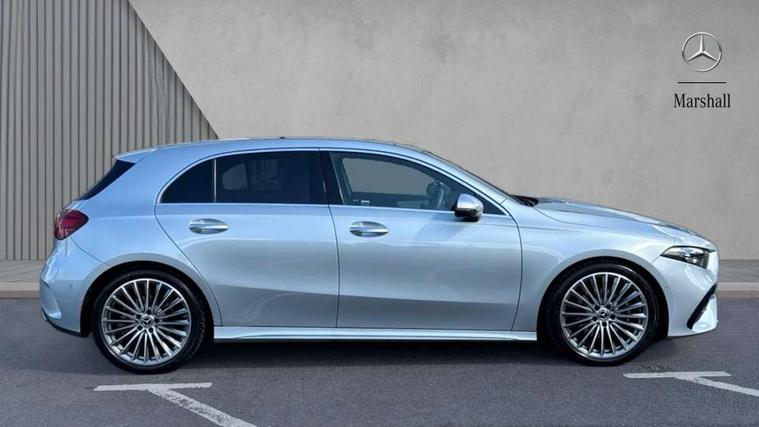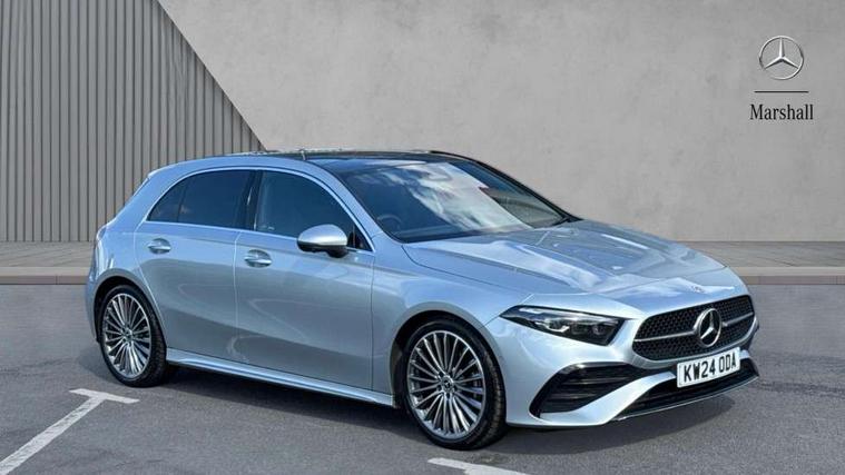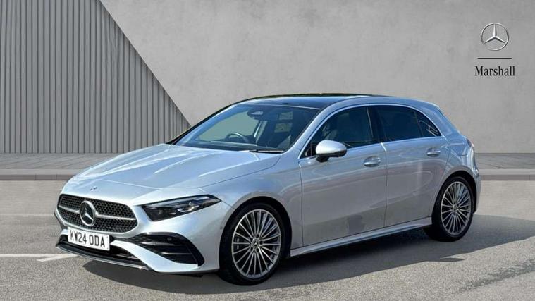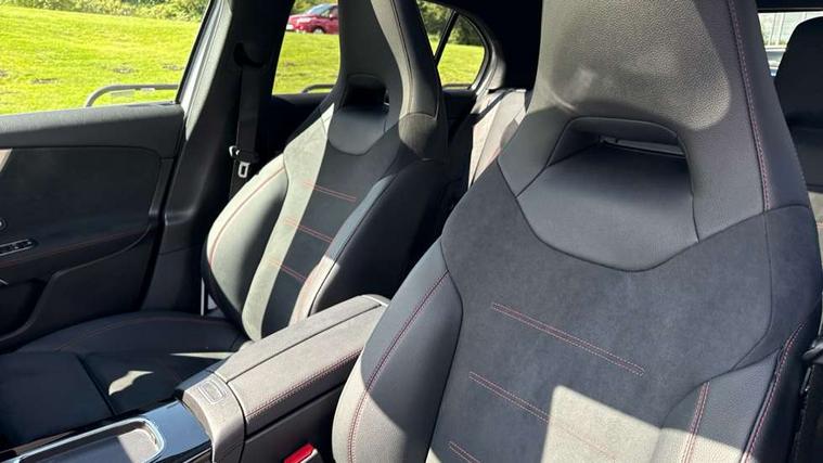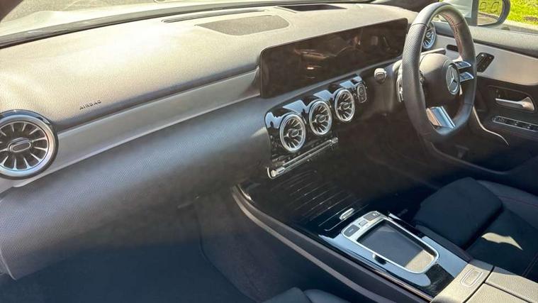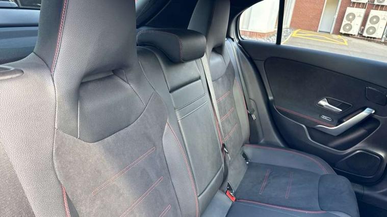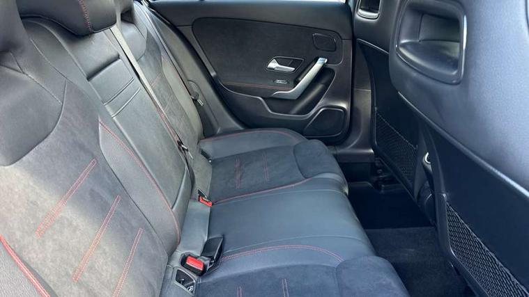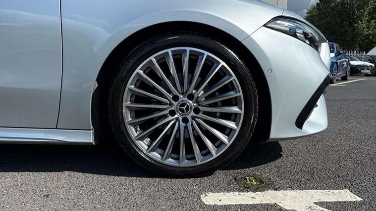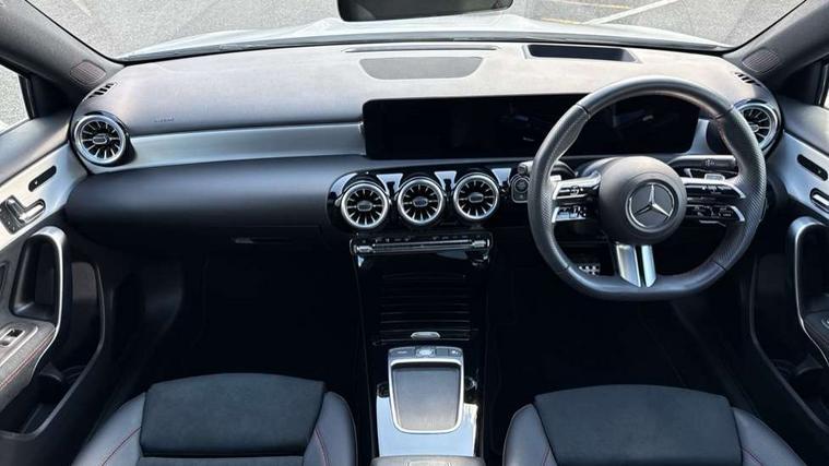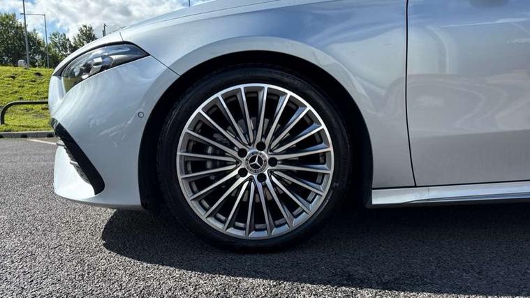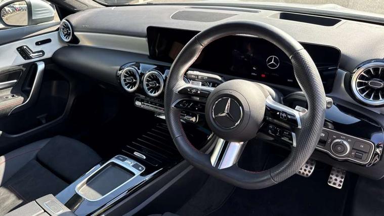 10.25 inch touchscreen central media display, 10.25" Digital instrument cluster display screen, Attention assist, Brake pad wear indicator warning light, Car wash mode, Direct steering, Direction indicators with lane change function, Dual bluetooth interfaces, DYNAMIC SELECT with a choice of driving modes (ECO, Comfort, Sport and Individual), Easy pack tailgate hands-free access, ECO start/stop function, Engine start/stop button, Fluid level warning indicator for fuel, oil, coolant and washer fluid, Fluorescent jacket for driver, Hard-disk navigation, Head up Display, Hey Mercedes Voice activation, Lamp failure indicator, MBUX Interior assistant, Mercedes me connect including emergency call system, accident recovery, breakdown and maintenance management, Mercedes me remote services, Outside temperature gauge, Owners manual in English, Pre-installation of private car share, Preinstallation for Mercedes Benz link, Remote boot closing, Service indicator (ASSYST), Smartphone integration with Apple CarPlay and Android auto, Speed sensitive power steering, Tailgate, Traffic sign assist, Trip computer in multifunction display with current consumption indicator, Wireless charging, Lowered comfort suspension, DAB Digital radio, MBUX multimedia system, Mercedes Benz advanced sound system (225 W) with 10 speakers, 1 central speaker, speakers on doors, a tweeter on door, one sub woofer + boost amplifier, 4 Electric Front and Rear windows, Adaptive brake lights, AMG body styling - AMG front apron with front splitter and AMG rear apron and visible exhaust tailpipe trim elements, Body colour bumpers, Body colour door handles with chrome inserts, Body colour side skirt, Body coloured door mirrors, Chrome beltline strips, Diamond radiator grille with pins in fine star pattern, Electric adjustable and heated door mirrors with integrated LED side indicators, Exhaust system with 2 visible tailpipe trim elements and rear apron, Headlamp assist automatic headlamp activation, Heat insulating dark tinted rear and rear side windows, Heated glass rear windscreen + timer control, LED daytime running lights, LED High level third brake light, LED tail lamp, Multibeam LED headlamps with adaptive highbeam assist and cornering function, Panoramic sliding sunroof, Privacy glass, Radio aerial, Rain sensing windscreen wipers with two sensitivity settings, Rear fog lights, Rear side wing doors, Rear windscreen wiper, Surround lighting with logo projection, Window line trim strip in chrome, 3 seat bench in 2nd row, 3 Spoke flat bottom leather multi function steering wheel with perforated leather in grip area, 40:20:40 split folding rear seats, Air conditioning - Two zone thermotronic luxury automatic climate control with display, AMG floor mats, Automatic child seat recognition sensor, Black air vents with surround in silver chrome, Black roof lining, Brushed stainless steel sports pedals with rubber studs, Electrically adjustable front memory seats including lumbar support and backrest inclination, Front centre armrest with stowage, Front seat backs luggage nets, Galvanished gear shift paddles on steering wheel, Heated front seats, Height/reach adjustable steering column, Illuminated Mercedes Benz lettering front door sills with changeable cover, Interior lighting - 64 colour Ambient lighting, Interior mirror with reading lamps in black and frameless, Rear armrest with 2 cupholders, Seat occupancy sensor for front passenger seat, Single front passenger seat, Sports seats with integrated headrests, Stowage compartment in centre console with retractable cover, Sunvisors with illuminated vanity mirrors, Twin front cupholders, Light and sight pack - A Class, Mirror package - A Class, Parking pack with 360 degree camera - A Class, Seat comfort pack - A Class, USB pack plus - A Class, 3 rear 3 point seatbelts, ABS with Brake Assist, Active bonnet, Adaptive brake assist with hold function and hill start assist, Black seatbelts, Bonnet with power domes, Childproof locks manually operated for rear doors and electrically operated for rear power windows, Crash responsive emergency lighting, Driver and passenger head and side airbags, Drivers knee airbag, Dual stage driver/passenger airbags, Electronic parking brake, ESP curve dynamic assist, ESP with ASR, Exit warning, Front and rear seatbelt reminder, ISOFIX and top tether child seat fixing points in two outer rear seats, Tyre pressure monitoring system, Warning triangle and first aid kit, Window airbags, Alarm system/interior protection/immobiliser, Guard 360 degree vehicle protection, Keyless entry lock/unlock, Keyless Go, Remote central locking and crash sensor with emergency opening function, Light longitudinal grain aluminium trim, 19" AMG multi-spoke light alloy wheels, aerodynamically optimised, painted in titanium grey with high sheen finish, Summer tyres, Tirefit sealant kit,
