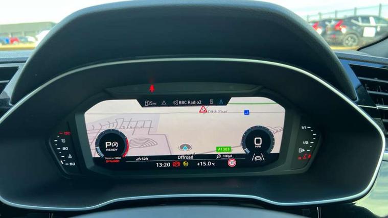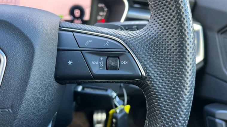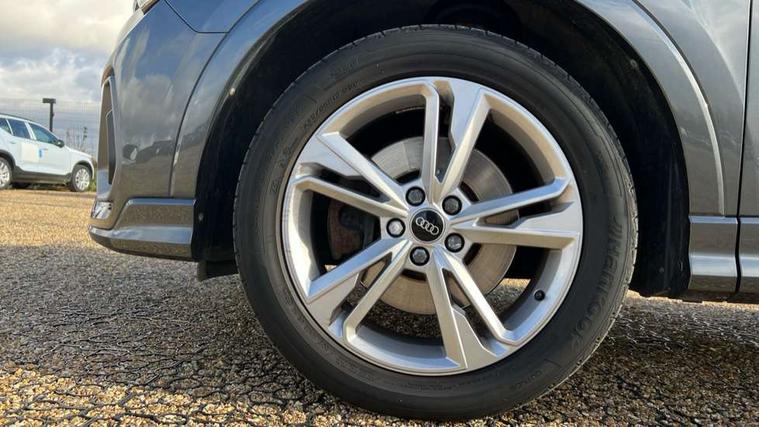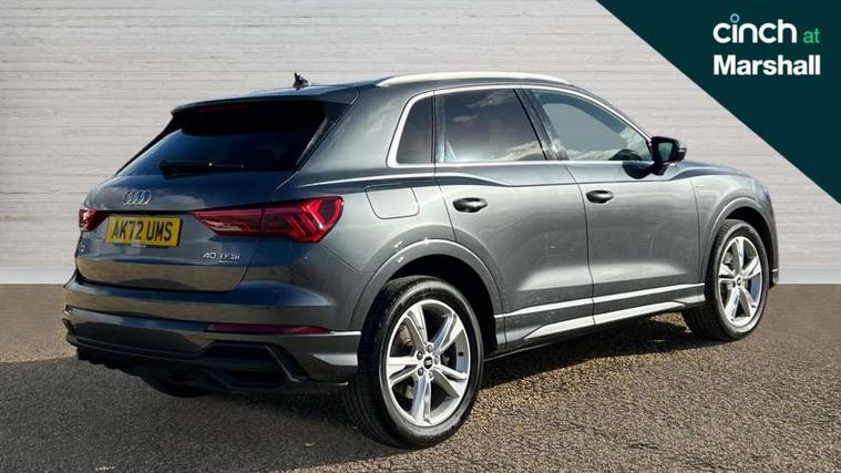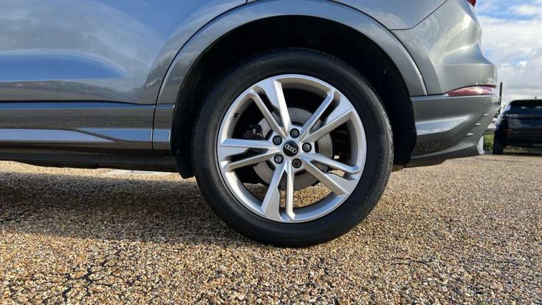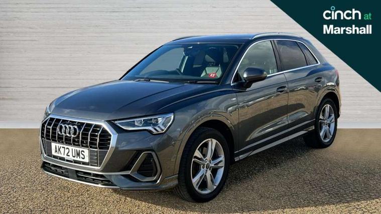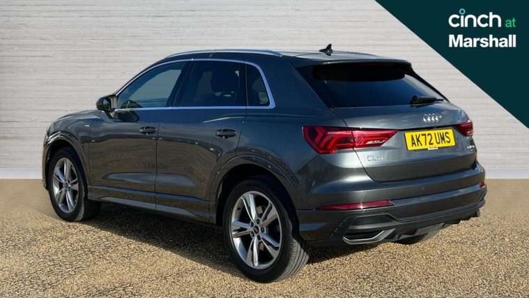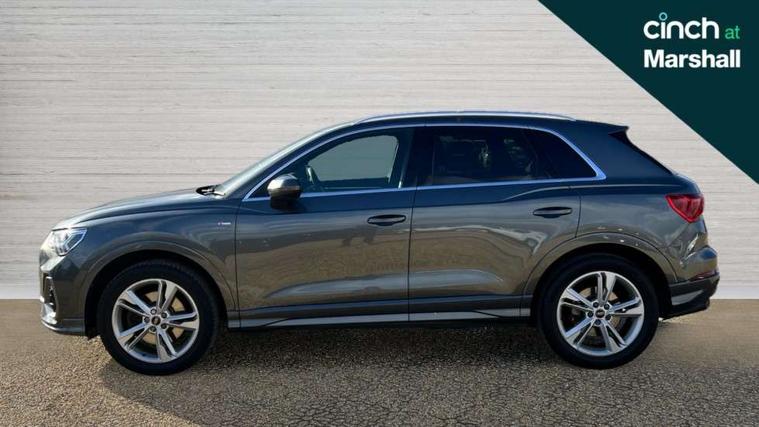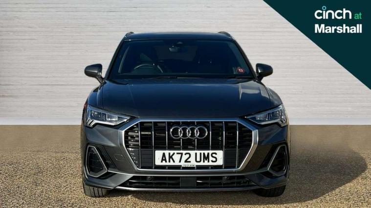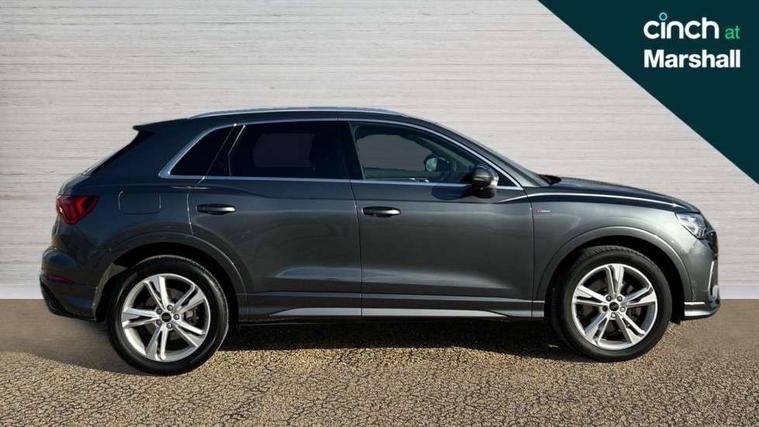 Amazon alexa Integration, Audi drive select, Audi lane departure warning, Audi Virtual Cockpit - 10.25" display, Bluetooth interface, Camera based traffic sign recognition, Legal emergency call, MMI Navigation Plus with high resolution 10.1 inch touchscreen colour display, Power operated tailgate, Progressive steering, Service interval indicator, Smartphone interface includes wireless Apple carplay/Android Auto, Start stop system with recuperation, Voice control system with natural language interaction, Sports suspension, 2 USB-C ports with charge and data functions, 6 passive loudspeakers, DAB digital radio module, Acoustic windscreen, Aluminium roof rails, Aluminium window trim, Auto dimming frameless rear view mirror, Body colour front spoiler blade, Body coloured bumpers, Electrically folding, adjustable and heated door mirrors with integrated LED side indicators and kerb view function for passenger side, Front and rear electric windows, Front fog lights, Front side air inlets in matt platinum grey, Grille vertical bars in aluminium silver/Matt, High gloss black finish B and C pillars, LED Dynamic rear indicators, LED headlights with LED daytime running lights, LED rear lights, LED third brake light, Privacy glass dark tinted rear and rear-side windows (from B-pillar backwards), Rain and light sensors, Rear diffuser grille in grained matt black, Rear diffuser strip in matt titanium black, Rear side wing doors, Rear wiper, S line badges on front wings, S Line front and rear bumpers, Side skirt insert in matt Platinium grey, Titanium black radiator grille, Variable front intermittent wipers, 12V socket in rear centre console, 3 seat bench in 2nd row, 40:20:40 folding with manual adjustment for 60:40 forwards/backwards position and backrest angle, Adjustable rear seat bench/backrest with centre armrest and cupholder, Black cloth headlining, Dual zone electronic climate control, Front and rear black floor mats with contrast stitching in rock grey, Front and rear headrests, Front and rear roof module including reading lights, Front centre armrest, Glove compartment lighting, Height and reach adjustable steering wheel, Illuminated door sill trims with S logo, ISOFIX child seat mounting for front passenger with airbag deactivation and outer rear seat including top tether attachment point for outer rear seats, Luggage compartment light, Manual front seats with height adjustment, Perforated leather gearknob, Single front passenger seat, Stainless steel luggage compartment sill finisher, Stainless steel pedals, Ambient lighting pack - Q3, Non smoking pack - Q3, 3x3 point rear seatbelts, 6 airbags - Driver, front passenger, curtain and side windows, Audi pre-sense front with pedestrain and cyclist recognition, Electrically operated child locks on rear doors, Electromechanical parking brake, Electronic stabilisation control including ABS, ASR and EDL, Front seatbelt reminder, Hill descent control, Hill hold assist, Pre sense basic, Seatbelt monitoring, Tyre pressure warning, Warning triangle and first aid kit, Anti theft alarm, Anti theft wheel bolts, Immobiliser, Remote central locking, Dark matt brushed aluminium inlay, Detail dashboard around MMI touch colour display in glass look, black with surround in aluminium look, Leatherette door armrest,