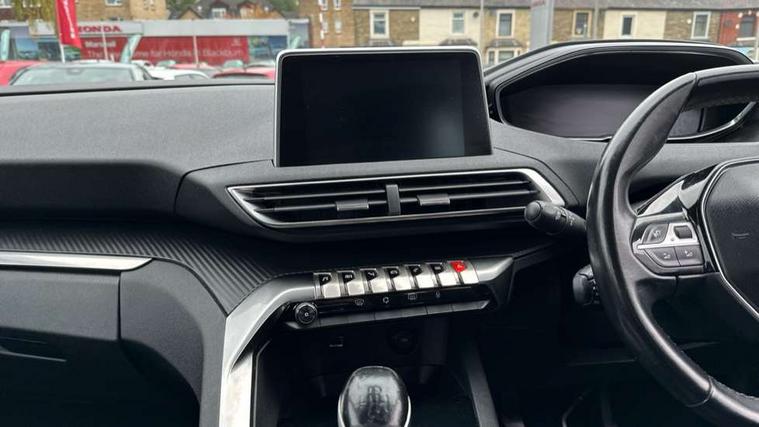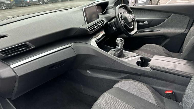 Digital clock, Driver alert system, Exterior temperature gauge, Lane departure warning system, Mirror screen with mirror link and car play, Multi function trip computer, Peugeot i-cockpit with amplify configurable interior ambiences, headup display with distance alert, touch screen, Programmable cruise control and speed limiter, Rear parking aid, Speed sensitive power steering, 6 speakers, DAB Digital radio, Peugeot connect with USB and bluetooth, Radio/MP3 player, Steering column mounted multifunction controls, Automatic activation of hazard warning lights, Black side window trim, Body colour door handles, Body colour door mirrors, Body colour rear spoiler, Body coloured bumpers, Chrome bumper inserts, Chrome front fog light surround, Chrome radiator grille and surround, Electric operated/heated door mirrors, Front fog lights, Heated rear windscreen, LED daytime running lights, LED rear lights, One touch electric front/rear windows, Rear wiper, 1/3 to 2/3 split folding rear seats, 3 x 12V power sockets, 4 Lashing eyes in boot, Blue ambient lighting, Centre console cupholder, Centre front armrest with illuminated cool compartment, Cupholders - 2 in rear centre armrest, Dual zone automatic climate control, Front headrests, Front reading lights, Front seat back map pockets, Gear shift indicator, Grab handles, Height adjustable drivers seat, Height adjustable headrests, Height adjustable passenger seat, Height/reach adjust steering wheel, Illuminated glovebox, Instrument panel light dimmer, ISOFIX on front passenger and rear outer seats, LED interior illumination, Meco cloth upholstery, Mistral full grain leather steering wheel, Rear centre armrest/ski flap, Rear coat hook, Rear headrests, Rear passenger footwell storage, Rear reading lights, Reclining front seats, Roof lining - Salin light grey, Satin chrome interior door handles, Visibility pack - 3008, 3 point front seat belts, 3 point seatbelts on all rear seats, ABS + EBD + EBA, Auto city emergency braking, Driver SMART airbag, Electronic parking brake, ESP with ASR, Front and rear curtain airbags, Front and rear pre-tensioning and force limiting seatbelts, Front passenger SMART airbag with deactivate switch, Height adjustable front seatbelts, Hill start assist, Seatbelt warning lamp and buzzer, Side airbags x 2, Tyre pressure sensor, Automatic door lock/re-lock after 30 seconds, Central locking button on dash, Child lock control of rear doors and windows, Deadlocks, Locking wheel bolts, Perimetric and volumetric anti theft alarm, Remote control central locking with two plip keys, Rolling code transponder immobiliser, Carbon effect interior trim,