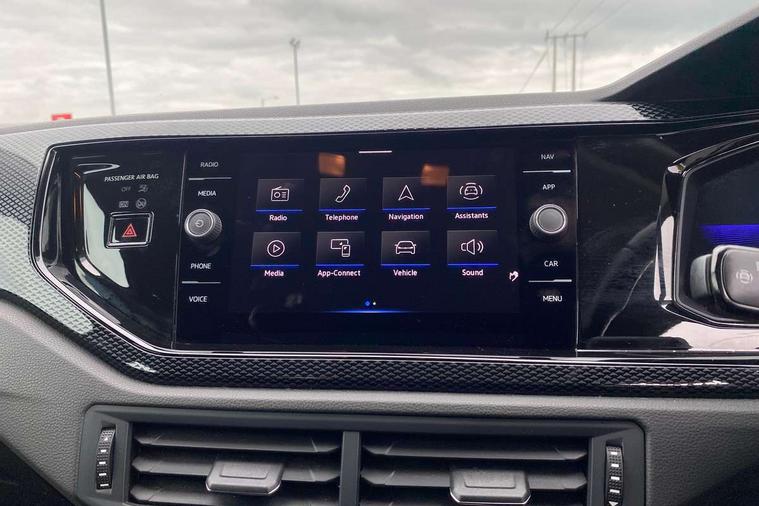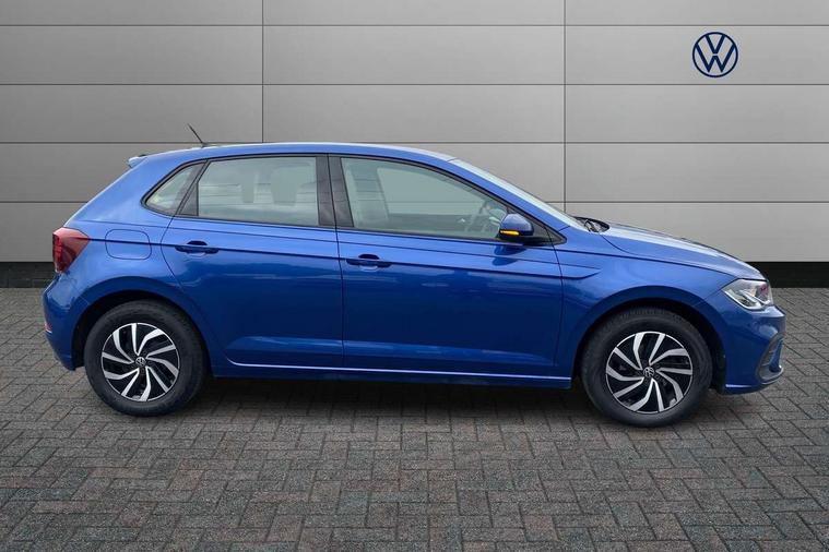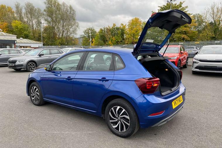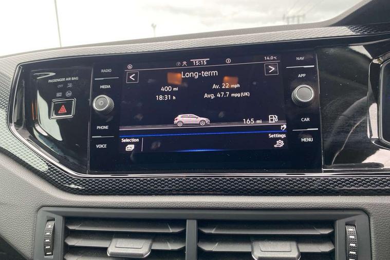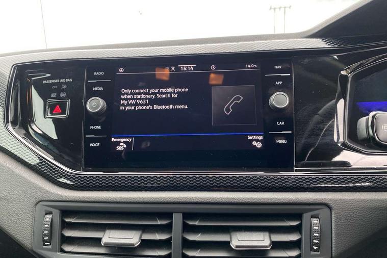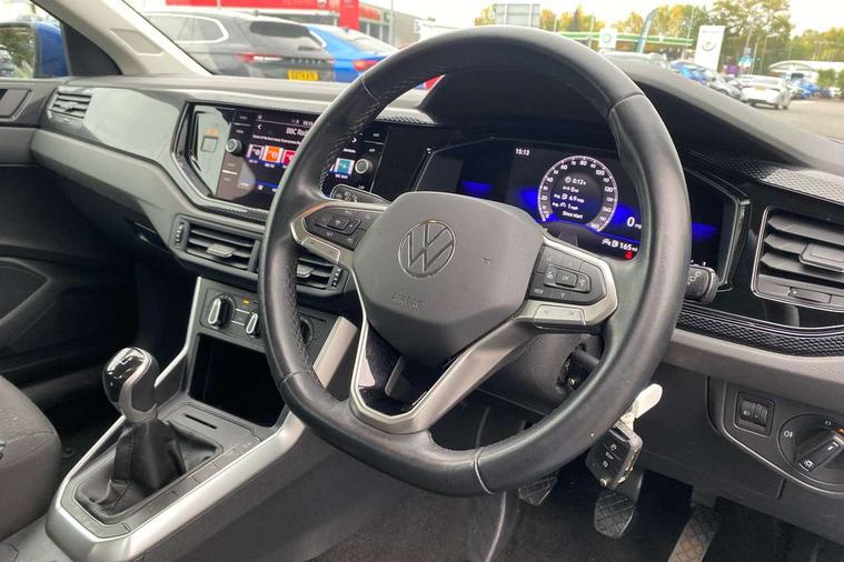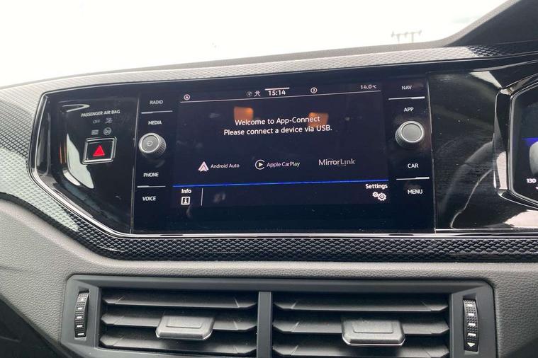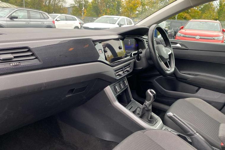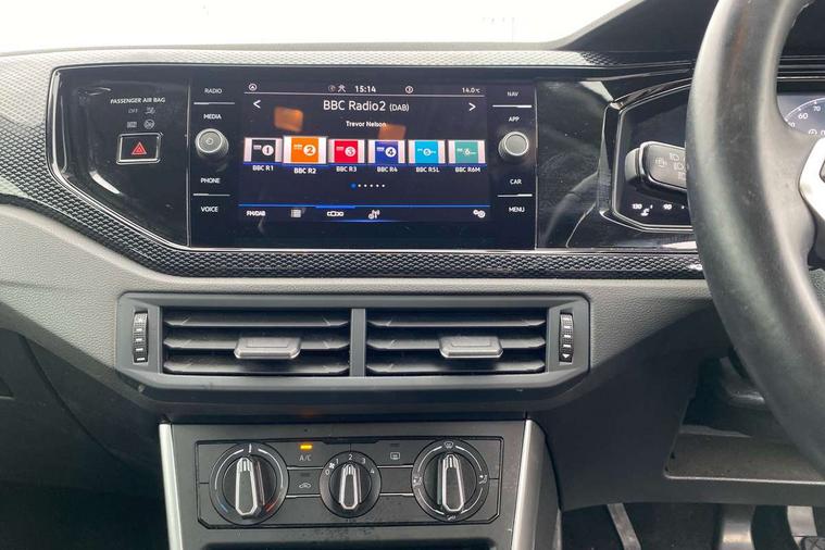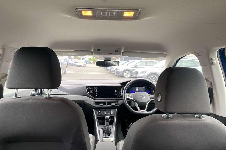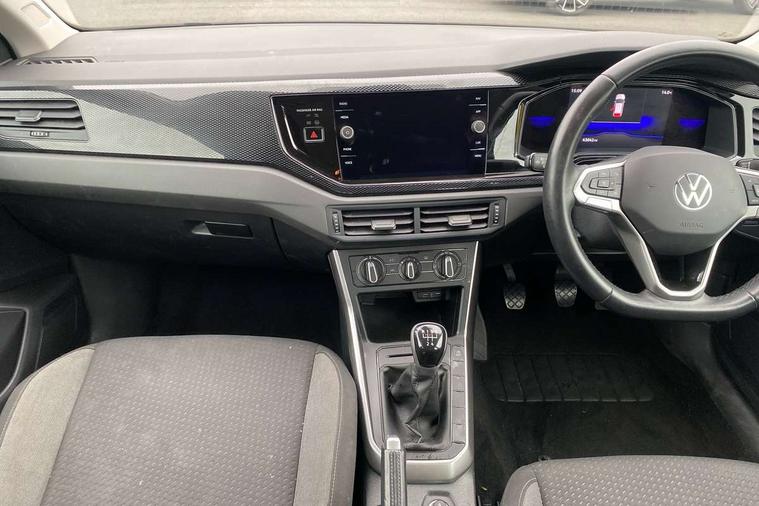 Adaptive cruise control without follow-to-stop and speed limiter, Bluetooth mobile phone interface, Driver alert system, Emergency call service, Front assist system, Power assisted speed sensitive steering, Preparation for We connect and We connect plus, Speedo and rev counter, electronic odometer, trip, service interval display and fuel gauge, Standard rear axle, Travel Assist - Lane keeping system and traffic jam assist, Travel assist including emergency assist, Trip computer, Warning signal and warning light for front and rear seatbelts not fastened, Washer fluid level indicator, Wireless app connect, Front wheel drive, Rear shock absorpion, Start-stop system with battery regeneration (recuperation - energy recovery during braking), DAB Digital radio, Diversity antenna for FM reception, Automatic dimming interior rear view mirror, Body colour bumpers, Body colour door handles, Body colour door mirrors, Electric front windows, Heat insulating darkened glass in side and rear windows, Heat insulating glass windscreen, Power folding adjustable/heated exterior mirrors and front passenger exterior mirror lowering function, Rain sensor, Rear electric windows, Rear fog light, Rear windscreen washer and wiper with interval delay, Third brake light, 12V power socket in centre console, 2 front and 2 rear reading lights, 2 USB-C ports in the front, 2 USB-C charging sockets on the center console in the rear, 3 rear head restraints, 60/40 split folding rear seat and rear seat bench not split, Ceramique headliner, Chrome plated radiator grille inserts, air vent surrounds and light switch surrounds, Door and side trim panel, Driver and front passenger seat height adjustment, Driver/passenger sunvisors with illuminated vanity mirrors, Front centre armrest, Front seat backrest storage pockets, Front standard seats, Handbrake lever handle in leather, Hartley/Thomas cloth upholstery, Isofix child seat preparation easy-fit (for two outer rear seats, and front passenger seat) compatible with I-size, Leather trimmed gear knob, Luggage compartment cover, Luggage compartment floor, Luggage compartment lighting, Multifunction steering wheel, Standard pedal cluster, Light and vision pack - Polo, 3 point height adj front seatbelts + pretensioners, 3x3 point rear seatbelts, ABS, Driver and front passenger airbag with front passenger airbag deactivation, Drivers and front passengers safety optimised head restraints, ESC (Electronic stability control) + EDL (Electronic Differntial lock) and ASR (Traction control), Extended and predictive pedestrian/ cyclist protection, Front curtain and side airbags with center airbag, Front disc brakes, Hill hold control, Rear drum brakes, Single tone horn, Tyre pressure loss indicator, Alarm with interior protection, Anti-theft alarm system with interior monitoring, backup horn, and towing protection, Anti-theft wheel bolts, Electronic engine immobiliser, Lava stone black gloss/matt decorative inserts in dash and front door panels, Low rolling resistance tyres,