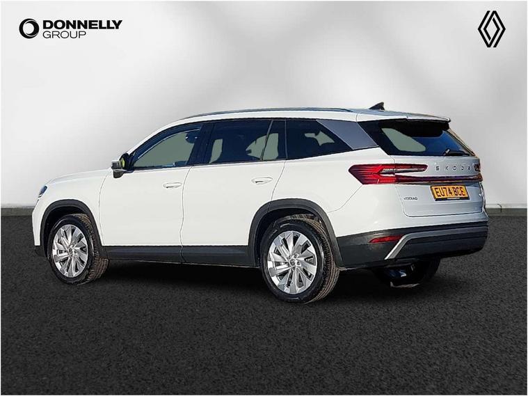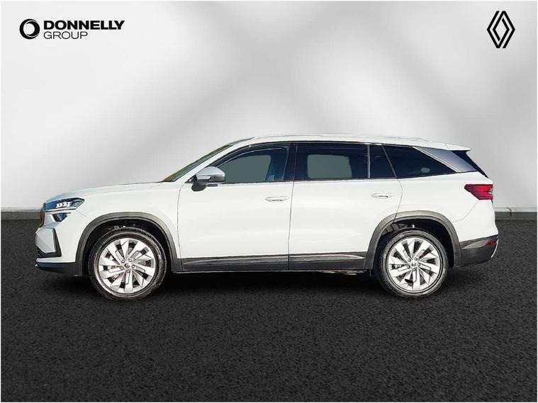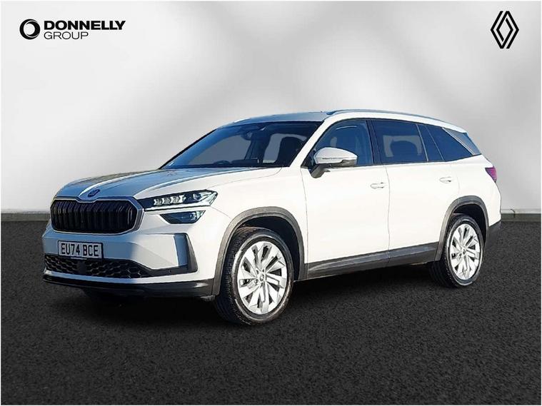 13" satellite navigation touchscreen display, Blind spot detection with door exit warning, Bluetooth system, ChatGPT functionality, Drive mode selector, Driver alert with fatigue sensor, Driver drowsiness alert system, Dry display cleaner, e call+, Front cross traffic assist, Lane assist, PAS, Rear traffic assist, Tailgate unlocking from outside, Traffic sign recognition, USB C Port x 2 in front centre console, Virtual Cockpit - 10.25" digital display, Voice control system, Wireless charging for two smartphones (15W) with cooling function, Wireless SmartLink for Apple CarPlay and Android Auto, Stop/start function, 2x USB-C in the rear, DAB Digital radio, Aero front windscreen wipers with intermittent function, Auto dimming rear view mirror, AWL (all weather lighting) and all weather light with cornering function, Black wheel arch surrounds, Body colour bumpers, Body colour door mirrors and handles, Cornering light and poor weather light, Electric folding /adjustable/separted heated/folding door mirrors, auto dimming with boarding sports and memory function, Electric front and rear windows, Exterior black decorative trims, Heat insulating glass in windshield, Heated rear window, Ice scraper in fuel tank cap, Invisible tailpipe, LED daytime running lights, LED rear fog light, LED third brake light in rear spoiler, Light assistant with automatic headlight control and coming home feature, Logo projection in door mirrors, Privacy glass, Rear side wing doors, Rear spoiler, Rear window wiper, Red decorative strip between rear LED lights, Safety reflectors on front and rear doors, Window control switches with black trim, Windscreen wipers with rain sensor, Without engine designation, 1.5l bottle holder points in all door, 12V socket in boot, 1x centre rear reading light, 2 seat bench in 3rd row, 3 configurable smart dials with 32mm coloured display, 3 seat bench in 2nd row, 4 foldable roof handles with rear coat hooks, Ambient interior lighting - Dashboard, front-door stowage compartments, front and rear door panels and footwell lighting, Automatic gear selector on steering wheel, Chrome interior door handles, Driver/front passenger reading lights, Fabric headlining, Fixed bench 40:60:40 split folding backrests, Front and rear floor mats, Front centre armrest with jumbo box storage compartment, cup holder and 12V socket, Front courtesy lights, Height adjustable front headrests, Isofix child seat fittings in outer middle row rear seats and front passenger with top tether, Manually adjustable steering column, Pollen filter, Rear centre armrest with cupholders, Rear seat boot backrest release, Retractable luggage compartment cover, Single front passenger seat, Sliding trunk cover, Small Bags on the inner sides of the front backrests, Storage pocket including mobile phone pockets on the backs of the front seats, Sunvisors with illuminated vanity mirrors, Three rear height adjustable headrests, Ticket holder on A Pillar, Tri zone climate control, Umbrella in door panel x1 made from sustainable materials, Upper and lower glovebox with card holder and coin compartment, USB C port by rear view mirror for charging only (15W), Exterior styling pack - Kodiaq, Auto door release and activation of warning lights in the event of an accident, Driver and front passenger airbag with knee airbag and front passenger airbag deactivation, Electric child locks, Electronic parking brake, ESC (incl. ABS+EMD+MSR+ASR+EDL+HBA+DSR+RBS+ESBS+MCB+TSA+XDS), Front assist with braking reaction to vehicles, pedestrians and cyclists, Front disc brakes, Fuel cut off safety device, Height adjustable front 3 point seatbelts + pretensioners, Hill hold control, Junction assist with automatic emergency braking, Rear disc brakes, Safety vest holder in door, Seat belt reminder for all seats, Three point rear seat belts, Two tone horn, Tyre pressure monitor, Anti-theft wheel bolts, Immobiliser, Remote central locking with 2 keys, Breakdown kit,