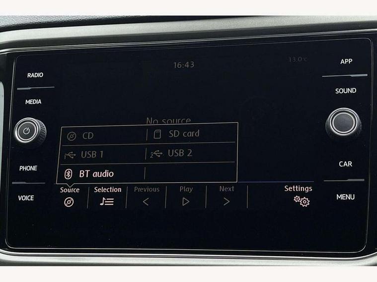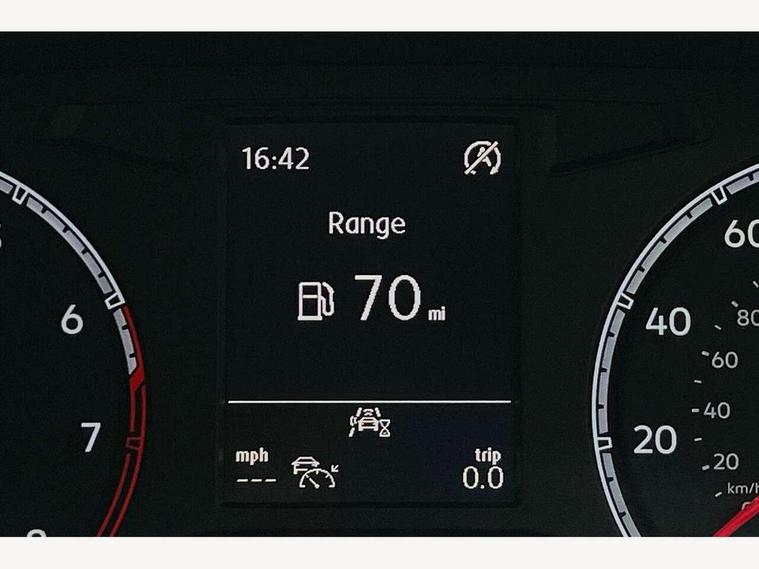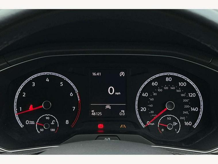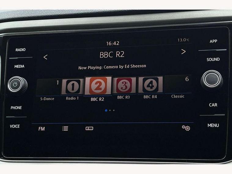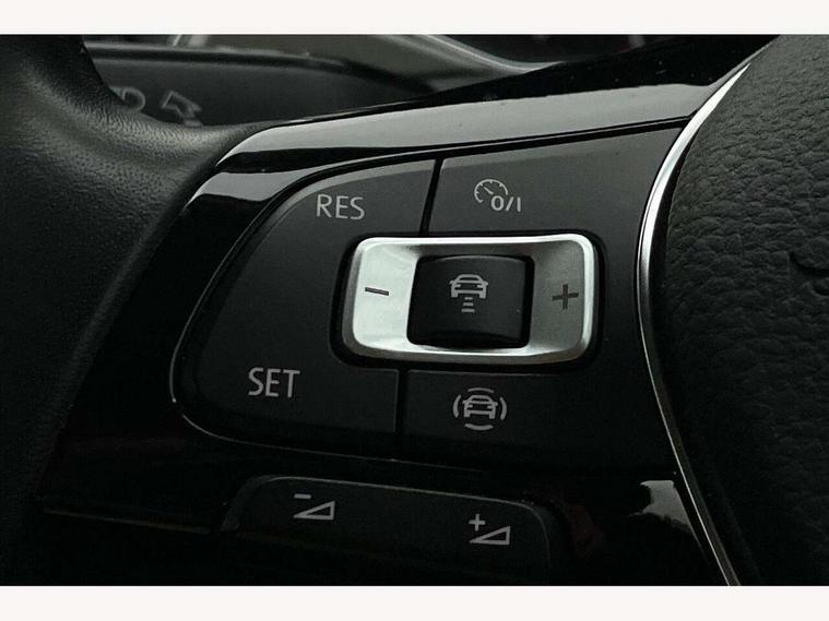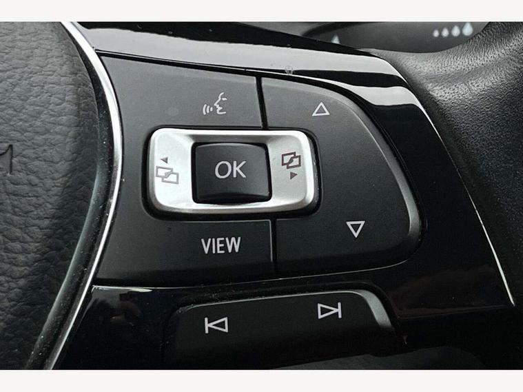 'Lights On' Reminder warning buzzer, 2 USB connection charging sockets, Adaptive cruise control with front assist, radar sensor controlled distance monitoring, city emergency braking, App-Connect, Automatic start/stop system, Bluetooth telephone and audio connection for compatible devices, Car information display, Driver tips and journey analysis, Lane assist, Multifunction computer with visual gear change recommendation for fuel consumption, Service interval indicator, Think blue trainer driver tips and journey analysis, Warning sound and light for doors and tailgate open, Warning sound and light for front seatbelts unfastened, We Connect Go Dongle, Battery regeneration during braking, DAB Digital radio, Multi device interface (MDI) with USB connection, Music playback - MP3, WMA and AAC files, Premium USB cable in choice of either Apple or Android smartphone compatibility, SD card slot, Simultaneous pairing of 2 compatible mobile devices, SMS functionality - read, compose and send SMS messages using touch-screen display, Title and cover art display, Auto dimming interior rear view mirror, Automatic hazard lights activation under emergency braking, Black grained lower door protectors, Black grained wheel arches, Body colour bumpers with silver metallic underbody fascia, Body colour door handles, Chrome trim on upper and lower radiator grille, Dusk sensor, Electrically foldable, adjustable and heated door mirrors with puddle lights and reverse activated kerb-view adjustment on passenger's door mirror, Front and rear electric windows, Front windscreen wiper with intermittent wipe and 4 position delay, Fully galvanised body, Heated rear window, High level 3rd brake light, LED rear number plate lights, Manual coming/automatic leaving home lighting function, Rain sensor, Rear wash/wipe with intermittent wipe setting, 12V socket in centre console storage area, 2 front reading lights, 3 rear head restraints, 4 load lashing points in luggage compartment, Climate control - 2 zone electronic air conditioning with automatic air recirculation and allergy filter, Drawer under drivers seat, Front centre armrest with storage compartment, longitudinal and height adjustable and two rear air vents, Front cupholders x 2, Front seat back storage pockets, Glovebox, Height adjustable front seats, Height/reach adjust steering wheel, Illuminated vanity mirrors, Instrument lighting, white adjustable panel illumination, Interior light delay, Isofix easy fit child seat preparation for 2 outer rear seats, Load through provision with single cup holder when folded down, Luggage compartment cover, removable, Luggage compartment lighting, Split folding rear seat backrests with centre armrest, Storage compartment in left and right luggage area, Storage compartment in rear doors, Storage compartments in driver and front passenger doors, 3 rear three point seatbelts, ABS, Curtain airbags, Driver and front passenger safety-optimised head restraints, Drivers and front passengers airbags with passengers deactivation switch, Electronic parking brake with auto hold, Electronic stability control (ESC) includes ASR, EDL, EDTC and trailer stabilisation function, Front seat side impact airbags, Predictive pedestrian protection, Rigid safety cell with front and rear crumple zones, Three point height adjust front seatbelts + pretensioners, Tyre pressure loss indicator, Ventilated front and rear disc brakes, Volkswagen roadside assistance, Alarm with interior protection and deactivation via infotainment system, Electronic engine immobiliser, Remote central locking with 2 remote folding keys, Limestone grey decorative inserts in dash and door panel, Steel space saver spare wheel,