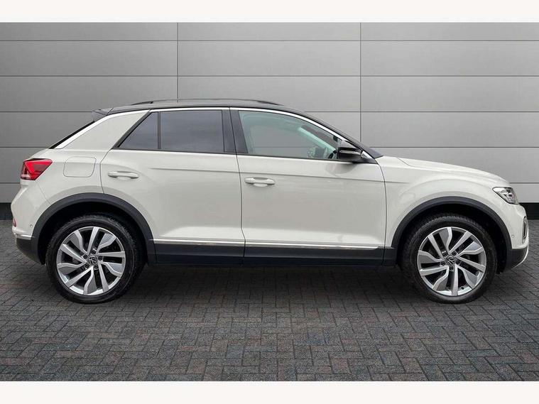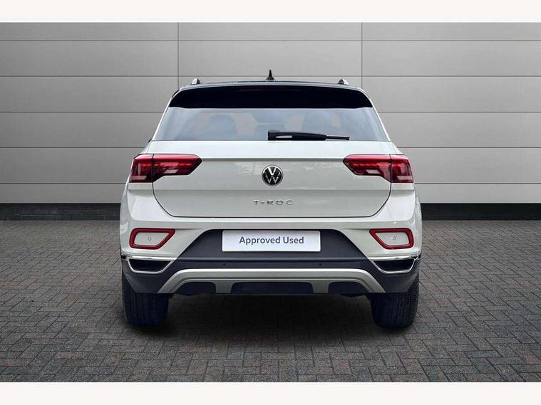 10.25" Digital cockpit pro, Bluetooth mobile phone interface, Driver alert system with fatigue detection, Driver tips and journey analysis, Emergency call service, Lane keeping system Lane Assist, Modified key software - reduce switch off time for key status change to Long no motion, Online services, Park assist including front and rear parking sensors, Service interval indicator, Tailgate/trunk lid release from outside, Think blue trainer driver tips and journey analysis, Warning sound and light for front seatbelts unfastened, Wireless app connect, Battery regeneration during braking, Start/stop function with battery regeneration, Diversity antenna for FM reception, Front and rear 6 speakers, Music playback - MP3, WMA and AAC files, Premium USB cable in choice of either Apple or Android smartphone compatibility, SD card slot, Simultaneous pairing of 2 compatible mobile devices, Title and cover art display, We Connect and We Connect Plus functionality, 3rd brake light, Auto dimming interior rear view mirror, Automatic hazard lights activation under emergency braking, Automatic headlight control with LED separate daytime running lights with coming/leaving home function, Body colour sports bumpers with silver metallic underbody fascia, Dynamic headlight range control with self adjusting whilst driving, Extended roof spoiler, Exterior mirrors aspherical on driver side, convex on front passenger side, External USB type C socket and charging sockets, Front windscreen wiper with intermittent wipe and 4 position delay, Heated rear window, LED Plus headlamps, LED rear combination lamps, LED rear number plate lights, LED tail lamp rear comination lamps, Light mode for poor weather, rain, fog or snow, Power windows with comfort operation and circuit breaker, Rain sensor, Rear exhaust tailpipe, Rear fog light on one side and reversing lights on both sides, Rear side wing doors, Rear wash/wipe with intermittent wipe setting, Remote electrically foldable door mirrors, puddle lights and reverse activated passenger's door mirror, 12V power socket in centre console, 3 rear head restraints, 3 seat bench in 2nd row, 4 load lashing points in luggage compartment, Air care climatronic air conditoning system with active combination filter and 2-zone temperature control, Chrome plated radiator grille inserts, air vent surrounds and light switch surrounds, Door and side trim panel with leatherette insert, Drawer under drivers seat, Front + rear carpet mats, Front centre armrest, Front comfort sports seats, Front cupholders x 2, Front footwell illumination, Instrument lighting, white adjustable panel illumination, Interior ambient lighting and surround lighting, Interior light delay, Isofix child seat preparation, Leather gearshift handle, LED interior light with switch off delay/dimmer and 2 front/rear LED reading lights, Load-through provision with cup holder when folded down ('Unsplit rear seat bench, split folding backrest, with centre armrest), Luggage compartment lighting, Non-folding front passenger seat backrest, Single front passenger seat, Storage compartment in left and right luggage area, Storage compartment in rear doors, Storage compartments in driver and front passenger doors, Sunvisors with illuminated vanity mirrors, Variable boot floor, height adjustable and removable, Driver assistance pack without proactive passenger protection - T-Roc, 3 point height adj front seatbelts + pretensioners, 3 point seatbelts in outer rear with ECE label, ABS, Child locks on rear doors, Driver and front passenger airbag with front passenger airbag deactivation, Driver and front passenger safety-optimised head restraints, Drivers seatbelt reminder, Electronic parking brake, Electronic Stability Control (ESC) inc EDL (Electronic Differential Lock) and ASR (Traction Control), Front and rear passengers curtain airbag system including front side airbags, Front assist with city emergency braking and pedestrian monitoring, Front seat side impact airbags, Predictive pedestrian protection, Rear disc brakes, Single tone horn, Tyre pressure loss indicator, Volkswagen roadside assistance, Alarm with interior protection, Anti-theft alarm system with interior monitoring, backup horn, and towing protection, Remote central locking with SAFELOCK, radio remote control with 2 remote control folding keys, Trims for alloy wheels,