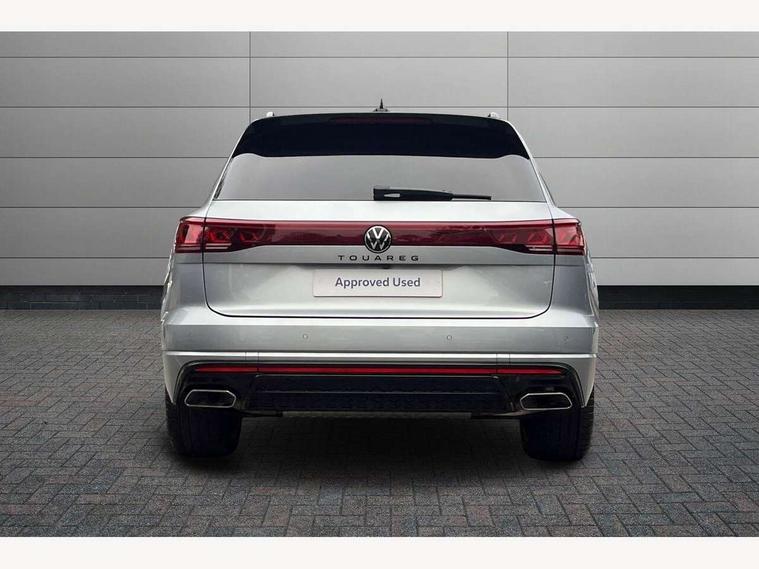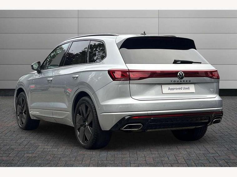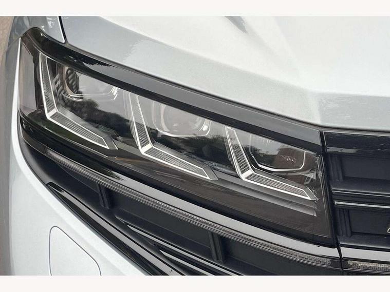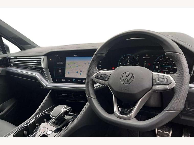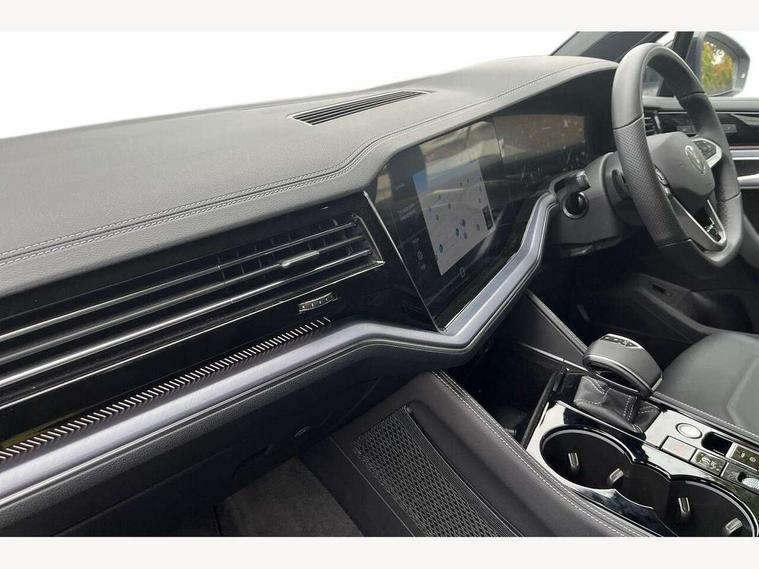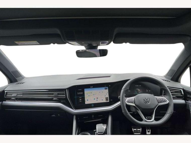 15" Screen Top infotainment system Premium (MIB3), Adaptive cruise control, Advanced driver attention and drowsiness monitor, Driver profile selection, Dynamic road sign display, E-Sim card for online connectivity, eCall emergency system, Innovision cockpit, Intelligent park assist, Mobile phone interface with inductive charging, Multi-colour Active Info display, Park Assist - Sensor controlled steering aid to assist parallel or bay parking, PAS, Warning signal and warning light for front and rear seatbelts not fastened, Wireless app connect, Adaptive chassis control, DAB Digital radio, Diversity antenna for AM/ FM reception, We Connect and We Connect Plus functionality, Automatic coming/leaving home lighting function, Automatic headlights, Black door mirrors, Black style comfort bumpers, Dynamic headlight range control with dynamic cornering light, Electric front tilt/slide panoramic sunroof and fixed rear sunroof, Electrically power adjustable, heated, folding, auto dimming, front passenger exterior door mirror lowering function, External USB type C socket and charging sockets, Gloss black roof rails, HD LED Matrix beam plus digital headlight projection with variable light distribution, Headlight washers, Highway light, LED 3rd brake light, LED daytime running lights, LED rear combination lamp with variable lighting functions and special styling, Poor weather light, Rain sensor, Rear exhaust tailpipe, Rear fog light with back up light on both sides, Rear light bar and illuminated logo, Rear side wing doors, Rear wiper, Stainless steel door sill protection, 12V socket in centre console, 3 rear headrests, 3 seat bench in 2nd row, 4 zone climate control, Airbag label on sun visor and B-pillar, Brushed stainless steel pedals, Double sun visors with illuminated vanity mirrors, Front + rear carpet mats, Front centre armrest, Leather wrapped multifunction sports steering wheel, heated, with touch control and shift paddles, Mechanical rear seat release, Power adjustable lumbar support in front, Power seats in front, right side with memory features and seat cushion depth adjustment, Rear seat backrest and split folding with center armrest, Single front passenger seat, Memory pack plus - Touareg, 3 point seatbelts, outer rear with ECE lable, ABS, Child locks on rear doors, Curtain airbags, Driver and front passenger safety-optimised head restraints, Driver/Front Passenger airbags, Extended pedestrian protection measures, Front assist, Front seat side impact airbags, Generative braking with start and stop system, Height adjustable 3 point front seatbelts with pre tensioners, Passenger airbag deactivate switch, Three 3 point rear seatbelts, Two tone horn, Tyre pressure loss indicator, Warning triangle and first aid kit, Alarm system with interior protection, Easy open and close sensor controlled luggage compartment opening and closing with remote unlocking, Keyless Access Keyless locking and starting system with SAFELOCK, Aluminium decorative inserts, Black decorative trims, Gloss black decorative inserts in centre console, Tool kit,