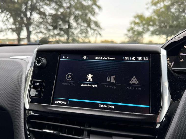 7" Multifunction colour touch screen, Android Auto, Bluetooth system, Connected 3D navigation includes voice control and TomTom Live updates, Cruise control, Electrically assisted power steering, External temperature gauge, Mirror screen with mirror link and car play, Peugeot connect SOS and assistance, Service interval indicator, Speed alarm + Speed limiter, Trip computer, 3.5mm jack for external audio device and USB socket, DAB Digital radio, Front and 2 rear speakers plus 2 tweeters, Steering wheel mounted controls, Automatic activation of hazard warning lights, Black door mirrors, Black fog light surrounds, Body coloured bumpers, Chrome exhaust tailpipe, Colour coded door handles, Cornering front fog lights, Electric front windows + drivers one touch, Electric rear windows, Electrically operated heated door mirrors with electric folding operation, Equaliser grille with chrome 3D markings, Follow me home headlights, GT badging, Intermittent rear wash/wipe, LED daytime running lights, LED Indicators, Rear fog lights, Rear LED lights with boomerang effect, Tinted rear and side windows, 1/3 to 2/3 split folding rear seats, 12V socket, 3 rear head restraints, Aluminium door sill trims, Aluminium pedals, Cloth upholstery, Driver seat height adjust, Driver/passenger sunvisors and vanity mirrors, Dual zone automatic air conditioning, Gear shift indicator, Height adjustable front headrests, Height and reach adjustable steering wheel, Leather and chrome gear knob, Leather sports steering wheel, LED interior lights and illuminated footwells, Passenger seat height adjuster, Rear seat 3 point ISOFIX location mounts x 2, Sport seat with GT Line trim, Visibility pack - 208, 3x3 point rear seatbelts, ABS with Electronic brake force distributor and emergency brake assist, Child safety lock, Driver and passenger airbags with Passenger airbag deactivation system, ESP with Hill Assist, Front and rear curtain airbags, Front side airbags, Traction control, Tyre pressure sensor, Alarm, Deadlock, Remote control central locking, Seatbelt alarm (Driver & Passenger), Thatcham approved Cat 2 immobiliser, Contrast stitching - Red, 15" steel spare wheel,