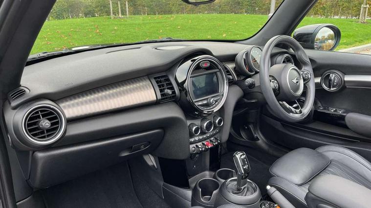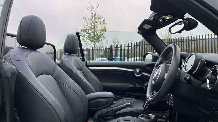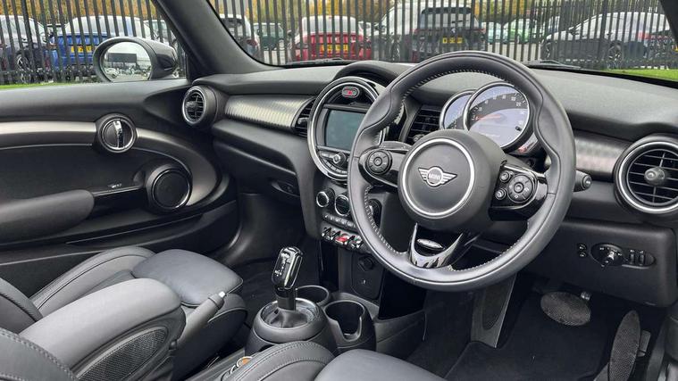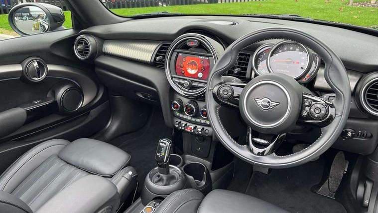 Automatic start/stop function with brake energy recuperation, Compatible mobile phone bluetooth with audio streaming, Electro-mechanical speed dependant steering assistance, Instrument cluster, Mini E-call, MINI TeleServices, On board computer, Rear park distance control, Service interval indicator, Double Vanos system, Fully variable valve control, High precision injection, Steptronic transmission with double clutch, 6.5" touchscreen with LED ring, FM tuner and DAB digital radio, Automatic headlight activation switch, Body colour fuel filler cap, Chrome line exterior, Dynamic brake lights, Electric windows, Fully electric black softtop with integrated sunroof functionality, Heated rear window, Heated windscreen washer jets, LED headlight with closed ring and daytime driving lights, Left exhaust tailpipe with chrome finisher, Metal door sill strips with MINI imprint, Model logo Cooper on right of tailgate, Radiator grille bars, tailgate handle, lower front grille grating, rear central fog light in chrome, Rain sensor window wipers, Rear fog lights, Rear LED lights with union jack design, Side scuttle panel with integrated indicator, Sun/heat protection glass, White indicator lenses, 12V Accessory socket in centre console, 4 lashing eyes in luggage compartment, 50/50 split folding rear seats, Air vents, gear lever base, speakers in doors, door handles in chrome, Chrome interior highlights, Cupholders, Easy Load boot handles, Front and rear head restraints, Front and rear isofix with front passenger airbag deactivation, Glove compartment, Height and length steering column adjustment, Interior lighting with 12 basic colours selectable via toggle switch in roof, Leather gearshift lever and handbrake gaiters, LED reading lights, vanity mirror lights, front foot well light and spotlight on front seats, Manual air conditioning, Mechanical seat adjustment, driver seat height adjust, forward/back and front seats backrest, Mini logo projection on floor from drivers exterior mirror, MINI Yours fine walk nappa leather steering wheel with contrast stitching in silver and MINI Yours badge, Multifunction steering wheel, Storage compartments in doors, Sunvisors with vanity mirrors, 3 point seatbelts on all four seats, 6 Airbags - front, side and seat belt tensioners, Active rollover protection, Anti-lock braking system (ABS), DSC - Dynamic Stability Control, Front and rear disc brakes, Hill start assist, Single tone fanfare horn, Tyre pressure monitoring system, Alarm system with tilt sensor, monitoring doors, bonnet interior and tailgate, Electronic vehicle immobiliser, Keyless Go, Chrome line interior, Tool kit,