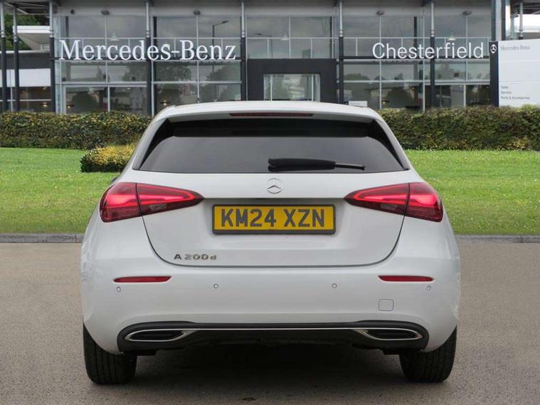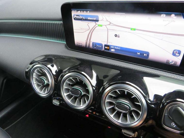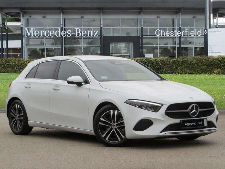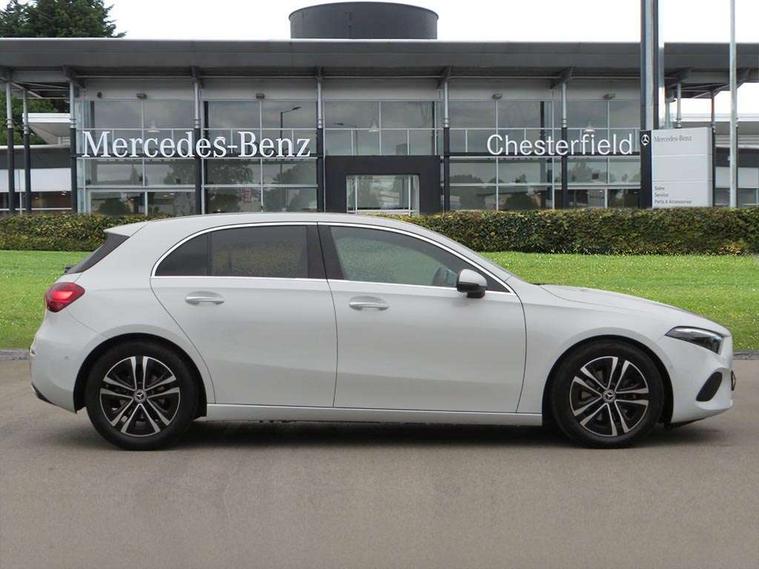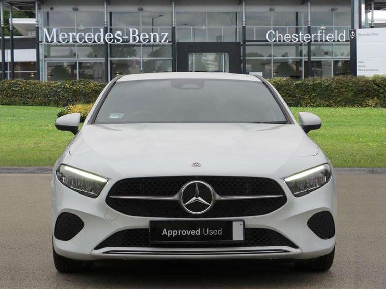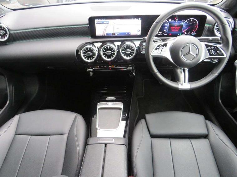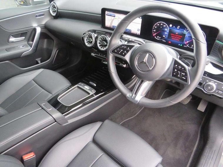 10.25 inch touchscreen central media display, 10.25" Digital instrument cluster display screen, Attention assist, Brake pad wear indicator warning light, Car wash mode, Cruise control + speed limiter, Direct steering, Direction indicators with lane change function, Dual bluetooth interfaces, DYNAMIC SELECT with a choice of driving modes (ECO, Comfort, Sport and Individual), Easy pack tailgate hands-free access, ECO start/stop function, Engine start/stop button, Fluid level warning indicator for fuel, oil, coolant and washer fluid, Fluorescent jacket for driver, Hard-disk navigation, Hey Mercedes Voice activation, Lamp failure indicator, Lane keeping system, Mercedes me connect including emergency call system, accident recovery, breakdown management and maintenance, Mercedes me remote services, Outside temperature gauge, Owners manual in English, Pre-installation of private car share, Preinstallation for Mercedes Benz link, Remote boot closing, Service indicator (ASSYST), Smartphone integration with Apple CarPlay and Android auto, Speed limit assist, Speed sensitive power steering, Tailgate, Trip computer in multifunction display with current consumption indicator, Wireless charging, Lowered comfort suspension, DAB Digital radio, MBUX multimedia system, Mercedes Benz sound system (100 W) with 6 speakers, 4 Electric Front and Rear windows, Adaptive brake lights, Body colour bumpers, Body colour door handles with chrome inserts, Body colour side skirt, Body coloured door mirrors, Chrome beltline strips, Diamond radiator grille with pins in fine star pattern, Electric adjustable and heated door mirrors with integrated LED side indicators, Exhaust system with 2 visible tailpipe trim elements and rear apron, Headlamp assist automatic headlamp activation, Heat insulating dark tinted rear and rear side windows, Heated glass rear windscreen + timer control, LED High level third brake light, LED High Performance headlamps including integral LED daytime running lamps and adaptive highbeam assist, LED tail lamp, Privacy glass, Radio aerial, Rain sensing windscreen wipers with two sensitivity settings, Rear fog lights, Rear side wing doors, Rear windscreen wiper, Window line trim strip in chrome, 3 seat bench in 2nd row, 3 spoke ARTICO man-made leather multifunction sports steering wheel, 4 way lumbar support, 40:20:40 split folding rear seats, Air conditioning - One zone thermatic automatic climate control with automatically controlled air distribution, Artico man-made leather upholstery, Automatic child seat recognition sensor, Black air vents with surround in silver chrome, Black roof lining, Front centre armrest with stowage, Front comfort seats with adjustable head restraints, Front door sills with Mercedes Benz lettering, Front seat backs luggage nets, Gearshift paddles on steering wheel, Heated front seats, Height/reach adjustable steering column, Interior lighting - 64 colour Ambient lighting, Interior mirror with reading lamps in black and frameless, ISOFIX and top tether child seat fixing points in two outer rear seats, Rear armrest with 2 cupholders, Rear head restraints, Seat occupancy sensor for front passenger seat, Single front passenger seat, Stowage compartment in centre console with retractable cover, Sunvisors with illuminated vanity mirrors, Twin front cupholders, Velour floor mats, Light and sight pack - A Class, Mirror package - A Class, Parking pack - A Class, Seat comfort pack - A Class, USB pack plus - A Class, 3 rear 3 point seatbelts, ABS with Brake Assist, Active bonnet, Active brake assist includes forward collision warning system with autonomous braking, Adaptive brake assist with hold function and hill start assist, Black seatbelts, Bonnet with power domes, Childproof locks manually operated for rear doors and electrically operated for rear power windows, Crash responsive emergency lighting, Driver and passenger head and side airbags, Drivers knee airbag, Dual stage driver/passenger airbags, Electronic parking brake, ESP curve dynamic assist, ESP with ASR, Front and rear seatbelt reminder, Tyre pressure monitoring system, Warning triangle and first aid kit, Window airbags, Alarm system/interior protection/immobiliser, Guard 360 degree vehicle protection, Keyless entry lock/unlock, Keyless Go, Remote central locking and crash sensor with emergency opening function, Dark carbon fibre interior trim, 17" 5 spoke light alloy wheels, aerodynamically optimised, painted in black with high sheen finish, Summer tyres, Tirefit sealant kit,