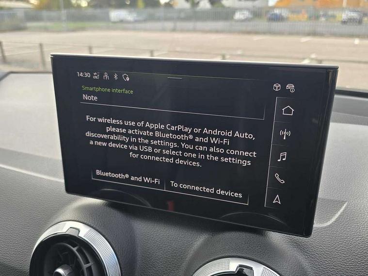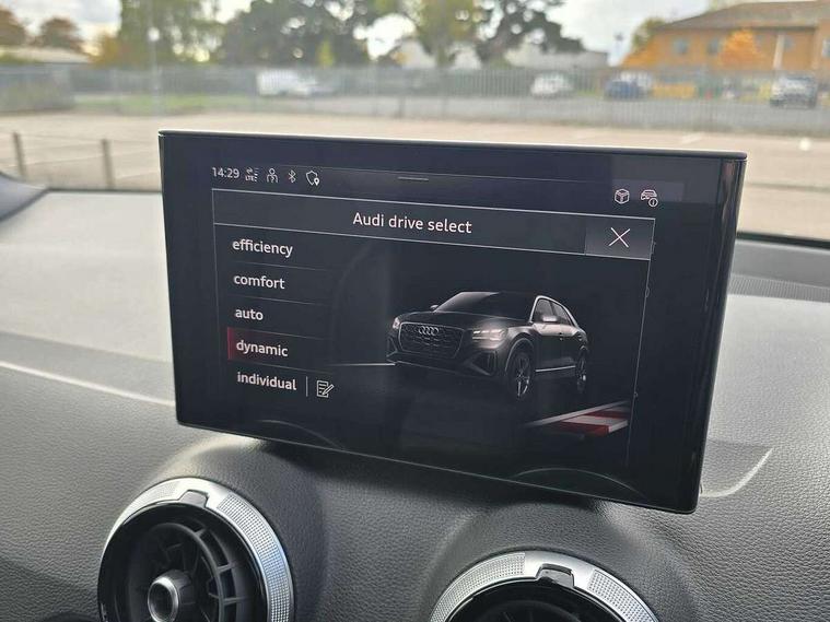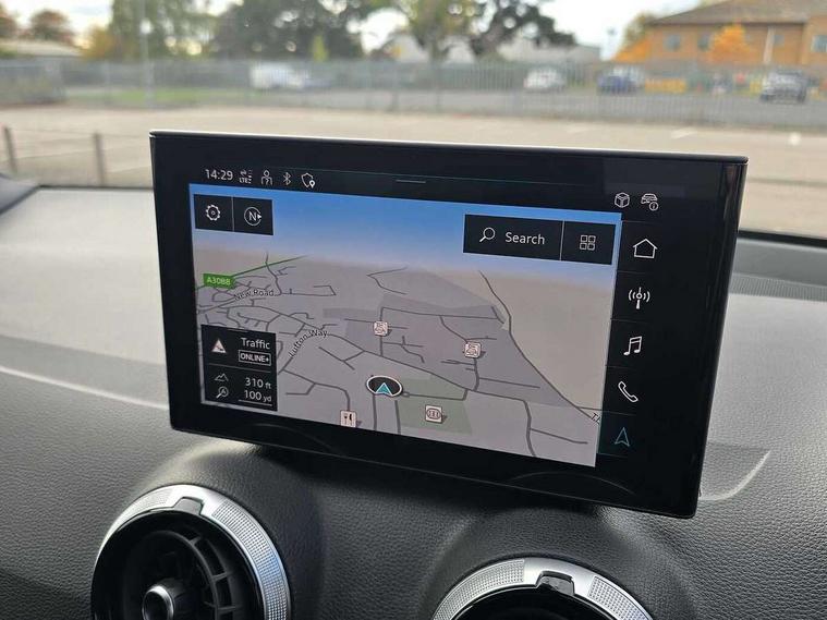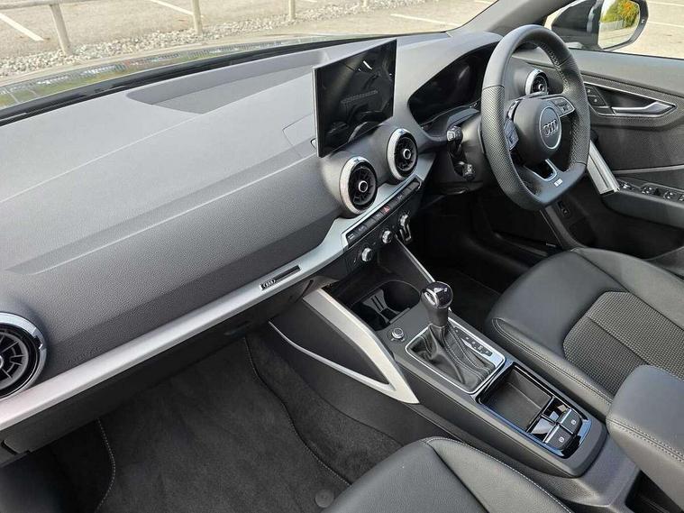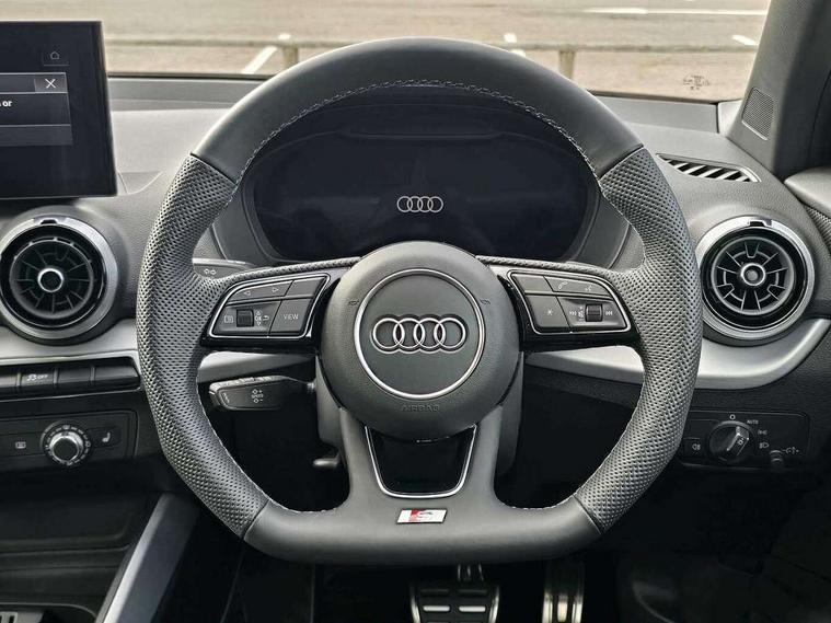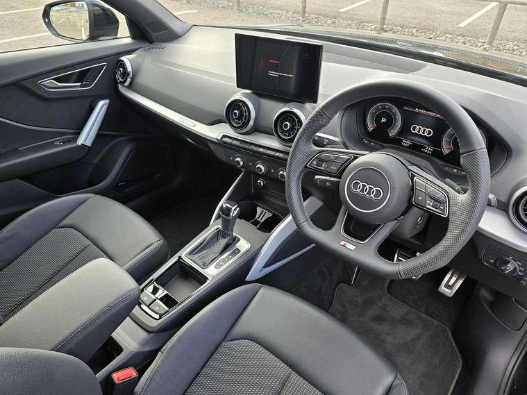 3D map display, Audi connect navigation and infotainment includes innovative services, Audi connect remote and control connects your vehicle to your smartphone, Audi drive select: S tronic - power steering assistance + engine + gearshift (modes: comfort, auto, dynamic, efficiency, individual), Audi smartphone interface - Apple carplay/Android Auto, USB connect, 2xSDXC card readers, voice control for navi, telephone, music and 3rd party apps, Audi virtual cockpit, Automatic start/stop system with recuperation, Bluetooth interface includes bluetooth audio streaming, Camera based traffic sign recognition, Cruise control, Distraction and Fatigue warning, E-call, Jukebox hard drive memory for music (10GB), Lane departure warning, MMI navigation plus with 8.8" touchscreen, Natural voice recognition, Power operated tailgate, Progressive steering, Rear parking sensors, Sport suspension, 6 passive loudspeakers, DAB Digital radio, USB type C port, Audi beam, Auto dimming rear view mirror, Black window trims, Bumper in full body colour paint finish, Electrically adjustable, folding, auto dimming and heated door mirrors with integrated LED side indicators, Front windscreen with grey tinted sunband, LED daytime running lights, LED headlights with dipped beam, high beam, position lights, indicators, LED rear lights, LED third brake light, Privacy glass - dark tinted rear and rear side windows from B-pillar backwards, Rear side wing doors, Rear wiper, Variable front intermittent wipers, Wheel arch trims in manhattan grey, 12v socket in front, 3 seat bench in 2nd row, 3 spoke flat bottomed multi-function leather sport steering wheel with gear shift paddles, 4-way electric lumbar support for front seats including manual seat height adjustment for both front seats, 60/40 split folding rear seat bench, Black carpets, Black cloth headlining, Front and rear head restraints, Front centre armrest, Front sport seats, Front/rear floor mats, Height/reach adjust steering wheel, Illuminated door sill trims with S logo, ISOFIX child seat mounting in front passenger and rear outer seats, Manual air conditioning, Single front passenger seat, Stainless steel pedals, Black styling pack - Q2, 3x3 point rear seatbelts, 6 airbags - Front, curtain and front side airbags, Electromechanical parking brake, Electronic stabilisation control including ABS, ASR and EDL, Front passenger airbag deactivation, Hill hold assist, Pre-sense front with pedestrian recognition, Seatbelt monitoring, Tyre pressure warning light with visual and acoustic warning, Warning triangle and first aid kit, Anti theft wheel bolts, Electronically operated child locks, Remote central door locking, Thatcham category 1 alarm, Aluminium interior element, Black dashboard, Gloss black centre console, Matt brushed aluminium trim inlays, Tool kit,