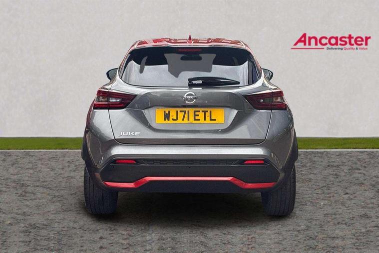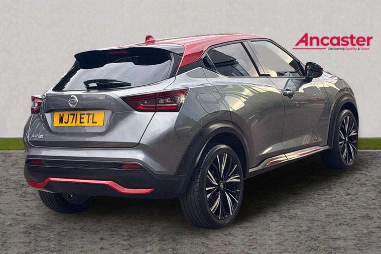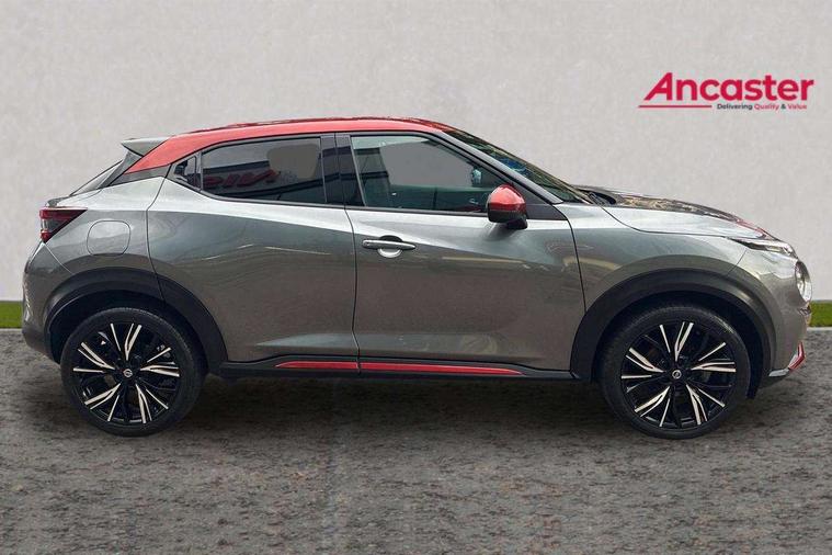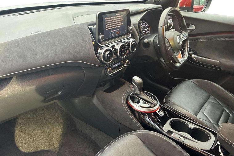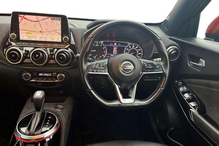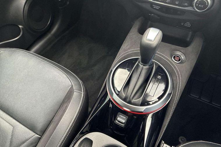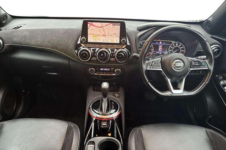 7" full colour TFT screen combimeter, 8" infotainment colour display with touch screen, Apple CarPlay and Google Android auto, Drive modes select (Eco, normal and sport), Emergency and breakdown call, Front parking sensor, Idle start/stop system, Intelligent lane intervention, Lane departure warning system, Nissan connect nav with TomTom traffic, Nissan connect services and Wifi connection, Outside temperature sensor, Power Steering, Rear parking sensor, Traffic sign recognition, Trip computer, Gasoline particulate filter, Bluetooth system, USB, Aux-in and 12V socket, Bose personal plus audio system with 8 speakers(4 speakers and 2 headrest speaker for driver and passenger seats), Bose personal sound stage control, DAB Digital radio, Front lower bumper painted in silver finisher, Rear console USB port, Auto dimming interior rear view mirror, Automatic hazard signal with emergency stop signal, Body colour bumpers, Body colour door handles, Electrically adjustable door mirrors with integrated indicators, Follow me home headlights, Front and rear electric window with one touch driver window, Heated and auto folding door mirrors, High beam assist, LED daytime running lights, LED front fog lights, LED headlamps, LED rear fog lamp, LED rear lamps, Rain sensor windscreen wipers, Rear privacy glass, Rear wiper, Thermaclear heated windscreen, Three blink turn signal, 3 height adjustable rear headrests, 60/40 split folding rear seat, Automatic climate control, Card holder on driver sunvisor, Door ambient lighting, Driver and passenger sliding and reclining seats, Driver seat back pocket, Driver side rear coat hanger, Driver/passenger sunvisors and vanity mirrors, Front and rear cabin lights, Front armrest, Front door pockets with bottle holders, Front head restraints, Front passenger isofix child seat anchorage point, Front/rear passenger grab handles, Gear console ambient circle lighting, Grey synthetic leather kneepad, Heated front seats, Height adjustable driver's seat, Height adjustable passenger seat, Internal chrome door handles, Leather gearshift knob, Leather steering wheel, Luggage board, Luggage space lighting, Monoform sporty seats, Multifunction steering wheel, Passenger seat back pocket, Rear door bottle holders, Steering wheel mounted gearshift paddles, Telescopic steering wheel adjustment, Two cupholders in front centre console, Two rear isofix child seat anchorage points with top tether, Voice recognition switch on steering wheel, Welcome light and console tray ambient lighting, ProPilot pack - Juke, ABS with EBD and brake assist, Active ride control, Active Trace Control, Driver and passenger airbags, Driver and passenger side airbags, Electric handbrake with auto hold function, Electronic Stability Programme (ESP), Front and rear curtain airbags, Height adjustable seatbelts, Hill start assist, Intelligent emergency braking with pedestrian and cyclist recognition, Seatbelt reminder for driver/front passenger and rear seats, Single tone horn, Three 3 point rear seatbelts, Traction control, Tyre pressure monitoring system, VDC Dynamic Vehicle Control, Ventilated rear brake discs, Alarm, Immobiliser, Intelligent Key with push button starter, Remote central locking, 19" Akari alloy wheels,