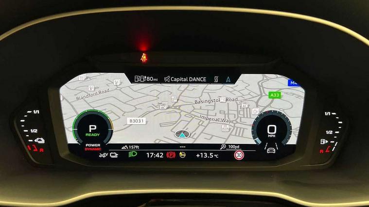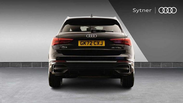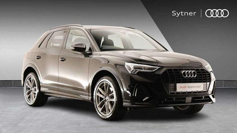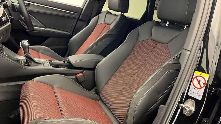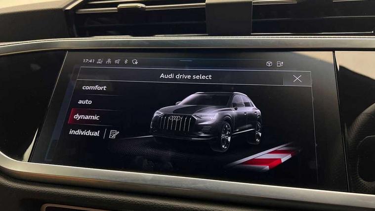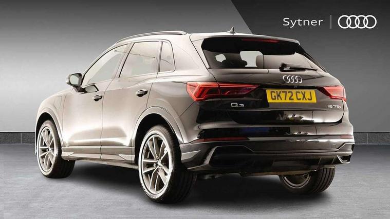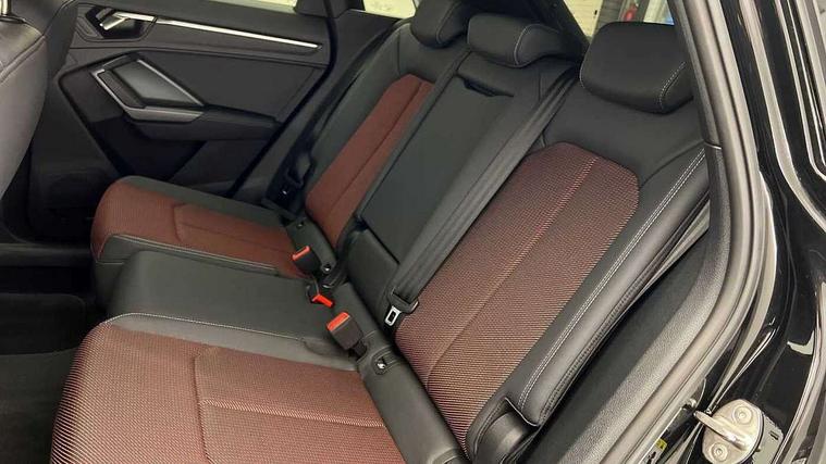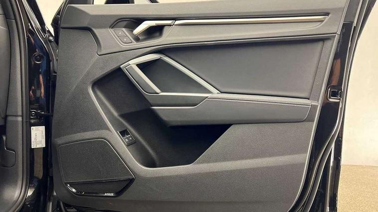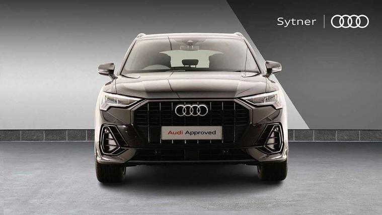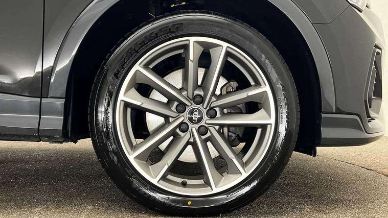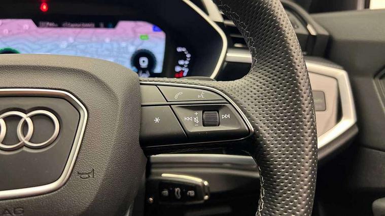 Amazon alexa Integration, Audi drive select, Audi lane departure warning, Audi Virtual Cockpit - 10.25" display, Bluetooth interface, Camera based traffic sign recognition, Legal emergency call, MMI Navigation Plus with high resolution 10.1 inch touchscreen colour display, Power operated tailgate, Progressive steering, Service interval indicator, Smartphone interface includes wireless Apple carplay/Android Auto, Start stop system with recuperation, Voice control system with natural language interaction, 3 pin 10 amp domestic charging cable, 3.6 kw On-board charger, Type 2 mode 3 32 amp charging cable, Type 2 socket for AC charging, 2 USB-C ports with charge and data functions, 6 passive loudspeakers, DAB digital radio module, Acoustic windscreen, Auto dimming frameless rear view mirror, Black roof rails, Electrically folding, adjustable and heated door mirrors with integrated LED side indicators and kerb view function for passenger side, Front and rear electric windows, Front fog lights, Grille vertical bars in aluminium silver/Matt, High gloss black finish B and C pillars, LED headlights with LED daytime running lights, LED rear lights, LED third brake light, Privacy glass dark tinted rear and rear-side windows (from B-pillar backwards), Rain and light sensors, Rear diffuser grille in grained matt black, Rear diffuser strip in matt titanium black, Rear side wing doors, Rear wiper, S line bumpers in contrasting Manhattan grey, Variable front intermittent wipers, 12V socket in rear centre console, 3 seat bench in 2nd row, 40:20:40 folding with manual adjustment for 60:40 forwards/backwards position and backrest angle, Adjustable rear seat bench/backrest with centre armrest and cupholder, Black cloth headlining, Dual zone electronic climate control, Front and rear black floor mats with contrast stitching in rock grey, Front and rear headrests, Front and rear roof module including reading lights, Front centre armrest, Glove compartment lighting, Height and reach adjustable steering wheel, Illuminated door sill trims with S logo, ISOFIX child seat mounting for front passenger with airbag deactivation and outer rear seat including top tether attachment point for outer rear seats, Luggage compartment light, Manual front seats with height adjustment, Perforated leather gearknob, Single front passenger seat, Stainless steel luggage compartment sill finisher, Stainless steel pedals, Black styling pack - Q3, Non smoking pack - Q3, 3x3 point rear seatbelts, 6 airbags - Driver, front passenger, curtain and side windows, Audi pre-sense front with pedestrain and cyclist recognition, Electromechanical parking brake, Electronic stabilisation control including ABS, ASR and EDL, Front seatbelt reminder, Hill descent control, Hill hold assist, Manual child lock in rear doors, Pre sense basic, Seatbelt monitoring, Tyre pressure warning, Warning triangle and first aid kit, Anti theft alarm, Anti theft wheel bolts, Immobiliser, Remote central locking, Detail dashboard around MMI touch colour display in glass look, black with surround in aluminium look, Leatherette door armrest, Piano black inlay, Tool kit, Tyre repair kit,