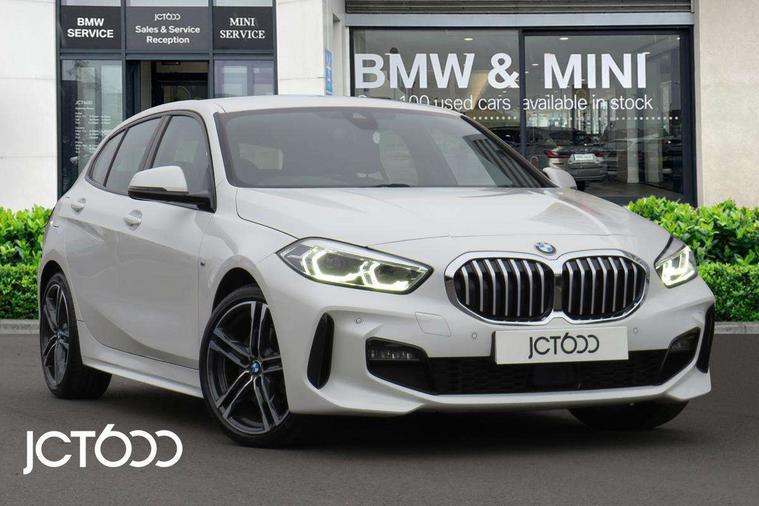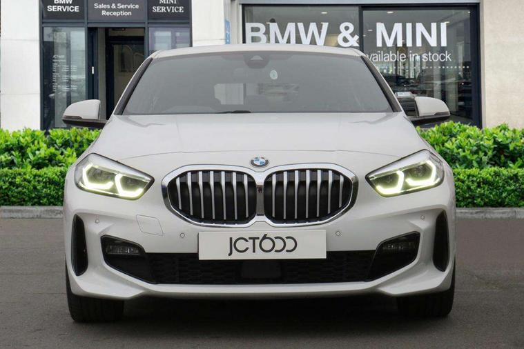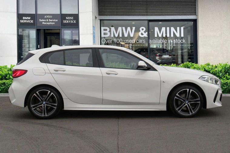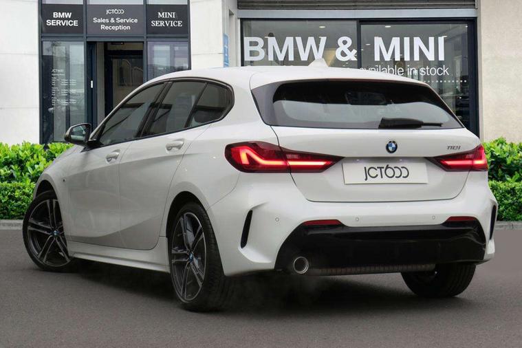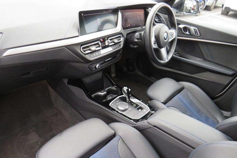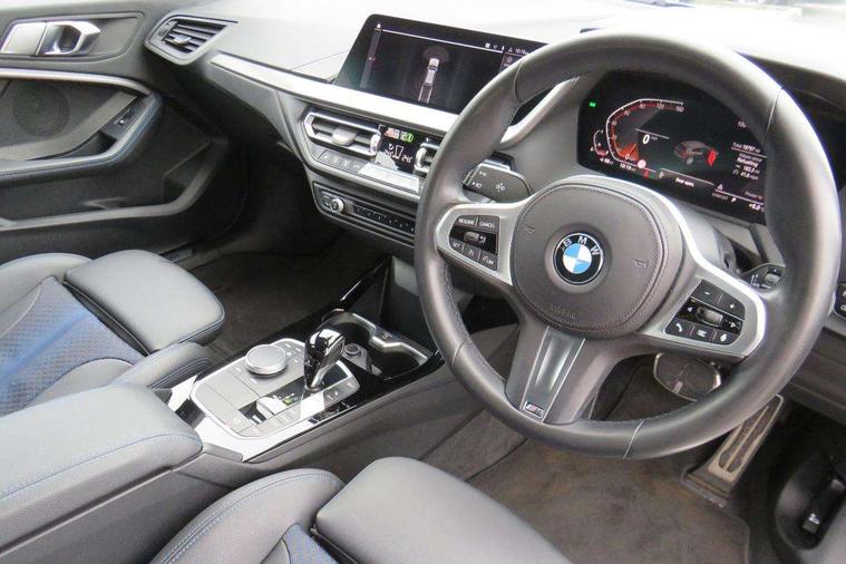 Active guard plus, Attentiveness assist, Bluetooth / WiFi interface for wireless connection of mobile terminal devices and audio streaming, BMW ConnectedDrive online services, BMW Teleservices, Check Control warning system for monitoring of lights and door/luggage compartment open warning, Cruise control with brake assist, Eco pro mode, Front axle single joint with specific axle kinematics to minimise drive influences on steering + provide increased rigidity agile driving behaviour, Integrated owners handbook, Lane departure warning system, Oil sensor for level and grade, On board computer, Optimum shift indicator, Personal Profile, Pull away assistant, Rigidly mounted rear subframe - Multi link construction with separate spring / damper configuration and excellent driving characteristics, Speed limit Info including no-overtaking indicator, Speed limiter, Aluminium lightweight construction, Anti roll bar front and rear, Balancer shaft, Double VANOS twin scroll turbocharging system, Drive Performance Control, Electronic differential lock, High precision injection, M sport suspension, Petrol Particulate Filter, Twin tube gas filled shock absorbers with degressive characteristic curve, VALVETRONIC engine management, DAB Digital radio, Auto dimming rear view mirror, Automatic headlight beam throw control, Automatic windscreen wipers and automatic headlight, Body colour door handles, Body colour mirror caps, Body colour roof trims, Chrome 'M' logo side designation, Chrome exhaust twin tailpipes round 90mm in left, Chrome kidney grille frame with Satin Aluminium struts, Direction indicator side lights in exterior mirrors, Fading support, Folding side mirrors with auto dimming/folding wing mirrors with auto dimming, Follow me home headlights, Front and rear bumper system with replaceable deformation elements, Front and rear electric windows with open and close fingertip control, anti trap facility and comfort closing, Front door sill finishers in black plastic with M designation in metallic look, Green tinted heat protection glazing, Heated, electrically adjustable exterior mirror aspheric on driver side, convex on passenger side, High gloss shadowline window frame, Recess cover mirror frames and B/C pillar embelisher trim, High level third brake light, Integrated front windscreen with washer jets, LED daytime running lights, LED eyebrow turn indicators, LED front fog lights, Lightweight engineering, Matt black air guide grilles, Matt black wheel arch trim, Model designation on electric bootlid, Nearside reverse light in rear light cluster, Preparation for high beam assistant, Rear fog lights, Rear side wing doors, Rear window wiper, Shark fin antenna, Trailer stabilisation logic, Visible VIN plate, Welcome lighting, 12V power socket in front centre console with blanking plug, 3 rear seat head restraints, 3 seat bench in 2nd row, 3 spoke sports leather steering wheel with black leather and stitching, pearl chrome decorative finish, specific M Badge, Ambient interior lighting, Anthracite headlining, Child seat ISOFIX attachment for two outer rear seats and front passenger seat with anchorage points, Conditioned based service, Driver and front passenger seat heating, Floor mats in anthracite velour with contrasting colour seam to match contrast stitching on instrument panel, Folding rear clothes hook, Four grab handles integrated in roof lining, Front and rear door pockets with bottle holders, Front and rear side armrest integrated into door trim, Front armrest, Front sports seats, Glove compartment, Height adjustable front head restraints, Luggage compartment for bag hooks on left and right, foldable luggage compartment liner and two lashing eyelets, Manual adjust steering wheel, Multi-function controls for steering wheel, Single front passenger seat, Storage compartment in centre console, Sun visors with vanity mirrors and insert tab, Two front centre console cupholders, Two zone automatic air conditioning, Additional interior lighting pack - 1 Series, Additional storage compartment pack with code 493 -1 series, BMW live cockpit professional pack- 1 Series, Connected pack professional - 1 Series, Interior lights pack - 1 Series, M Sport exterior styling aerodynamics pack - 1 Series, 2 tone horn, 3 point seatbelts on all seats, front pyrotechnic belt tensioners, stopper and belt force limiters, rear coded belt buckles, Airbags - Front driver/passenger, front and rear curtain head protection, front side, manual deactivation of front passenger airbag, Anti lock braking system (ABS) with brake assist, BMW emergency call, Brake drying, Braking readiness, Child proof locking system in rear door, City braking function, Comfort modes, Cornering brake control, Crash sensor activating central locking release, hazard warning lights, fuel cut off, interior lighting + activation of safety battery terminal clamp, Driver and front passenger seat belt security check, Dynamic stability control + (DSC+), Dynamic Traction Control - DTC, Electrically operated hand brake including automatic hold function, Front and rear disc brakes, Seatbelt warning, Side impact protection, Tyre pressure monitoring system, Warning triangle and first aid kit, Central locking switch for all doors, fuel filler cap and luggage compartment, Deadlocking function system to all doors, Drive away locking system on all doors and luggage compartment with de-activated in iDrive settings, Locking wheel bolts, Remote control with integrated key with High-gloss Black inlay and M designation and 1 button for open/ close lock, window, open luggage compartment, Start/stop button illuminated in centre console with keyless engine start and auto start stop deactivation button, Thatcham Cat.1 alarm and immobiliser, Wheel slip limitation close to the actuator (ARB), Contrast stitching on instrument panel, Electrically powered 12V compressor, Reduced rolling resistance tyres,