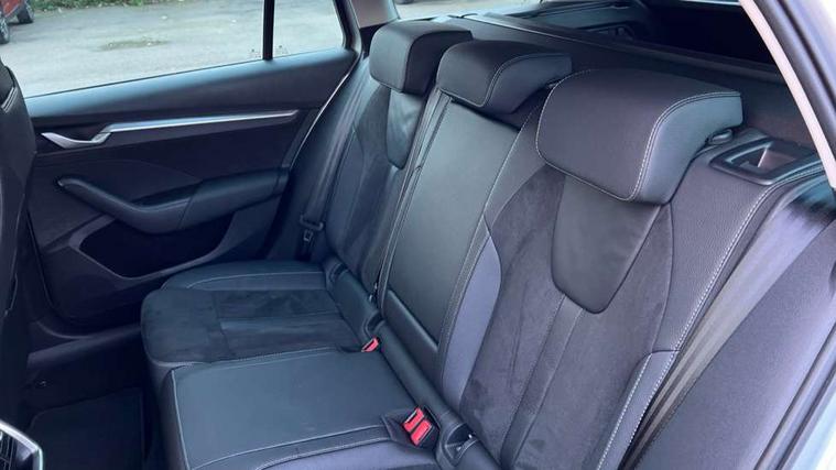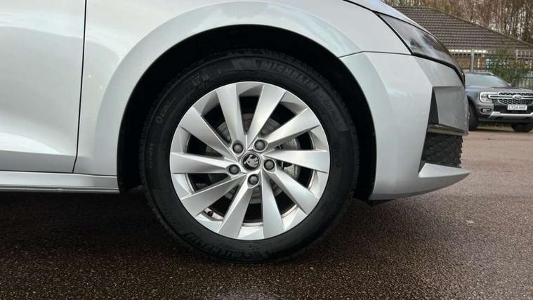 1x USB Typc C port in rear view mirror, 4x USB Type C ports - 2x in front centre console and 2x in rear (45W), Drive mode selection, Driver fatigue sensor, eCall emergency system, Electro-mechanical power steering, Front assist system, Traffic jam assist, Traffic sign recognition, Turn Assist, Virtual Cockpit - 10.25" digital display, Voice control system, Wireless charging (15W) with cooling function, Wireless SmartLink for Apple CarPlay and Android Auto, 13" touchscreen display with navigation, DAB Digital radio, Aero front windscreen wipers with intermittent function, Auto dimming rear view mirror, Body colour bumpers, Body colour door mirrors and handles, Chrome grille surround, Chrome roof rails, Chrome strip in lower front bumper, Chrome window surrounds, Electric front and rear windows, Heated rear windscreen, High level third brake light, Ice scraper in fuel cap, LED daytime running lights, LED Headlights, Logo projection in front doors, Rain and light sensors, Rear fog light on one side, Rear privacy glass, Rear side wing doors, Rear spoiler, Rear window wiper, 12 volt socket in boot, 3 rear headrests, 3 seat bench in 2nd row, 4 foldable roof handles, Front head restraints, Heated front seats, Illuminated glovebox, Interior door handles in dark chrome, Jumbo Box storage, Luggage compartment lighting x2 lights, Mechanical rear seat release from boot, Single front passenger seat, Steering wheel in black leather with black stitching, Storage compartments in left and right of boot, Sun visors with mirrors, Sunglasses storage, Ticket holder, Umbrella in door panel, Unsplit rear bench seat, split folding backrest with centre armrest with cupholder, Comfort package - Octavia Estate, Simply clever package premium - Octavia, 3x3 point rear seat belts, Alarm with interior monitoring, tilt sensor and back up horn, Curtain airbags and front side airbags, Driver and front passenger airbags, Drivers knee airbag, Electronic parking brake, ESC including ABS, EBV, MSR, ASR, EDS, HBA, DSR, Front central airbag, Hill hold assist, ISOFIX on front passenger seat and outer rear seats, Passenger airbag deactivate switch, Three point seat belts in front and rear, Two tone horn, Tyre pressure monitor, Visual and acoustic seat belt reminder, Warning reflectors in front door, Anti-theft wheel bolts, Keyless start/stop, Remote central locking, Chrome air vent surrounds,