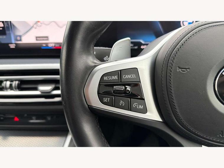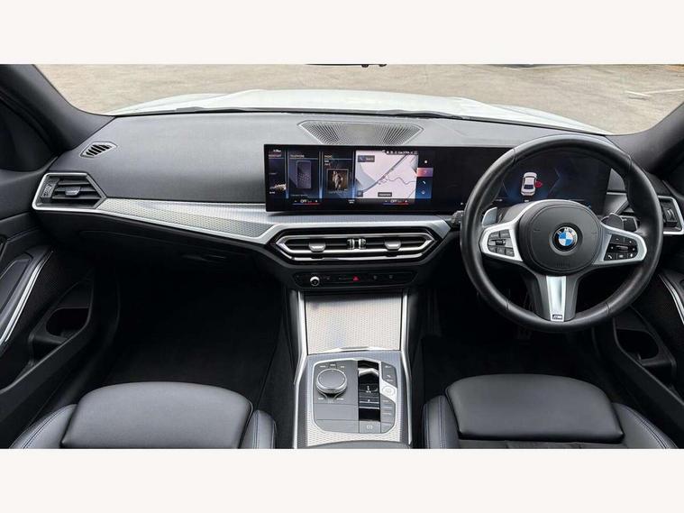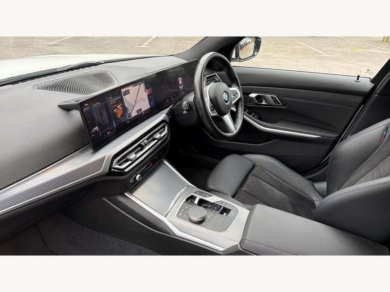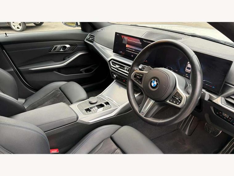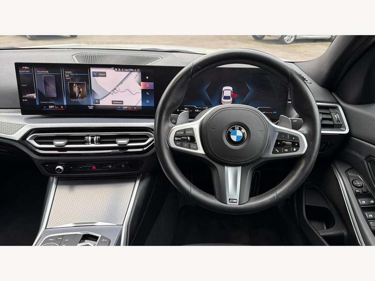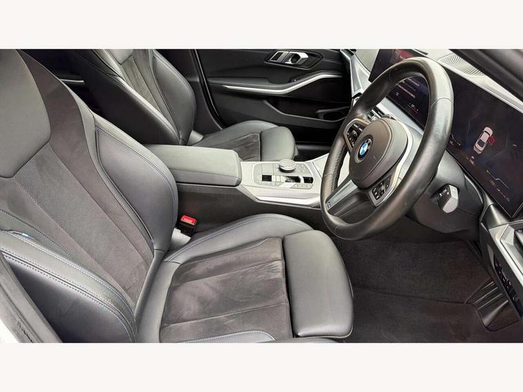 Active guard plus, Attentiveness assist, Automatic Start/stop button, BMW iDrive, BMW Teleservices, Condition based service, ConnectedDrive Services, Driving experience switch, Live cockpit plus with Navigation + 12.3" instrument display + 14.9" display, Intelligent voice assist, 2 USB, 4G LTE connect, Oil sensor for level and grade, Preparation for driver assistance, Shifting point display, Variable sport steering, Double joint spring strut front axle, Fuel tank breather system, M sport suspension, Sport automatic transmission with steering-wheel mounted gearshift paddles and launch control, DAB tuner, 3rd brake light, Acoustic glazing, Automatic headlight beam throw control with load dependent regulating reaction, dynamic compensation of braking dive and acceleration squat, BMW emblem, engine compartment lid and tailgate, Body colour roof fin, Door sill strips, Electric windows - front and rear, with open/close fingertip control, anti-trap facility and comfort closing, Follow me home headlight function, Front and rear bumper system with replaceable deformation elements, Front apron plastic in body colour, Fuel filler flap - right rear in body colour, Heated washer jets, High gloss shadow line exterior trim, Illuminated bow type door handles in body colour drivers side with door lock, Interior rear view electrochromatic mirror with automatic anti dazzle function, LED headlights with LED daytime running lights and LED turn indicator, LED rear lights, Licence plate panel integrated into front bumper and tailgate, Matt black B-pillar finsher, Matt black window recess cover, Model designation on right side of tailgate, One piece front bumper cover including towing eye cover in body colour, Rain sensor with automatic headlight activation, Rear boot, Rear side wing doors, Reversing lights, Side frame decorative moulding black matt, Visible exhaust tailpipe finisher, Welcome lights in interior and door handle area, 12V power socket in front storage compartment, 2 front cupholder in centre console with clamping elements and matt black inlay, 3 seat bench in 2nd row, 3 zone automatic air conditioning, 40:20:40 split folding rear seat with loading system, Ambient inside door handle light, Ambient light design projected onto the left and right entering and exiting area, Ambient lighting front and rear with 9 selectable colours, Ambient storage compartment lighting in the centre console, Anthracite headlining, Armrest integrated in front and rear door trim + front centre console armrest, BMW ID, Contour lighting in instrument panel and door trim panel, Cruise control operation in steering wheel, Driver backrest width adjustment, Folding rear centre armrest with 2 cupholders, Front and rear ambient footwell lighting, Front and rear door exit lighting (left / right), Front and rear headrests, Front and rear reading lights, Front and rear velour floor mats, Front sport seats, Heated front seats, Height adjustable mechanically and infinitely variable steering column, Illuminated armrest storage compartment, Illuminated glove compartment, Illuminated luggage compartment, Lashing eyelets in luggage compartment, M Sport multifunction leather steering wheel, Make-up mirror lights, Single front passenger seat, Standard seat for driver and passenger with manual adjustment, Sunvisors with vanity mirrors and ticket pocket, Toolkit located in luggage compartment, Connected pack professional - 3 Series Saloon/Touring, Interior and exterior mirror pack - 3 Series Touring/Saloon, M Aerodynamics package - 3 Series Saloon/Touring, M sport exterior styling pack - 3 Series Saloon/Touring, Storage compartment pack - 3 Series Saloon/Touring, 3x3 point rear seatbelts, BMW emergency call, Child locks on rear doors, Crash sensor activating of airbags, Unlocking doors, hazard warning lights, interior light, safety battery terminal, Driver and front passenger with seat occupancy detection for driver's and passenger side, Driver and passenger side airbags, body protection at side and airbags deploy from seat backrests, Dynamic brake control, Dynamic stability control + (DSC+) - Anti-lock Braking System (ABS) with brake assist and cornering brake control + Automatic Stability Control (ASC), Dynamic Traction Control - DTC, Electric parking brake including automatic hold function and automatic release of the parking brake when driving off, Electronic differential lock control (EDLC), Head airbags in 1st and 2nd row, head protection at side, curtain airbags open from headliner above 1st and 2nd row, Plastic fuel tank, Side impact protection, Tyre pressure monitoring with three level warning strategy, Ventilated front and rear disc brakes, Warning triangle and first aid kit, Alarm system, Centre lock switch, Closing system with central locking, Electronic vehicle immobiliser,