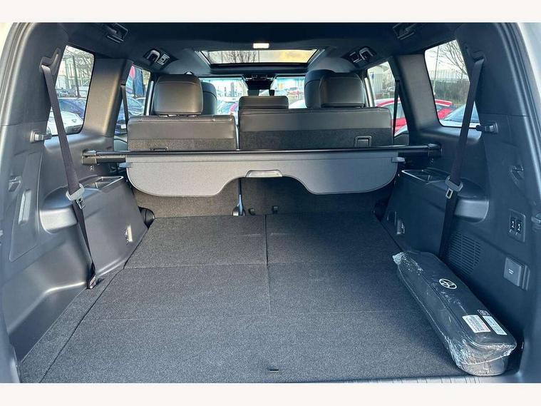 12.3" multi-information multimedia colour display screen, 3 Mode integrated sport driving, 360 degree panoramic view monitor, Blind spot monitor, Bluetooth telephone connectivity, Coloured head up display, Crawl control, Cruise control switch on steering wheel, Digital speedometer, Digital tachometer, Driver monitoring camera, Dynamic guide lines on reversing camera, ECO-driving indicator, Electric power steering, Emergency driving stop system, Emergency services call system, Front Cross Traffic Alert, Front parking sensors with automatic braking (object, vehicle and pedestrian), Front USB-C connectors x 2, HDMI connector, Intelligent adaptive cruise control, Lane change assist, Lane Departure Alert (LDA) switch on steering wheel, Lane departure alert (LDA) with Brake induced steering, Lane trace assist, Multi terrain monitor, Multi-info switches on steering wheel, Pre-collision system (PCS), Reversing camera with washer function, Road sign assist - RSA, Safe exit assist, Speed limiter information, Speed limiter switch on steering wheel, Tailgate/bootlid remote release from key, Touch 2 Go navigation system, Toyota Smart Connect multimedia system with wireless Smartphone integration incl Apple CarPlay, Trip computer, Wireless Mobile Phone Charger, 80 litre fuel tank, Multi terrain select, Rear electrical Diff Lock, Stabiliser disconnect mechanism (SDM), Vehicle Stability Control (VSC), Auxiliary input socket, DAB Digital radio, JBL Premium sound system with 14 speakers, Steering wheel mounted audio/telephone controls, USB connection, Adaptive high beam, Anti-jam protection on power windows, Auto and easy close back door, Auto headlights, Auto up and down function on all power windows, Auto wipers, Automatic headlamp levelling, Automatic headlights cut-off, Automatic high beam - AHB, Automatic rear flashing hazard lights, Black door moulding, Black insert on boot door, Black roof rails, Black side steps, Black tape door window frame, Body colour door handles, Body coloured bumpers, Body coloured door mirrors, Body coloured protection moulding on side doors, Digital rear view mirror, Dusk sensor, Electric heated door mirrors, Electrically retractable door mirrors, Emergency brake-light signal (EBS), Follow me home headlights, Front and rear mud flaps, Front electric windows, Fuel tank protector, Grained and painted front bumper, Grained rear bumper, Green UV cut front side glass, Headlight cleaners, Indicators integrated on door mirrors, Intermittent windscreen wipers, Land Cruiser insert in headlamps, LED daytime running lights, LED front fog lights, LED High mounted stop light, LED Indicators, LED projector headlights, LED rear combination lights, LED rear fog lights, LED rear lights, Luggage utility rail, Matte grey lower front grille protection, Matte grey upper front grille, Memory function on door mirrors, Noise reduction layer on windscreen, Panoramic roof, Power adjustable door mirrors, Power back door, Power roof opening, Privacy glass, Puddle lamps, Rain sensor, Rear electric windows, Rear intermittent wipers, Rear privacy glass, Rear side wing doors, Rear spoiler, Rear tailgate with opening window, Rear window defogger, Rear window wiper, Shade band to windscreen, Shark fin antenna, Trailer sway control, Trailer wiring harness, UV-filter on rear windows, Windscreen wiper blade with cover, 12v power socket rear passenger 2nd row, 12v socket in front, 220v power socket in boot, 2nd row rear passenger personal lights, 2x Rear coat hooks, 3 spoke leather steering wheel, 3rd row rear passenger room light, 4 adjustable rear headrests, 50/50 split/folding 2 rear seat in 3rd row, 60/40 split folding 3 rear seats in 2nd row, Accelerator pedal, Ashtray, Assist grips - Centre pillar, Assist grips - Front, Assist grips - Front pillar, Assist grips - Rear, Cargo area room lights x 2, Cooler in centre console box, Courtesy light delay, Door courtesy light, Driver and front passenger air ventilated seats, Driver and front passenger personal light, Driver and front passenger Whiplash Injury Lessening seats, Driver and passenger seatback pockets, Driver's electric lumbar adjustment, Driver's seat memory, Dual zone automatic air conditioning, Electric height adjustable sliding and reclining driver seat, Electric height adjustable sliding and reclining front passenger seats, Electric tilt/telescopic steering wheel, Front and rear bottle holders, Front and rear cup holders, Front and rear door pockets, Front foot well lighting, Gear shift indicator, Heated driver and front passenger seats, Heated rear seats, Heated steering wheel, Heater, Height adjustable front head restraints, Illuminated door pockets, Illuminated entry system, ISOFIX child restraint system, Leather centre armrest, Leather door trim, Leather gearshift, Leather handbrake, Leather upholstery, LED centre room light, Light on driver sun visor, Light on passenger sun visor, Lockable glovebox with illumination, Manually extendable cushion on driver seat, Memory function on steering wheel, Microphone on front personal light, Mirror on driver sun visor, Mirror on passenger sun visor, Multimedia switches on steering wheel, Overhead console storage, Pollen air filter, Power tilting cushion on driver seat, Rear armrest with cupholder, Rear passenger air vents, Rear passengers air ventilated seats, Reclining 2nd row rear seats, Reclining 3rd row rear seats, Remote air conditioning system, Retractable tonneau cover, Silver interior door handles, Single front passenger seat, Sliding 2nd Row rear seats, Sliding 3rd row rear seats, Soft-touch centre console, Soft-touch front door armrests, Soft-touch knee pads, Sunglasses holder, Three zone rear passenger air conditioning, Ticket holder on driver sun visor, Titanium effect insert on dashboard, Voice recognition switch on steering wheel, Rough road pack - Land cruiser, 3x3 point rear seatbelts, Active Traction Control (A-TRC), Anti-lock braking system (ABS), Brake assist function, Child safety do