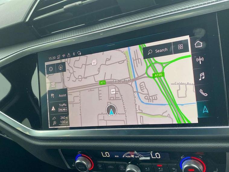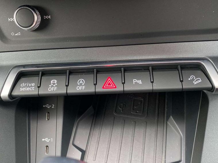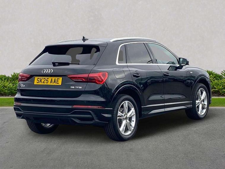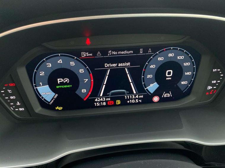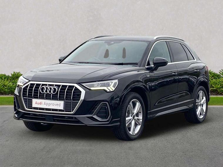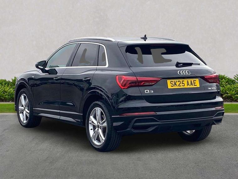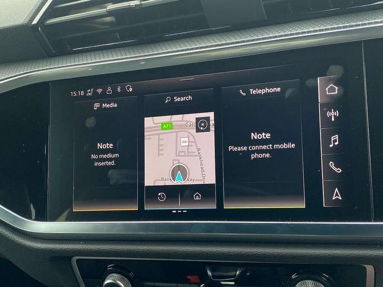 Amazon alexa Integration, Audi connect safety and service, Audi drive select, Audi lane departure warning, Audi Virtual Cockpit - 10.25" display, Bluetooth interface, Camera based traffic sign recognition, Distraction and Fatigue warning, Legal emergency call, MMI Navigation Plus with high resolution 10.1 inch touchscreen colour display, Power operated tailgate, Progressive steering, Service interval indicator, Smartphone interface includes wireless Apple carplay/Android Auto, Start stop system with recuperation, Voice control system with natural language interaction, Sports suspension, 2 USB-C ports with charge and data functions, 6 passive loudspeakers, DAB digital radio module, Acoustic windscreen, Aluminium roof rails, Aluminium window trim, Anthracite black radiator grille, Auto dimming door mirrors, Auto dimming frameless rear view mirror, Body colour front spoiler blade, Electrically folding, adjustable and heated door mirrors with integrated LED side indicators and kerb view function for passenger side, Front and rear electric windows, Front fog lights, Front side air inlets in matt platinum grey, Grille vertical bars in aluminium silver/Matt, High gloss black finish B and C pillars, LED Dynamic rear indicators, LED headlights with LED daytime running lights, LED rear lights, LED third brake light, Privacy glass dark tinted rear and rear-side windows (from B-pillar backwards), Rain and light sensors, Rear diffuser grille in grained matt black, Rear diffuser strip in matt anthracite black, Rear side wing doors, Rear wiper, S line badges on front wings, S line front and rear bumpers and side skirts in contrasting Manhattan grey paint finish, Side skirt insert in matt Platinium grey, Variable front intermittent wipers, 12V socket in rear centre console, 3 seat bench in 2nd row, 3 spoke leather multifunction steering wheel features S badging and grips in perforated leather with contrast stitching, 40:20:40 folding with manual adjustment for 60:40 forwards/backwards position and backrest angle, Adjustable rear seat bench/backrest with centre armrest and cupholder, Black cloth headlining, Dual zone electronic climate control, Electric lumbar support, Front and rear black floor mats with contrast stitching in rock grey, Front and rear headrests, Front centre armrest, Height and reach adjustable steering wheel, Illuminated door sill trims with S logo, ISOFIX child seat mounting for front passenger with airbag deactivation and outer rear seat including top tether attachment point for outer rear seats, Manual front seats with height adjustment, Perforated leather gearknob, Single front passenger seat, Stainless steel luggage compartment sill finisher, Stainless steel pedals, Twin leather upholstery with front sport seats + S embossing, Non smoking pack - Q3, 3x3 point rear seatbelts, 6 airbags - Driver, front passenger, curtain and side windows, Audi pre-sense front with pedestrain and cyclist recognition, Electrically operated child locks on rear doors, Electromechanical parking brake, Electronic stabilisation control including ABS, ASR and EDL, Front seatbelt reminder, Hill descent control, Hill hold assist, Pre sense basic, Seatbelt monitoring, Tyre pressure warning, Warning triangle and first aid kit, Anti theft wheel bolts, Immobiliser, Remote central locking, Thatcham approved category 1 anti theft alarm, Aluminium look interior elements, Dark matt brushed aluminium inlay, Detail dashboard around MMI touch colour display in glass look, black with surround in aluminium look, Leatherette door armrest,