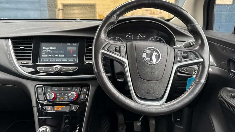 Cruise control + speed limiter, Digital clock, Lights on audible warning, Multi function trip computer, Outside temperature display, Speed sensitive power steering, 6 speakers, Bluetooth connectivity including audio streaming, DAB radio preparation, R4 IntelliLink with 7" touch screen, USB/iPod connection, 2 speed wipers/wash wipe/intermittent wipe, Automatic lighting control, Black door mirrors, Body colour door handles, Body colour side mouldings, Chrome side window trim, Electric front+rear windows, Electrically adjustable and heated door mirrors, Front fog lights, Front skid plate, Heated rear window, LED daytime running lights, Silver roof rails, Stainless steel exhaust tailpipe, 18 way adjustable front seats, 3 spoke steering wheel, 60/40 split folding rear seat, Centre rear head restraint, Chrome interior door handles, Dual zone electronic climate control, Folding luggage compartment cover, Front centre armrest, Front door pockets, Front passenger underseat storage tray, Front seat back storage pockets, Front/rear courtesy lights, Height adjustable front/rear head restraints, Illuminated glovebox, Illuminated luggage compartment, Illuminated vanity mirrors, ISOFIX on outer rear seats, Jasmin leather seat trim, Multi function steering wheel, Reach + rake adjustable steering column, Rear cupholders, Rear seat centre armrest, Sight and light pack - Mokka X, Winter pack - Mokka, 3x3 point rear seatbelts, ABS, Curtain airbags, Descent control system, Driver/Front Passenger airbags, Emergency brake assist, ESP, Front seat side impact airbags, Hill start assist, Seatbelt warning, Traction control, Tyre pressure monitoring system, Immobiliser, Remote central locking, Remote security alarm system,