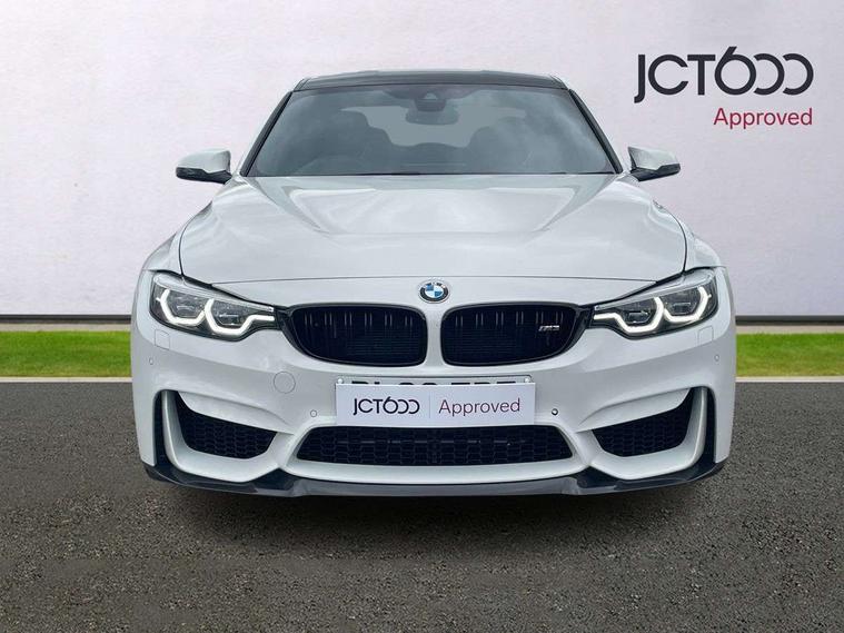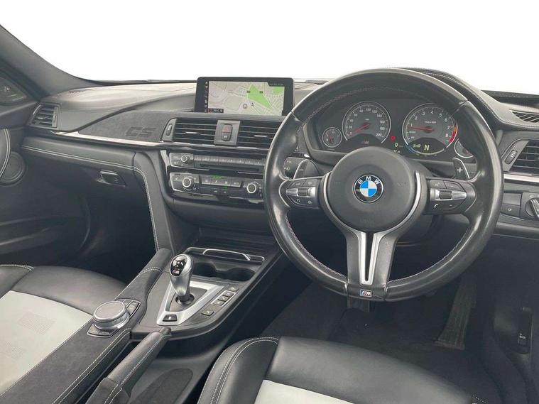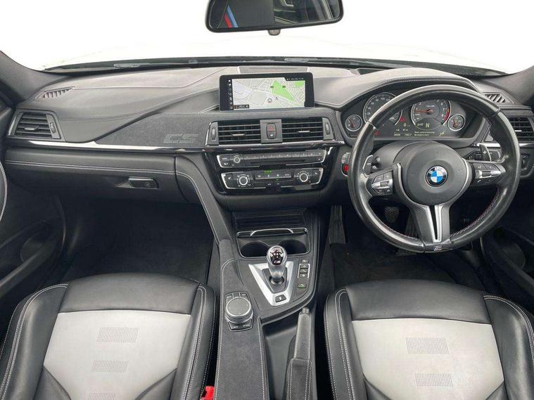 Brake pad wear indicator warning light, Cruise control, Door/boot open warning light, Electric Power Steering (EPS) with Servotronic, Enhanced bluetooth with wireless charging, Front/rear park distance control, Lights on warning, Oil temperature gauge, On board computer, On board diagnostics, Outside temperature display, Service interval indicator, Stop/start button, Tyre puncture warning system, Voice control system, Wifi hotspot preparation, Adaptive M suspension, Drive Performance Control, M differential lock, Sport exhaust system, BMW professional radio/CD/MP3, DAB Digital radio, Harman/Kardon logic 7 surround sound system, USB/aux input socket, Adaptive LED Headlights, Adjustable intermittent wipers, Auto dimming driver's door mirror, Auto dimming rear view mirror, Black kidney grille with chrome surround, Body colour bumpers, Body colour door handles, Body colour door mirrors, Carbon fibre front splitter, Carbon fibre rear boot lip spoiler, Carbon fibre rear diffuser, Carbon fibre roof, Door mirror integrated indicators, Door sill finishers, Dynamic brake lights, Electric adjustable heated door mirrors, Electric folding door mirrors, Electric front and rear windows with one touch/convenient open/close function, Follow me home headlights, Green tinted heat insulating glass, Headlight washers, Heated rear window with automatic switch off, Heated windscreen washer jets, High beam assistant, High gloss shadow line, LED daytime running lights, OLED rear lights, Rain sensor + automatic driving lights control, Shark fin roof aerial, Titanium quad exhaust tailpipe finisher, 12V sockets in front centre console and passenger footwell, 2 cupholders in front centre console, 3 rear seat head restraints, 4 boot load lashing points, 4 foldable grab handles - rear with clothes hook, 60/40 split folding rear seat, Adjustable lumbar support, Automatic air conditioning, Black nappa leather handbrake lever + alcanatra anthracite gaiter, Driver/passenger sunvisors with illuminated vanity mirrors + covers, Electric front seats + driver memory, Folding front centre armrest + storage, Front door storage bins with bottle holder, Front interior light, Front isofix attachment + airbag deactivation, Front sliding armrest, Front/rear door armrests, Full bicolour Merino leather upholstery, Gearshift paddles, Heated front seats, Height adjustable front headrests, Individual anthracite headlining, Integrated rear head restraints, Isofix on 2nd row outer seats, Leather gear knob, Lockable/illuminated glovebox, Luggage compartment lighting, M Sports seats, Multi-function controls for steering wheel, Rake/reach adjustable steering wheel, Rear storage compartment in multifunction centre console with sliding cover, Storage compartment in rear doors, Toolkit located in luggage compartment, Velour floormats, Extended lights package - M3/M4 DTM/CS, Extended storage pack - M3/M4 CS/DTM, Media pack - Professional - M3, Non Smokers pack, 3 point seatbelts on all seats, ABS/EBD, Automatic Stability Control (ASC), Cornering brake control (CBC), Crash sensor, Driver/Front Passenger airbags, Dynamic brake control, Dynamic Stability Control with M Dynamic mode, Dynamic Traction Control - DTC, ESP, Front and rear head airbags, Front passenger airbag deactivation, Front seat side impact airbags, Front seatbelt pretensioners + load limiters, Hill start assist, M sport seatbelt, Rear child proof door locks, Seatbelt warning, Warning triangle and first aid kit, Automatic drive away locking facility, Electronic immobiliser, Keyless Start, Remote central locking, Thatcham cat 1 remote alarm, Air vents in bodycolour, Anthracite alcantara interior trim with black chrome finish, Instrument panel lower section in Merino leather, Instrument panel upper section in Nappa leather, Nappa leather upper door trim panel, Rear air vents in pearl chrome surround, M mobility system (flat-tyre repair system),