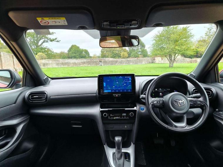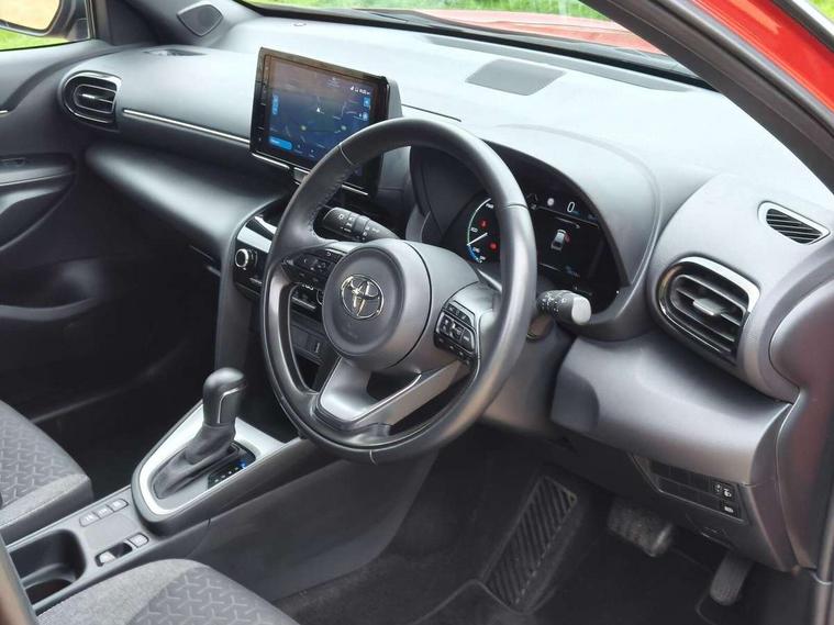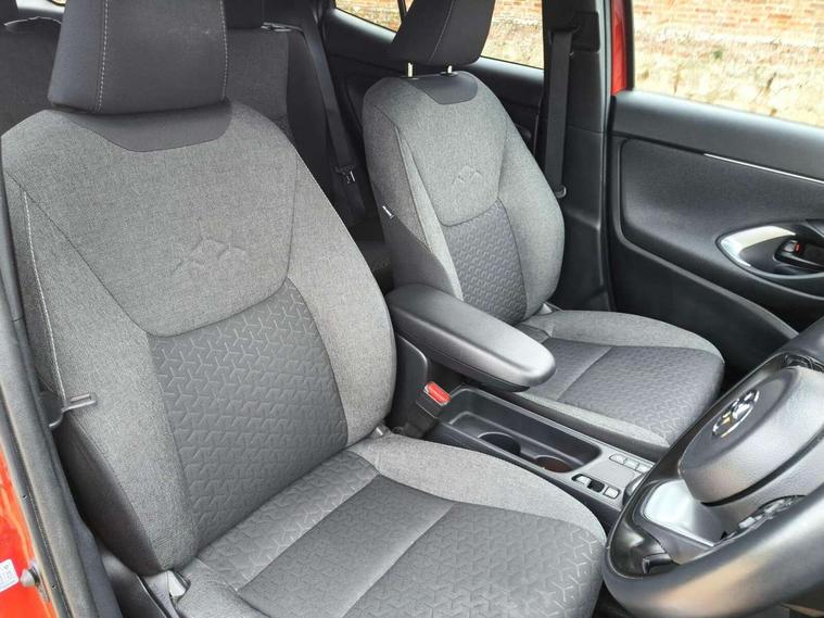 7" Multi information display screen, 8" Toyota touch 2 multimedia system with Smartphone integration with Apple CarPlay and Android auto, Adjustable speed limiter, Bluetooth connectivity, Driver attention alert system, eCall emergency system, Electric power steering, Full range intelligent adaptive cruise control, Hybrid system indicator, Key reminder warning, Lane trace assist, Multimedia, audio, telephone and voice recognition switches on steering wheel, My T Connected services, Pre-collision system enhanced with emergency steering assist, Reversing camera, Road sign assist - RSA, Steering assisted vehicle stability control, 6 speakers, DAB Digital radio, USB connection, 3rd brake light, Acoustic windscreen glass, Aluminium roof rails, Anti-jam protection on power windows, Auto high beam [AHB] with on/off switch, Automatic headlights, Black lower front grille, Black Shark-fin antenna, Black upper front grille, Black wheel arch mouldings, Body colour door handles, Body colour front bumper, Body colour rear bumper, Electric adjustable heated door mirrors, Follow me home headlights, Front and rear electric windows with auto up/down function, Front intermittent wipers, Headlight cut off reminder, Indicators integrated on door mirrors, Intermittent rear wiper, LED daytime running lights guide, LED front fog lights, LED front light guide, LED Indicators, LED projector headlights, LED rear light guide, Manual headlight levelling, Manually retractable door mirrors, Noise reduction layer on windscreen, Privacy glass, Rain sensor, Rear LED lights with sequential indicators, Rear side wing doors, Rear spoiler, Rear window defogger, 12v power outlet - front, 2x Rear coat hooks, 3 seat bench in 2nd row, 3 spoke leather steering wheel, 40:20:40 split folding rear bench seat, Adjustable speed limiter switch on steering wheel, Auto air conditioning, Black roof lining, Boot light, Central armrest, Centre console in light blue ambent lighting, Driver and front passenger personal lights, Fabric door trim, Fabric upholstery, Footwell in light blue ambient lighting, Front console box, Front cup holders, Front head restraints, Glovebox, Height adjustable driver's seat, Height adjustable front passenger seat, Hooks for luggage holding belts, ISOFIX child restraint system, Lane departure alert switch on steering control, Leather gearshift, Light blue ambient lighting on front doors, Manual telescopic and tilting steering wheel, Mirror on driver and passenger sun visor, Pollen air filter, Rear cup holders, Rear head restraints, Single front passenger seat, Soft tonneau cover, 3x3 point rear seat belts, ABS+EBD+Brake assist, Driver and passenger central airbags, Driver and passenger front airbags, Driver and passenger side airbags, Electronic parking brake, Emergency brake light system (EBS), Front seat belt reminder, Hill start assist control (HAC), Passenger airbag on/off switch, Pre-collision system with pedestrian and cyclist detection, Rear door child safety locks, Rear passenger side airbags, Rear seat belt reminder, Traction control, Tyre pressure warning system, Immobiliser, Intrusion alarm, Keyless smart entry with push button start, Power door locks, Power passenger window lock, Remote door lock, Tyre repair kit,