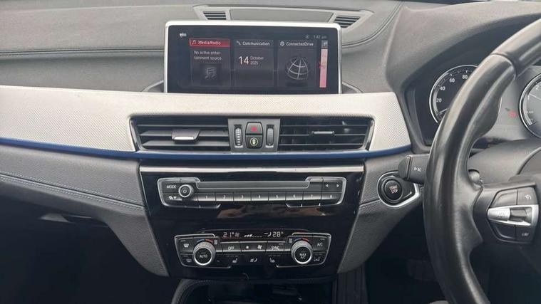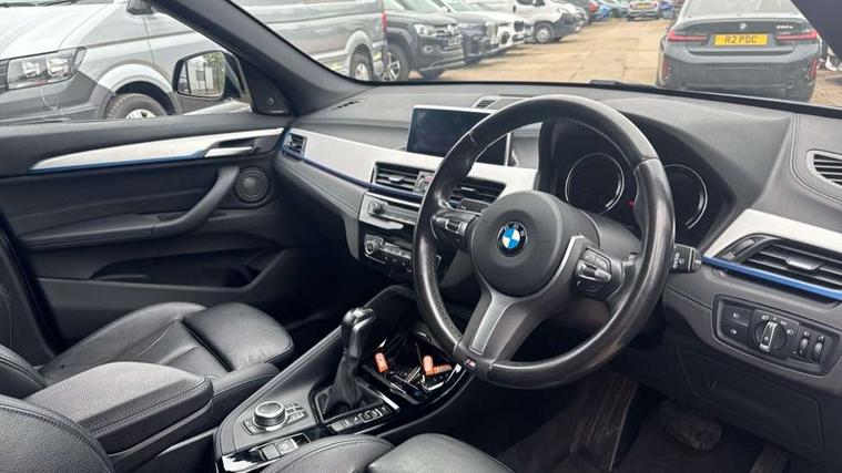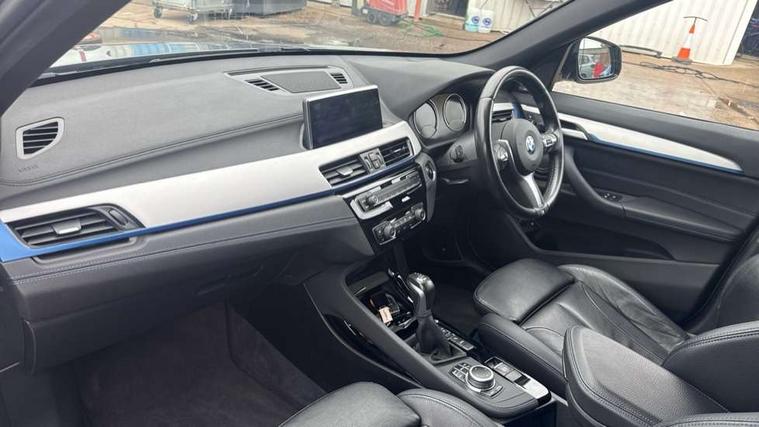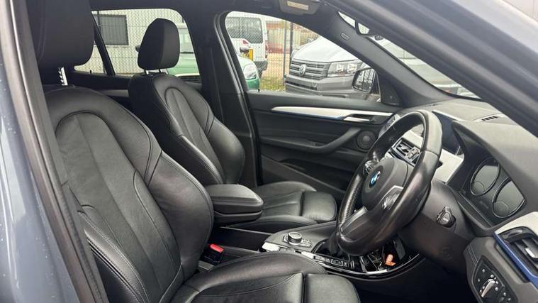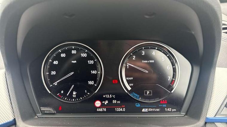 Ambient temperature display, Apple CarPlay, Arrow pointers, north up, direction of travel and perspective map displays, Attentiveness assist, Automatic tailgate opening, BMW Navigation system with 8.8" monitor and 800X480 pixel resolution, BMW Online services, BMW Teleservices, Brake pad wear indicator in front and rear, Characteristic map controlled oil pump system, Connected eDrive Services, eDrive button activates auto eDrive, max eDrive and save battery modes, eDrive specific displays in instrument cluster and CID, Electro hydraulically controlled multi plate clutch in rear axle, Energy efficient operating strategy, Front/rear park distance control (PDC), Instrument cluster with speedometer with miles per hour read out, tachometer and fuel gauge, Integrated hard drive with map data updates via USB interface, Lights on warning by audio warning signal when ignition is switched off, On board computer, Optimum shift indicator, Outside temperature gauge, Park assist system, Personal Profile - automatic lock when driving away selectable, Real time traffic information, Rigidly mounted rear subframe - Multi link construction with separate spring / damper configuration and excellent driving characteristics, Service interval indicator, Servotronic PAS, Tyre puncture warning system, Variable and stepless distribution of drive torque between front and rear axle, 12V compressor with integrated sealant injection bottle and hose, 5 metre standard charge cable, 6 speed automatic transmission, AC Fast charge cable, Aluminium lightweight construction including crankcase, Anti-roll bars, Balancer shaft, Double VANOS, Drive performance control with ECO PRO comfort + sport mode, eDrive exterior sound, Electric engine installed under rear seats driving the rear wheels, High precision injection, Lithium-ion high voltage battery (10.0 kWh) fitted under rear seats, Performance Control, Standard suspension, Stop/start function, Transmission of power to rear axle via front axle differential and two-part cardan shaft, Turbocharger with Valvetronic, Twin tube gas filled shock absorbers with degressive characteristic curve, xDrive electric drive, after activation of the electric motor and common drive via all four wheels, DAB Digital radio, Adjustable headlights, Aero curtain, Automatically dimming rear view mirror, BMW Icon design LED daytime driving lights, Body colour bumpers, Body colour door handles, Body colour door mirrors, Body colour wheel arches and side sills, Direction indicator side lights integrated exterior mirrors, Dynamic brake lights, Electric windows - front and rear, with open/close fingertip control, anti-trap facility and comfort closing, Electrically adjustable door mirrors with aspheric on driver side, convex on passenger side with integrated indicators, Exterior mirrors - electrically folding with anti-dazzle, Follow me home headlights, Front air guide finished in black silver, Front air inlets in matt black with silver finisher matt, Front and rear bumper system, Front bumper air intakes with dark shadow finisher, Green tinted heat protection glazing glass, Headlight beam throw control, Heated door mirrors, Heated windscreen washer jets, High level third brake light, Kidney grille with 14 chrome high gloss black vertical bars, LED direction indicator lights in headlight eyebrow, LED front fog lights, Lightweight engineering, M aerodynamic body styling, M logo designation in side chrome, Model designation, Rain sensor including auto headlights activation, Rear bumper with dark shadow and underbody protection in body colour, Rear fog lights, Rear window aerial, Rear window wash/wipe, Reversing light in rear light cluster, Roof mouldings in matt black, Shark fin antenna, Sill cover matt black with matt silver insert, Single chrome exhaust tailpipe, Two eye face design on light, Visible VIN plate, Welcome lighting, 12v power point in centre console, 2 cup holders in front, 3 rear headrests, 40:20:40 split folding rear bench seat, Anthracite floor mats with M specific designation, Anthracite headlining, Boot light, Centre armrest in 20 degree part rear seat backrest, Child seat ISOFIX attachment for two outer rear seats and front passenger seat with anchorage points, Conditioned based service, Dakota leather upholstery with perforation and contrast stitching, Driver and front passenger heated seats, Driver/front passenger seat backrest back with luggage net, Driver/passenger sunvisors with ticket holders, Dual zone automatic air conditioning, Four grab handles integrated in roof linings, Front and rear side armrests integrated into door trim, Front centre armrest/sliding cover, Front centre interior light over interior mirror and rear centre automatic interior light when door is opened/ignition switched off or via remote key, Front door sill finishers with M designation, Front sports seats, Front/rear adjustable head restraints, Illuminated charging socket with visual display of charge status, Illuminated glovebox, Leather gearknob/gaiter/handbrake grip, Luggage area underfloor compartment, Luggage compartment access via recessed handle below tailgate, Luggage compartment lighting, Luggage compartment loading edge with stainless steel insert, M Sport nappa leather 3-spoke steering wheel, Manually adjustment steering wheel column, Multifunction steering wheel, Pre-conditioning of battery for optimum operating temperature, Pre-conditioning of interior via BMW Remote app, Rear coded belt buckles, Standing free front adjustable armrest and fixed in different positions, Steering wheel gearshift paddles, Extended lights pack - X1, Extended storage package - X1, ABS/EBD, Audio/visual collision warning system, Automatic Stability Control (ASC), Battery safety cut-off, BMW emergency call, Brake drying, Brake energy regeneration, Braking readiness, Cornering brake control (CBC), Crash Sensor - activates hazard/interior lighting + unlocks doors, Driver/Front Passenger airbags, Driver/front passenger sid