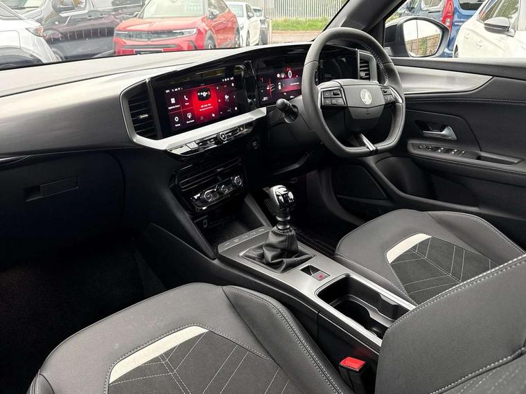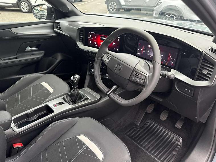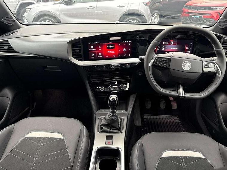 10" digital instrument cluster, Active drive assist, Adaptive cruise control, Digital instrumentation with digital speedometer, rev counter, fuel and water temperature gauge, Driver attention alert, Driver drowsiness alert system, Driver information display with multi function trip computer, audio info, digital clock and outside air temperature with ice warning function, Front and rear parking distance sensors, Lane keep assist system (LAS) with Lane departure warning system (LDWS), Lights on audible warning, Panoramic rear view camera, Power assisted speed sensitive steering, RDS with traffic programme, Side blind spot alert and flank guard, Speech recognition, Speed sign recognition, Start/stop system, Vauxhall connect with e-Call, WiFi connectivity, Wireless phone projection with Apple CarPlay and Android Auto, Sports chassis, 2 rear USB connection, 6 speakers, AM/FM stereo radio with 36 station presets, DAB Digital radio, Front USB connection, Mobile phone portal - bluetooth connect, vehicle microphone, handsfree calls, SMS read out and reply, phone book access, Multimedia pure panel navigation system with 10" colour touchscreen and 15W wireless charger, Steering wheel mounted controls, Adaptive brake lights, Automatic headlamp levelling, Automatic high beam assist, Automatic lighting control with tunnel detection, Black DLO, Black door mirror housings, Black grained plastic door and wheel arch claddings, Black grained plastic front and rear bumper inserts, Black Griffin logo and vizor frame, Black lettering and emblems, Black upper window moulding, Body colour door handles, Body colour front and rear bumpers, Body colour skid plates, Dark tinted rear side windows, Electrically adjustable and heated door mirrors, Electrically foldable door mirrors, Electrically operated front and rear windows with safety auto reverse and one touch up/down facility, Electrochromatic frameless auto dimming rear view mirror, Hazard warning lights, Heated rear window+rear wash/wipe, Integrated black tailgate spoiler, IntelliLux matrix headlights with advanced forward lightning and anti glare beam, LED 3rd brake light, LED daytime running lights, LED side repeat indicators, LED tail lights, Rain sensitive windscreen wipers, Rear side wing doors, Reversing light, Shark fin antenna, Solar heat absorbing windscreen and windows, Windscreen and side window demist vents, 12V Accessory socket, 3 seat bench in 2nd row, 4 speed fan with illuminated controls, 4 way electrical driver lumbar adjustment, 6 way adjustable front passenger seat including height adjustment, 60/40 split folding rear seat, Air recirculation system, Ambient lighting, Black headliner, Cabin particulate filter - removes dust, airborne particles and pollen, Chrome effect interior door handles, Door pockets with two litre capacity, Driver and passenger heated seats, Driver and passenger sun visors with vanity mirror, Driver seat massage function, Electronic climate control (ECC), Four adjustable facia vents, Four load restraint lashing eyes, Front centre armrest with storage, Front driver and co-driver side articulated grab handles, Front head restraints, Front map reading lights, Front seat back storage pockets, Fully carpeted load area, Heated steering wheel, Interior courtesy light, Interior tailgate handle, Luggage compartment cover, Luggage compartment lighting, Moveable boot floor, Reach + rake adjustable steering column, Rear Reading Lamps, ReNewKnit fabric/leather upholstery, Single front passenger seat, Three height adjustable rear seat head restraints, Twin gas assisted tailgate struts, Vegan leather steering wheel, 2x Isofix child seat fitting on outer rear seats, 3x3 point rear seat belts, Anti-lock braking system (ABS), Child proof locks on rear doors, Cornering brake control, Deactivation switch for front passenger front and side impact airbags, Drag torque control, Driver and front passenger airbags, front seat side impact airbags, full size curtain airbags, Electronic brake force distribution, Electronic Stability Programme (ESP), Emergency brake assist, Enhanced automatic emergency braking with pedestrian and bicycle detection, Forward brake assist, Forward collision alert at all speed, Hill start assist, Inertia reel lap and diagonal seatbelts for all seats, Manual parking brake, Seatbelt unfastened audible warning and warning light, Straight line stability control, Traction control, Tyre pressure monitoring system, Electronically protected audio equipment, Engine deadlock immobiliser, Freewheeling door locks, Key left in ignition audible warning, Keyless entry and start, Locking wheel nuts, Remote control central locking, Remote control ultrasonic security alarm system, Visible vehicle identification number, Black facia with silver trim insert, Light grey trim inserts on front doors, Vegan door inserts, 18" Black diamond cut alloy wheels,