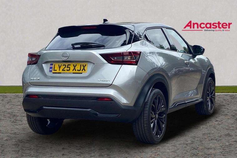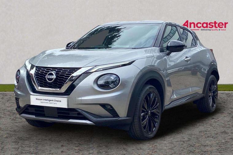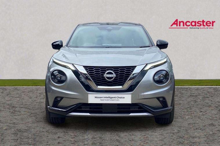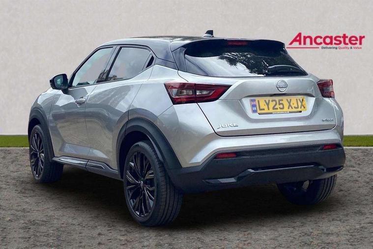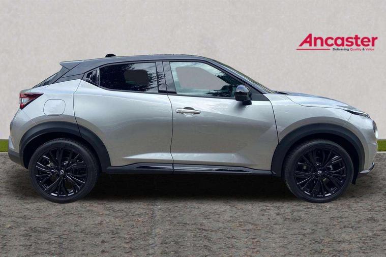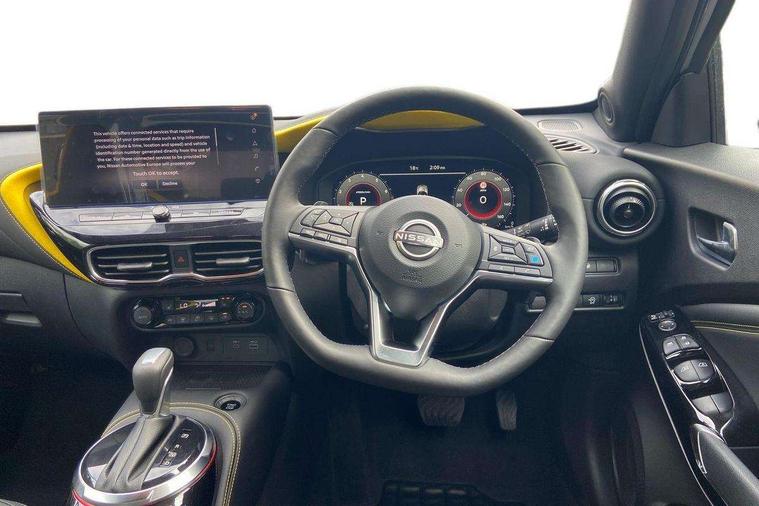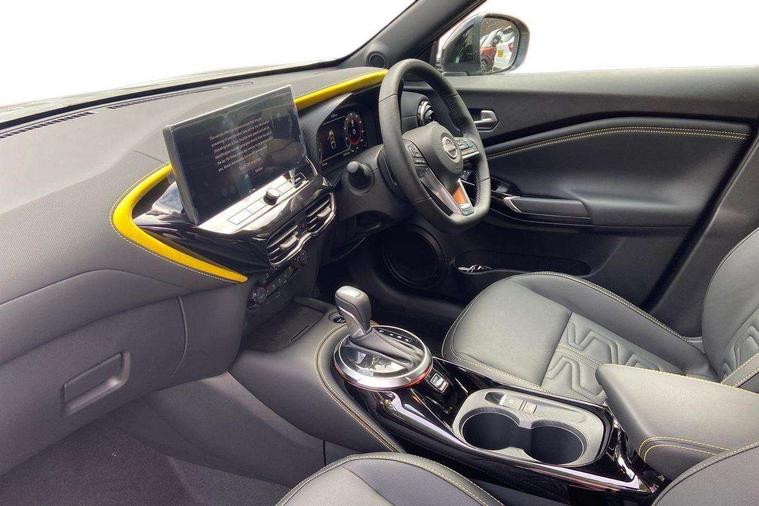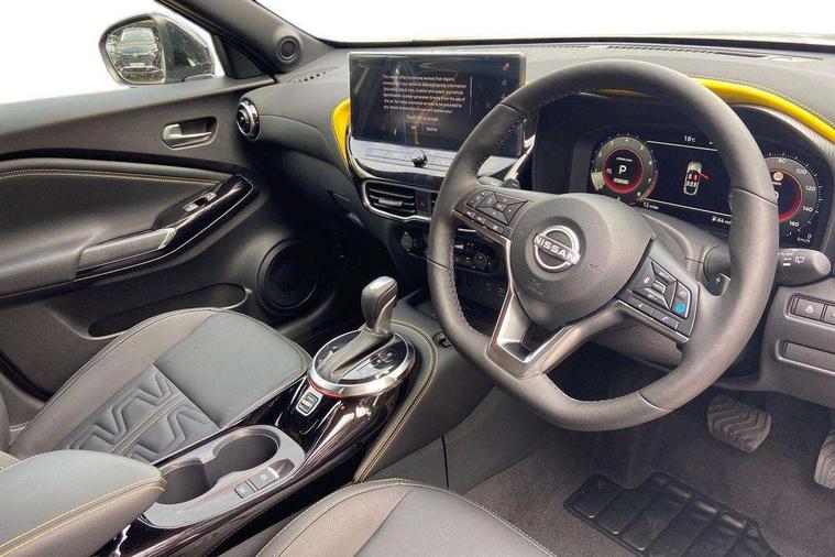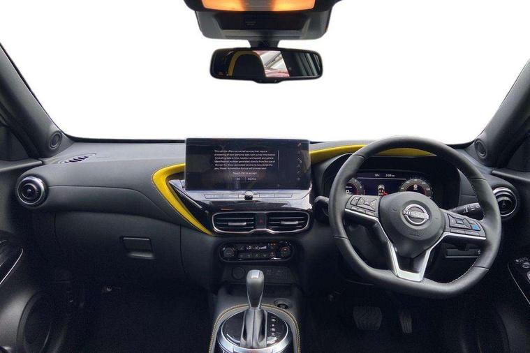 12.3" full colour TFT screen combimeter, Drive modes select (Eco, normal and sport), Emergency and breakdown call, Front parking sensor, Idle start/stop system, Intelligent driver alert system, Intelligent lane intervention, Lane departure warning system, Nissan connect 12.3" touch screen entertainment system, Nissan connect nav with TomTom traffic, Nissan connect services, Outside temperature sensor, Power Steering, Rear parking sensor, Stop/start button, Traffic sign recognition, Trip computer, Voice recognition, WiFi connectivity, Wireless Apple CarPlay and Google Android auto, Wireless Smartphone charger, 10 Bose speakers 8 speakers and 2 headrest speakers for driver/passenger seats, 2 X Rear console USB port, Bluetooth system, USB, Aux-in and 12V socket, Bose personal plus audio system, DAB Digital radio, Auto dimming frameless rear view mirror, Automatic hazard signal with emergency stop signal, Body colour door handles, Electrically adjustable door mirrors with integrated indicators, Follow me home headlights, Front and rear electric window with one touch driver window, High beam assist, LED 3rd brake light, LED daytime running lights, LED front fog lights, LED headlamps, LED rear fog lamp, LED rear lamps, One touch passenger window, Rear privacy glass, Rear side wing doors, Rear wiper, Roof spoiler, Shark fin roof antenna in solid Black, Solid black door mirrors, Three blink turn signal, 3 height adjustable rear headrests, 3 seat bench in 2nd row, 60/40 split folding rear seat, Card holder on driver sunvisor, Door ambient lighting, Driver seat back pocket, Driver side rear coat hanger, Driver/passenger sunvisors and vanity mirrors, Front and rear cabin lights, Front armrest, Front door pockets with bottle holders, Front head restraints, Front/rear passenger grab handles, Gear console ambient circle lighting, Height adjustable driver's seat, Internal chrome door handles, Luggage board, Luggage space lighting, Monoform sporty seats, Multifunction steering wheel, Passenger seat back pocket, Rear door bottle holders, Single front passenger seat, Smooth synthetic leather steering wheel, Steering wheel mounted gearshift paddles, Synthetic leather kneepad, Synthetic leather shift knob, Telescopic steering wheel adjustment, Two cupholders in front centre console, Two rear isofix child seat anchorage points with top tether, Welcome light and console tray ambient lighting, Comfort pack - Juke, Gloss black exterior personalisation pack - Juke, Heat pack with height adjustable passenger seats - Juke, Interior personalisation pack - Juke, ProPilot pack - Juke Auto, ABS with EBD and brake assist, Active ride control, Active Trace Control, Driver and passenger airbags, Driver and passenger side airbags, Electric handbrake with auto hold function, Electronic Stability Programme (ESP), Front and rear curtain airbags, Height adjustable seatbelts, Hill start assist, Intelligent emergency braking with pedestrian and cyclist recognition, Rear door child safety locks, Seatbelt reminder for driver/front passenger and rear seats, Three 3 point rear seatbelts, Traction control, Tyre pressure monitoring system, VDC Dynamic Vehicle Control, Alarm, Immobiliser, Intelligent key and start push button with walk away lock and approach unlock functions, Remote central locking, 19" Akari Black alloy wheels, Tyre puncture repair kit,
