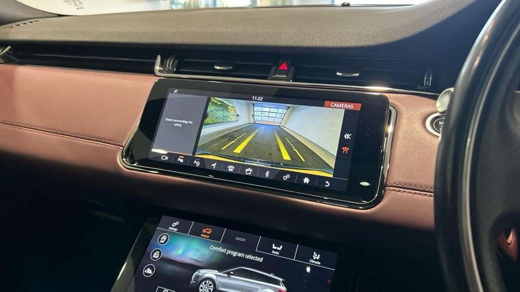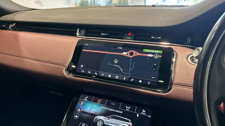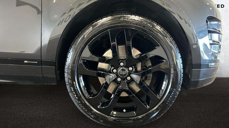 360 degree parking aid, Adaptive cruise control, Android Auto, Apple car play, Blind spot assist, Bluetooth connectivity, Brake pad wear indicator warning light, Clear exit monitor, Driver condition monitor, Duo touch pro, Electronic power assisted steering (EPAS), InControl remote, Interactive Driver display instrument cluster, Land Rover InControl apps, Lane keep assist, Navigation pro system, Park assist - Parallel, perpendicular and parking exit, Powered gesture tailgate/boot lid, Pro services and wifi hotspot, Push button starter, Rear traffic monitor, Smart settings, Traffic sign recognition with adaptive speed limiter, Voice control system, All terrain progress control, Efficient Driveline, Passive suspension, Terrain Response 2 Auto, Digital Audio Broadcast radio-DAB, Steering wheel mounted controls, Automatic headlight levelling, ClearSight interior rear view mirror, Electric windows with one touch open/close and anti trap, Evoque and R-Dynamic badge, Flush deployable exterior door handles, Heated rear window with timer, Heated washer jets, Heated windscreen, Power fold, auto-dimming, heated door mirrors with memory and approach lights, Rain sensing windscreen wipers, Rear fog lights, Shadow atlas bonnet and tailgate script, Tailgate spoiler, 40:20:40 split folding rear seats, Black gearshift paddles, Bright metal pedals, Isofix system on outer rear seats, Overhead lighting console, Overhead stowage for sunglasses, Passive front head restraints, Rear air vents, Rear centre headrest, Sunvisors with illuminated vanity mirrors, Twin front cupholders with cover, Twin sliding front centre armrest, Two zone climate control, Anti-lock braking system (ABS), Customer configurable autolock, DSC - Dynamic Stability Control, Electronic brake force distribution, Electronic parking brake, Electronic traction control, Front and rear seatbelt reminder, High speed emergency braking, Hill descent control, Hill launch assist, Low traction launch, Power operated child locks, Roll stability control, Six airbags - Driver and passenger airbags/driver knee airbag/front side airbag and curtain airbags, Torque vectoring brake, Tyre pressure monitoring system, Alarm, Immobiliser, Intrusion sensor, Keyless entry, Locking wheel nuts,
