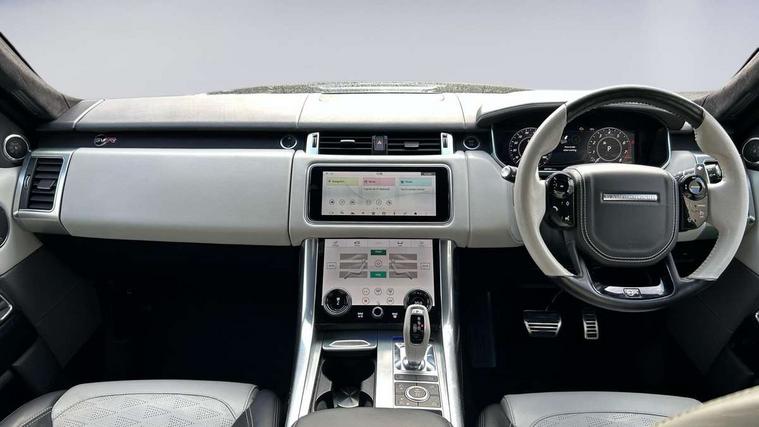 360 Parking aid, All Terrain Info Centre, Android Auto, Apple car play, Bluetooth connectivity, Clear exit monitor, Driver condition monitor, Electric power assisted steering (EPAS), Incontrol apps in vehicle touchscreen, Interactive Driver display instrument cluster, Mist sensor, Navigation pro system with 10" touch screen, app interface and media storage, Powered gesture tailgate/boot lid, Pro services and wifi hotspot, Push button start, Rear traffic monitor, Remote premium - Upgraded Incontrol remote app including remote climate control (engine dependent), remote lock + Unlock and remote beep + flash, Touch pro duo system, Traffic sign recognition with adaptive speed limiter, Trip computer, Adaptive dynamics, All terrain progress control, Configurable dynamics, Electronic active differential with brake torque vectoring, Gradient release control (GRC), SVR sports suspension with dynamic response (active roll control), Terrain Response 2 with dynamic program, Twin speed transfer box, Bluetooth audio streaming, DAB Radio (Digital Audio Broadcasting), Incontrol protect - SOS emergency call with automatic collision detection, optimised assistance call and Incontrol remote app essential, USB/aux input socket, Acoustic front and toughened rear side glass, Acoustic laminated front windows, Active exhaust system with integrated exhaust mounted quad tailpipes, Adaptive brake lights, Auto dimming interior rear view mirror, Automatic headlights, Body coloured side sills and bumpers corners, Centre high mounted stop light, Electric windows with one touch open/close and anti trap, Electrical towing preparation, Follow me home lighting, Front and rear recovery eyes, Headlight power wash, Heated rear window, Heated windscreen includes heated washer jets, Illuminated metal treadplates with brand name script, LED rear lamps, Power fold, auto-dimming, heated door mirrors with memory and approach lights, Rain sensing windscreen wipers, Rear fog lights, Rear side wing doors, Rear wash/wipe, Remote window closing, Side repeater indicators in mirror, SVR badge, SVR exterior styling, Switchable sports exhaust, Trailer stability assist, Unique light weight exhaust system, 16 way driver/passenger electrically adjustable SVR performance seats with memory, 2 way rear head restraints, 3 seat bench in 2nd row, 4 way lumbar support with memory function, 60/40 split folding rear seat, Aluminium gear shift paddles, Auto air recirculation, Bright metal foot pedals, Centre console with armrest, Climate control memory, Configurable Ambient interior lighting, Customer configurable single point entry, Driver's footrest, Extended leather upgrade includes door top rolls and leather instrument panel mid section, Front and rear cupholders, Front and rear premium carpet mats, Front door storage space, Front map lights, Front seat back map pockets, Front stowage pocket, Front/rear passenger grab handles, Heated steering wheel, Integrated front head restraints, Isofix child seat preparation, Loadspace light, Loadspace mounting provisions, Lockable glovebox, Multifunction steering wheel, Pollen filter, Power socket, Reach/rake electric adjustable steering column + entry/exit tilt away, Rear centre armrest, Rear ISOFIX, Roller blind loadspace cover, Single front passenger seat, Sports pedals, SVR leather steering wheel, SVR Performance seats, Three 12V accessory power outlets, Smartphone pack - Range Rover Sport, 3 point seatbelts on all seats, Anti-lock braking system (ABS), Brake pre-fill technology, Cornering brake control (CBC), Curtain airbags, Customer configurable autolock, DSC - Dynamic Stability Control, Dual stage driver/passenger airbags, EBD - Electronic brakeforce distribution, Electric parking brake, Electronic traction control, Emergency braking includes city, urban AEB and pedestrian, Front seatbelt pretensioners, Gradient acceleration control, Height adjustable front seatbelts, High speed emergency braking, Hill descent control, Hill launch assist, Low traction launch, Passenger seat occupant detector with front airbags, Power operated child locks, Roll stability control, Seatbelt warning, TPMS (Tyre pressure monitoring system), Immobiliser, Intrusion sensor, Keyless entry, Locking wheel nuts, Perimetric and volumetric anti theft alarm, Remote locking,