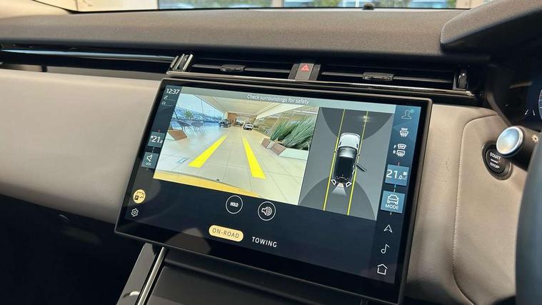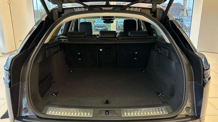 Adaptive cruise control with steering assist, Android Auto, Apple CarPlay, Blind spot assist, Bluetooth connectivity, Brake pad wear indicator warning light, Driver condition monitor, eCall emergency call system, Front and rear parking aid, InControl remote, Land Rover InControl apps, Lane keep assist, Pivi pro with connected navigation, Rear collision monitor, Rear traffic monitor, Service indicator, Speed proportional electronic power assisted steering (EPAS), Traffic sign recognition with adaptive speed limiter, Trip computer, Voice control system, Wireless device charging, 8 speed automatic transmission, Adaptive dynamics, All terrain progress control, Electronic air suspension, Open differential with torque vectoring by braking, Single speed transfer box, DAB radio, Steering wheel mounted controls, 3rd brake light, Acoustic laminated windscreen, Auto dimming interior rear view mirror, Automatic headlamp levelling, Automatic headlights, Body coloured bumpers, Boot protection plate, Electric windows with one touch open/close and anti trap, Flush deployable exterior door handles, Follow me home headlights, Heated rear window with timer, Heated washer jets, Heated windscreen, Metal front tread plates, Metal load space scuff plates, Pixel LED headlights with signature DRL, Power fold, auto-dimming, heated door mirrors with memory and approach lights, Rain sensor windscreen wipers, Rear animated directional indicators, Rear fog lights, Rear side wing doors, Rear wash/wipe, Tailgate/boot lid spoiler, Trailer stability assist, Velar badge, 3 seat bench in 2nd row, Ambient lighting, Bright metal pedals, Carpet mats, Driver/passenger sunvisors with illuminated vanity mirrors, Ebony morzine headlining, Electrically adjustable steering column, Extended leather upgrade, Heated steering wheel, Isofix system on outer rear seats, Loadspace cover, Overhead lighting console, Overhead stowage for sunglasses, Passive front headrests, Rear air vents, Rear centre headrest, Single front passenger seat, Twin front cupholders, Twin sliding front centre armrest, Online pack with data plan - Velar, Power socket pack 2 - Velar, 355mm Front and 325mm Rear brakes, 3x3 point rear seatbelts, Anti-lock braking system (ABS), Cornering brake control, Curtain airbags, Customer configurable autolock, Door side intrusion beams, Driver airbag, DSC - Dynamic Stability Control, Electronic brake force distribution, Electronic parking brake, Electronic traction control, Emergency braking, Front and rear seatbelt reminder, Hill descent control, Hill launch assist, Low traction launch, Passenger airbag, Power operated child locks, Rear airbags, Roll stability control, Side airbags, Tyre pressure monitoring system (TPMS), Global lock and unlock switch on driver door, Immobiliser, Intrusion sensor, Keyless entry, Lock only switch on front passenger door, Locking wheel nuts, Perimetric alarm, Remote central locking, All season tyres,