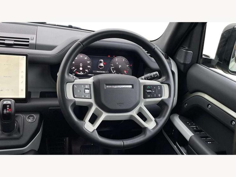 11.4" touchscreen, 360 degree parking aid, 3D Surround Camera with 360 View, 180 Rear View, Front Traffic Detection, Forward Vehicle Guidance, Tow Hitch Assist and clear sight Ground View, Adaptive cruise control, Android Auto, Apple CarPlay, Assisted tailgate with soft close, Blind spot assist, Bluetooth system, Brake pad wear indicator, Clear exit monitor, Connected navigation pro, Driver condition monitor, Electric power assisted steering (EPAS), Interactive driver display, Lane keep assist, Push button start, Rear collision monitor, Rear traffic monitor, Traffic sign recognition with adaptive speed limiter, Trip computer, Wade Sensing, 8 speed automatic transmission, All wheel drive system, Twin speed transfer box, DAB Radio (Digital Audio Broadcasting), Pivi pro connected, Automatic headlight levelling, Automatic headlights, Black exposed rear recovery eyes, Centre high mounted stop light, ClearSight interior rear view mirror, Electric heated/power fold door mirrors with approach lights and auto dimming driver side, Electric windows with one touch open/close and anti-trap, Follow me home lighting, Front fog lights, Heated rear window with timer, Heated windscreen, LED tail lights, Privacy glass, Puddle lights, Rain sensing windscreen wipers, Rear fog lights, Rear side wing doors, Rear wiper, Side hinged tailgate, Trailer stability assist, X-Dynamic badge, 12V power socket in loadspace, 14 way heated and cooled electric adjustable memory front seats with 4 way manual headrests, 3 seat bench in 2nd row, Alpine lights, Configurable cabin lighting, Durable rubber cabin flooring, Durable rubber loadspace flooring, Electric reach + rake adjustable steering column, Extended leather upgrade, Footwell lights, Front passenger isofix child seat attachment, Heated steering wheel, Loadspace cover, Loadspace Hook, Multifunction steering wheel, Overhead stowage for sunglasses, Premium cabin lighting, Rear headrests, Rear ISOFIX, Rear reading lights, Single front passenger seat, Standard seat configuration, Storage glovebox, Sunvisors with illuminated vanity mirrors, Online pack with data plan - Defender, 5 x 3 point seatbelts, ABS, Brake hold function, Cornering brake control (CBC), Customer configurable autolock, DSC - Dynamic Stability Control, EBD - Electronic brakeforce distribution, Electric parking brake (EPB), Emergency brake assist, Emergency braking, ESP + traction control, Front airbags with passenger seat occupant detector, HDC - Hill descent control, Hill launch assist, Low traction launch, Power operated child locks, Remote for (e-Call, Optimised assistance call, InControl app, Climate, beep and flash and door), RSC - Roll stability control, Seat belt reminder, TPMS (Tyre pressure monitoring system), Alarm, Immobiliser, Intrusion sensor, Keyless entry, Locking wheel nuts,