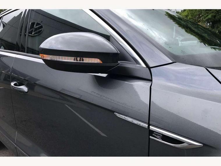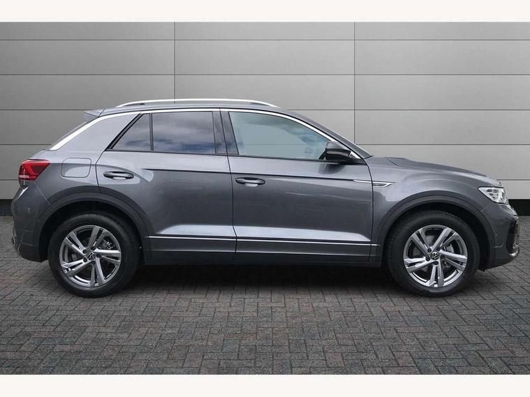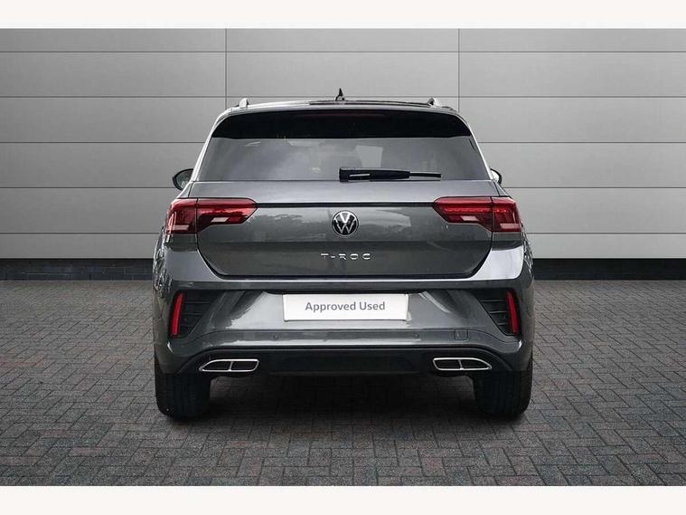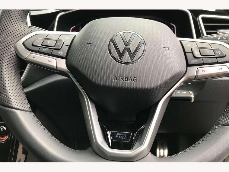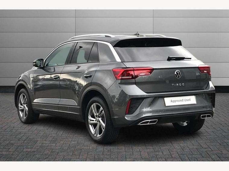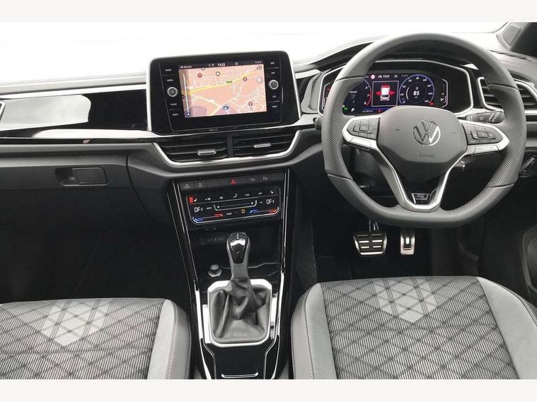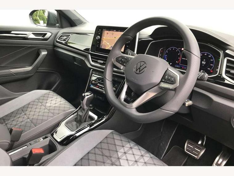 10.25" Digital cockpit pro, Advanced driver attention and drowsiness monitor, Emergency call service, Lane keeping system Lane Assist, Mobile phone interface, Modified key software - reduce switch off time for key status change to Long no motion, Online services, Park assist including front and rear parking sensors, Service interval indicator, Tailgate/trunk lid release from outside, Think blue trainer driver tips and journey analysis, Warning sound and light for front seatbelts unfastened, Wireless app connect, Battery regeneration during braking, Start/stop function with battery regeneration, DAB Digital radio, Diversity antenna for FM reception, Front and rear 6 speakers, Music playback - MP3, WMA and AAC files, Premium USB cable in choice of either Apple or Android smartphone compatibility, SD card slot, Simultaneous pairing of 2 compatible mobile devices, Title and cover art display, We Connect and We Connect Plus functionality, Auto dimming interior rear view mirror, Automatic hazard lights activation under emergency braking, Automatic headlight control with LED separate daytime running lights with coming/leaving home function, Body coloured exterior mirror housings and door handles, Electrically adjustable and heated door mirrors, Extended roof spoiler, Exterior mirrors aspherical on driver side, convex on front passenger side, External USB type C socket and charging sockets, Front windscreen wiper with intermittent wipe and 4 position delay, Heated rear window, LED 3rd brake light, LED rear combination lamps, LED rear number plate lights, Power windows with comfort operation and circuit breaker, Privacy glass for rear side windows and rear window, R-Line design body coloured bumpers, Rain sensor, Rear exhaust tailpipe, Rear fog light on one side and reversing lights on both sides, Rear side wing doors, Rear wash/wipe with intermittent wipe setting, Remote electrically foldable door mirrors, puddle lights and reverse activated passenger's door mirror, 12V power socket in centre console, 3 rear head restraints, 3 seat bench in 2nd row, 4 load lashing points in luggage compartment, Air care climatronic air conditoning system with active combination filter and 2-zone temperature control, Black roof lining, Chrome plated decorative trims, Chrome plated radiator grille inserts, air vent surrounds and light switch surrounds, Door and side trim panel with leatherette insert, Front + rear carpet mats, Front centre armrest, Front cupholders x 2, Front footwell illumination, Front reading light, Front scuff plates with R Line logo, Front seat back storage pockets, Glove compartment door with light, Instrument lighting, white adjustable panel illumination, Interior ambient lighting and surround lighting, Interior light delay, Isofix child seat preparation, Leather gearshift handle, Load-through provision with cup holder when folded down ('Unsplit rear seat bench, split folding backrest, with centre armrest), Luggage compartment lighting, Single front passenger seat, Stainless steel pedals, Storage compartment in left and right luggage area, Storage compartment in rear doors, Storage compartments in driver and front passenger doors, Sunvisors with illuminated vanity mirrors, Variable boot floor, height adjustable and removable, Driver assistance pack without proactive passenger protection - T-Roc, 3 point height adj front seatbelts + pretensioners, 3 point seatbelts in outer rear with ECE label, ABS, Child locks on rear doors, City emergency braking and pedestrian monitoring, Driver and front passenger airbag with front passenger airbag deactivation, Driver and front passenger safety-optimised head restraints, Drivers seatbelt reminder, Electronic parking brake, Electronic Stability Control (ESC) inc EDL (Electronic Differential Lock) and ASR (Traction Control), Front and rear passengers curtain airbag system including front side airbags, Hill start assist, Predictive pedestrian protection, Rear disc brakes, Two tone horn, Tyre pressure loss indicator, Volkswagen roadside assistance, Piano black decorative inserts in dashboard and front door trim panels, Trims for alloy wheels,
