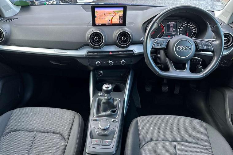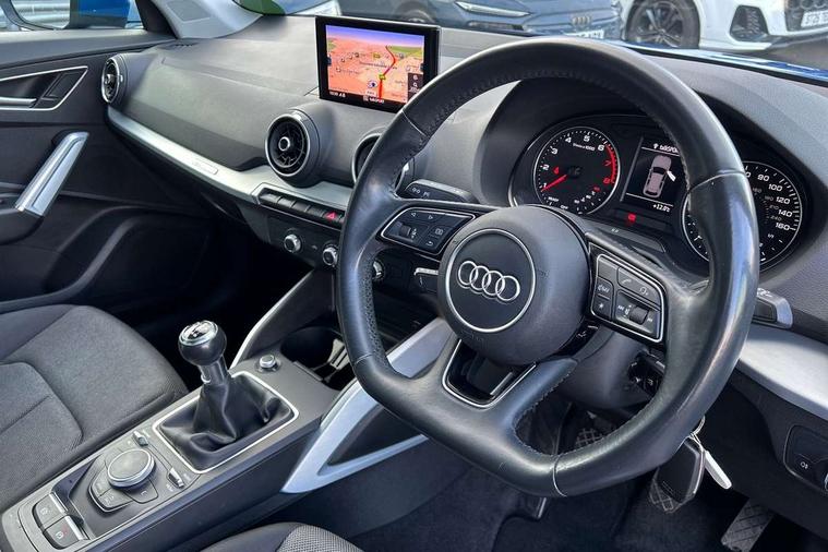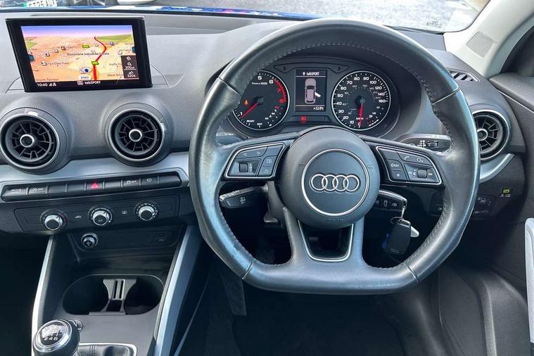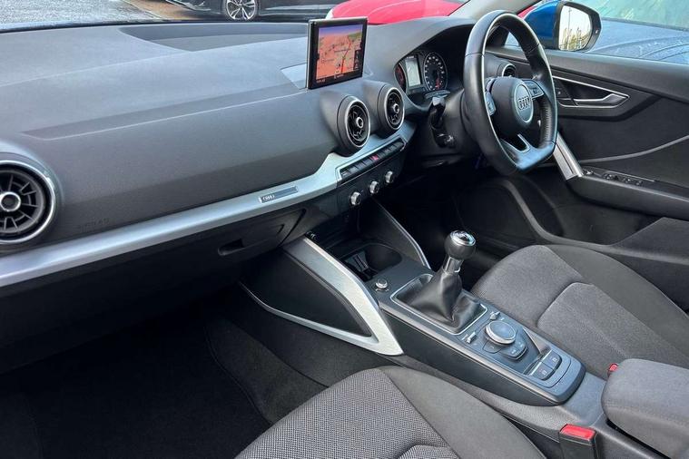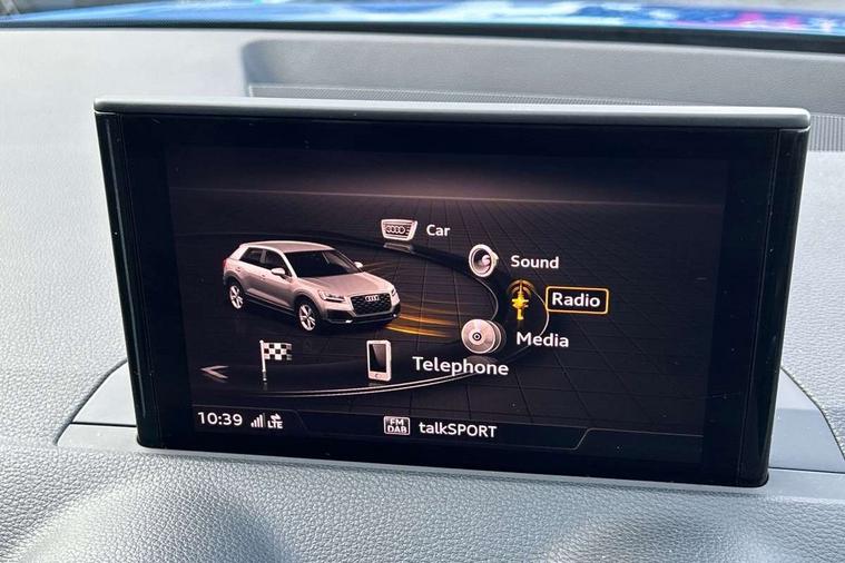 Audi drive select, Audi smartphone interface, Bluetooth hands free telephone connection, MMI - Multi Media Interface control system, MMI SD card Navigation, PAS, Service interval indicator, Voice control system, Dynamic suspension, Audi music interface, Aux input, CD player, DAB digital radio module, MMI radio plus with 7" colour MMI screen and MMI controller, USB port, Body colour door mirrors, Chrome exhaust tailpipe, Door mirror integrated indicators, Electrically adjustable and heated door mirrors, Front and rear electric windows, Rear wiper, Sunband for windscreen, Aluminium door sill trims, Centre console with storage/cupholders, Front and rear door pockets, Front and rear headrests, Front and rear velour floor mats, Front centre armrest, Front sports seats, Glovebox, Height adjustable front seats, Height/reach adjust steering wheel, ISOFIX on front passenger and rear outer seats, Storage compartment in rear centre console, Titanium grey cloth headlining, Non smoking pack - Q2, 3x3 point rear seatbelts, ABS+Electronic Brake force Distribution, Curtain airbags, Driver and passenger airbags, Driver and passenger side airbags, EDL + ASR, Electrically operated child locks on rear doors, Electromechanical parking brake, ESP, Multi-Collision braking, Pre-sense front with pedestrian recognition, Seatbelt warning light, Tyre pressure monitoring system, Warning triangle and first aid kit, Locking wheel bolts, Remote central locking, Thatcham category 1 alarm + immobiliser, Aluminium interior trim,