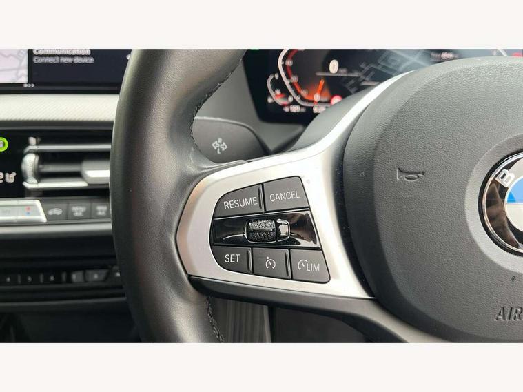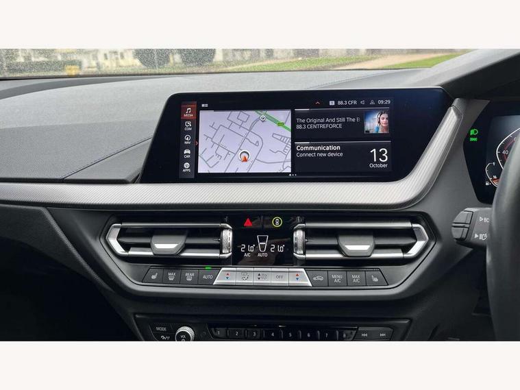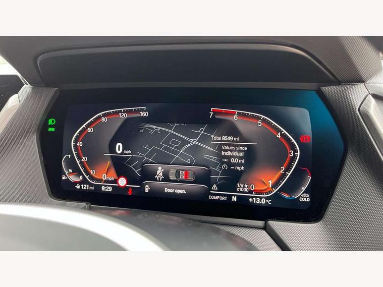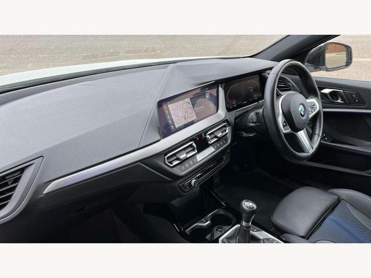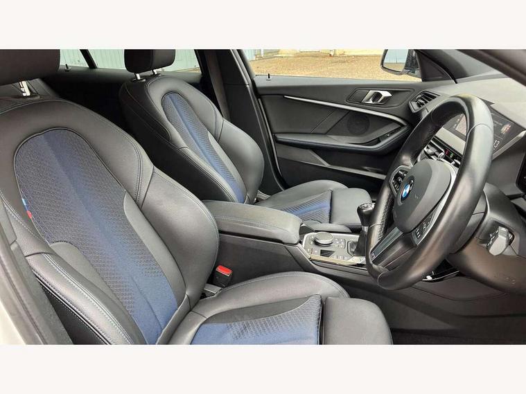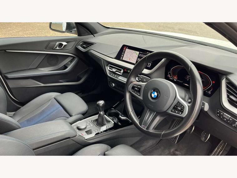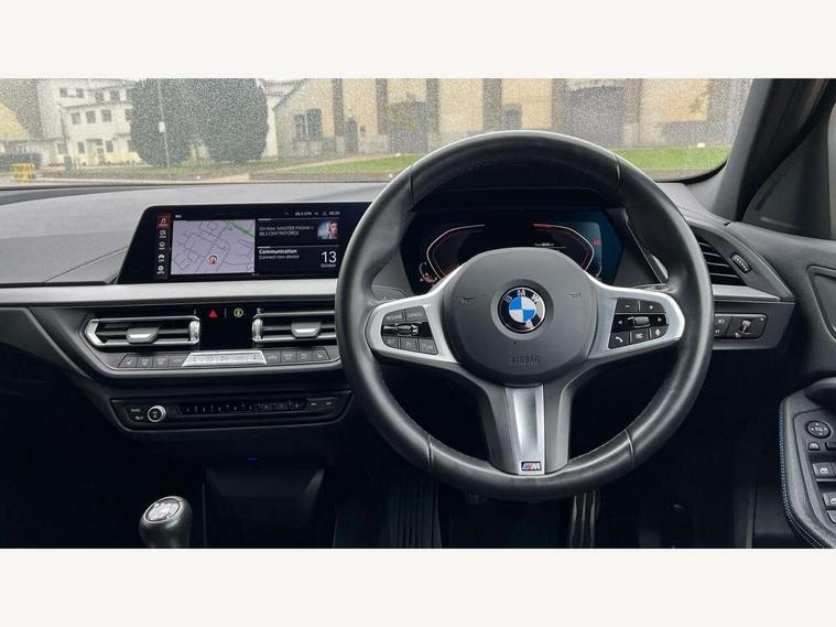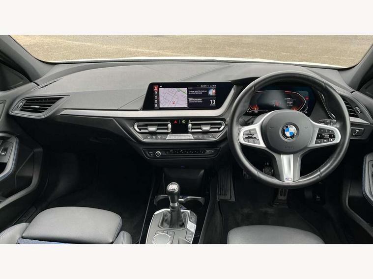 Active guard plus, Attentiveness assist, BMW ConnectedDrive online services, BMW Teleservices, Check Control warning system for monitoring of lights and door/luggage compartment open warning, Cruise control with speed limiter, Eco pro mode, Front axle single joint with specific axle kinematics to minimise drive influences on steering + provide increased rigidity agile driving behaviour, Integrated owners handbook, Lane departure warning system, Oil sensor for level and grade, On board computer, Optimum shift indicator, Personal Profile, Pull away assistant, Rigidly mounted rear subframe - Multi link construction with separate spring / damper configuration and excellent driving characteristics, Speed limit Info including no-overtaking indicator, Aluminium lightweight construction, Anti roll bar front and rear, Balancer shaft, Double VANOS twin scroll turbocharging system, Drive Performance Control, Electronic differential lock, High precision injection, M sport suspension, Petrol Particulate Filter, Twin tube gas filled shock absorbers with degressive characteristic curve, VALVETRONIC engine management, DAB Digital radio, Auto dimming rear view mirror, Automatic headlight beam throw control, Automatic windscreen wipers and automatic headlight, Body colour door handles, Body colour mirror caps, Body colour roof trims, Chrome 'M' logo side designation, Chrome exhaust twin tailpipes round 90mm in left, Chrome kidney grille frame with Satin Aluminium struts, Direction indicator side lights in exterior mirrors, Electrically adjustable exterior mirror with mirror adjustment switch on drivers armrest and aspheric on driver side, convex on passenger side, Fading support, Folding side mirrors with auto dimming/folding wing mirrors with auto dimming, Follow me home headlights, Front and rear bumper system with replaceable deformation elements, Front and rear electric windows with open and close fingertip control, anti trap facility and comfort closing, Front door sill finishers in black plastic with M designation in metallic look, Green tinted heat protection glazing, High gloss shadowline window frame, Recess cover mirror frames and B/C pillar embelisher trim, High level third brake light, Integrated front windscreen with washer jets, LED daytime running lights, LED eyebrow turn indicators, LED front fog lights, Lightweight engineering, Matt black air guide grilles, Matt black wheel arch trim, Model designation on electric bootlid, Nearside reverse light in rear light cluster, Preparation for high beam assistant, Rear fog lights, Rear side wing doors, Rear window wiper, Shark fin antenna, Trailer stabilisation logic, Visible VIN plate, Welcome lighting, 12V power socket in front centre console with blanking plug, 3 rear seat head restraints, 3 seat bench in 2nd row, 3 spoke sports leather steering wheel in black leather with black stitching and decorative finisher in pearl chrome, specific M badge + leather knob, Anthracite headlining, Black boot net with lashing eyes, Cargo function on 2nd seat row, Child seat ISOFIX attachment for two outer rear seats and front passenger seat with anchorage points, Conditioned based service, Driver and front passenger backrest net on rear, Driver and front passenger seat heating, Driver side folding compartment in instrument panel, Folding rear clothes hook, Four grab handles integrated in roof lining, Front and rear door pockets with bottle holders, Front and rear side armrest integrated into door trim, Front armrest, Front sports seats, Gearshift lever with M designation, Glove compartment, Height adjustable front head restraints, Luggage compartment for bag hooks on left and right, foldable luggage compartment liner and four lashing eyelets, Manual adjust steering wheel, Multi-function controls for steering wheel, Single front passenger seat, Storage compartment in centre console, Storage compartment in luggage compartment, Stowage of the parcel shelf in luggage compartment trim, Sun visors with vanity mirrors and insert tab, Two front centre console cupholders, Two zone automatic air conditioning, Type C two USB ports in rear centre console, Velour floor mats, Additional interior lighting pack - 1 Series, BMW live cockpit professional pack- 1 Series, Connected pack professional - 1 Series, Interior lights pack - 1 Series, M Sport exterior styling aerodynamics pack - 1 Series, 2 tone horn, 3 point seatbelts on all seats, front pyrotechnic belt tensioners, stopper and belt force limiters, rear coded belt buckles, Airbags - Front driver/passenger, front and rear curtain head protection, front side, manual deactivation of front passenger airbag, Anti lock braking system (ABS) with brake assist, BMW emergency call, Brake drying, Braking readiness, Child proof locking system in rear door, City braking function, Comfort modes, Cornering brake control, Crash sensor activating of airbags, Unlocking doors, hazard warning lights, interior light, safety battery terminal, Driver and front passenger seat belt security check, Dynamic stability control + (DSC+), Dynamic Traction Control - DTC, Electrically operated hand brake, Front and rear disc brakes, Seatbelt warning, Side impact protection, Tyre pressure monitoring system, Warning triangle and first aid kit, Central locking switch for all doors, fuel filler cap and luggage compartment, Deadlocking function system to all doors, Drive away locking system on all doors and luggage compartment with de-activated in iDrive settings, Locking wheel bolts, Remote control with integrated key with High-gloss Black inlay and M designation and 1 button for open/ close lock, window, open luggage compartment, Start/stop button illuminated in centre console with keyless engine start and auto start stop deactivation button, Thatcham Cat.1 alarm and immobiliser, Wheel slip limitation close to the actuator (ARB), Contrast stitching on instrument panel, 18" Burnished M double spoke bi-colour alloy wheels finished in orbit grey - style 819M