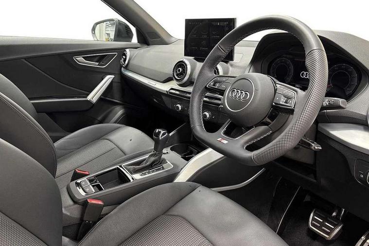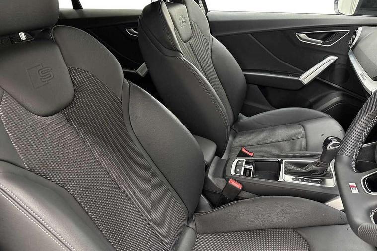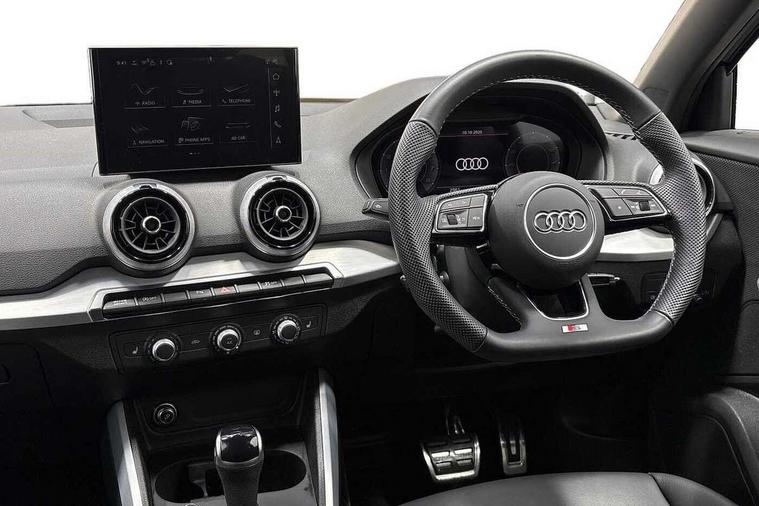 3D map display, Audi connect navigation and infotainment includes innovative services, Audi connect remote and control connects your vehicle to your smartphone, Audi drive select: S tronic - power steering assistance + engine + gearshift (modes: comfort, auto, dynamic, efficiency, individual), Audi smartphone interface - Apple carplay/Android Auto, USB connect, 2xSDXC card readers, voice control for navi, telephone, music and 3rd party apps, Audi virtual cockpit, Automatic start/stop system with recuperation, Bluetooth interface includes bluetooth audio streaming, Camera based traffic sign recognition, Cruise control, Distraction and Fatigue warning, E-call, Jukebox hard drive memory for music (10GB), Lane departure warning, MMI navigation plus with 8.8" touchscreen, Natural voice recognition, Power operated tailgate, Progressive steering, Rear parking sensors, Sport suspension, 6 passive loudspeakers, DAB Digital radio, USB type C port, Audi beam, Auto dimming rear view mirror, Black window trims, Bumper in full body colour paint finish, Electrically adjustable, folding, auto dimming and heated door mirrors with integrated LED side indicators, Front windscreen with grey tinted sunband, LED daytime running lights, LED headlights with dipped beam, high beam, position lights, indicators, LED rear lights, LED third brake light, Privacy glass - dark tinted rear and rear side windows from B-pillar backwards, Rear side wing doors, Rear wiper, Variable front intermittent wipers, Wheel arch trims in manhattan grey, 12v socket in front, 3 seat bench in 2nd row, 3 spoke flat bottomed multi-function leather sport steering wheel with gear shift paddles, 4-way electric lumbar support for front seats including manual seat height adjustment for both front seats, 60/40 split folding rear seat bench, Black carpets, Black cloth headlining, Front and rear head restraints, Front centre armrest, Front sport seats, Front/rear floor mats, Height/reach adjust steering wheel, Illuminated door sill trims with S logo, ISOFIX child seat mounting in front passenger and rear outer seats, Manual air conditioning, Single front passenger seat, Stainless steel pedals, Black styling pack - Q2, 3x3 point rear seatbelts, 6 airbags - Front, curtain and front side airbags, Electromechanical parking brake, Electronic stabilisation control including ABS, ASR and EDL, Front passenger airbag deactivation, Hill hold assist, Pre-sense front with pedestrian recognition, Seatbelt monitoring, Tyre pressure warning light with visual and acoustic warning, Warning triangle and first aid kit, Anti theft alarm, Anti theft wheel bolts, Electronically operated child locks, Remote central door locking, Aluminium interior element, Black dashboard, Gloss black centre console, Matt brushed aluminium trim inlays, Tool kit,