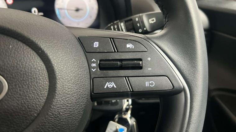 10.25" digital supervision cluster, 2nd Gen eCall, 8" Touchscreen with DAB, Apple car play/Android Auto, Cruise control + speed limiter, Forward collision assist with car, pedestrian and cycle detection, Intelligent speed limit warning, Lane follow assist, Lane keep assist, PAS, Rear parking sensor, Rear view camera with dynamic guidelines, USB C port front, 3rd brake light, Dusk sensor, Electric adjustable heated door mirrors, Front grille mesh pattern design, High beam assist, LED daytime running lights, LED Headlights, LED taillights, Rain sensor, Rear side wing doors, Rear wiper, Repositioned flat metal hyundai emblem, 3 seat bench in 2nd row, Adjustable head restraints, Air conditioning, Cloth upholstery, Floor mats, Leather steering wheel, Single front passenger seat, 3x3 point rear seatbelts, ABS with front and rear diagonally split, Autonomous emergency braking, Child locks on rear doors, Front ventilated disc brakes, Rear solid disc brakes, Tyre pressure monitoring system, 16" alloy wheels, Tyre repair kit,