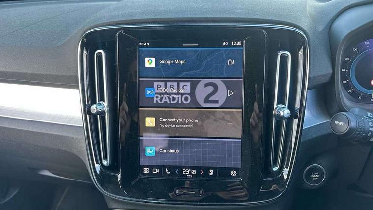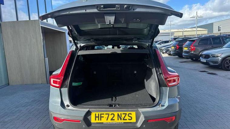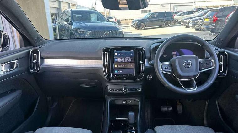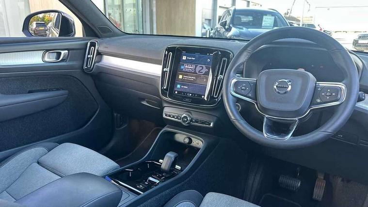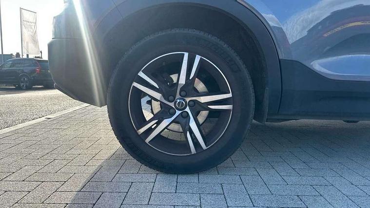 12.3" Progressive Driver Display, 9" centre console portrait touch screen, Adjustable steering wheel force, Bluetooth hands free telephone kit, E-call, eCall emergency call system, Front park assist, Google automatic services - Nav with google maps, apple carplay/android auto, voice recognition with google assistant, Hands free power tailgate, Lane keep assist with driver alert control, Oncoming Lane Mitigation, Rear park assist, Speed limiter, Speed sensitive steering, Wireless/Inductive Mobile Phone Charging, Dynamic chassis, DAB Digital radio, High performance sound, 8 speakers/250W, front USB and 2 rear type C USB, Steering wheel mounted remote controls, Adaptive brake lights with high level LED brake lights, Auto dimming interior mirror, Automatic headlamp levelling, Automatic LED Headlights + Active high beam incorporating daytime running lights, Front aluminium tread plates, Front and rear electric windows, High gloss black front and rear skid plate, High gloss black mesh front grille with high gloss black surround, High gloss black window trim, Home safe and approach lighting, Integrated roof rails in high gloss black, LED front fog lights, Puddle lights, Rain sensor with automatic windscreen wiper activation, Rear side wing doors, Rear wiper, Roof antenna, Roof spoiler, Visible VIN plate, 12V socket in front tunnel console and luggage compartment, 2-Zone electronic climate control with CleanZone air quality system and pollen filter, 3 seat bench in 2nd row, 3 Spoke tailored steering wheel with chrome trim, 60/40 versatile split folding rear seat, A-pillar parking ticket holder, Ambient front door and instrumental panel lighting, Centre console cupholders and storage, Flexible load floor and grocery bag holder, Floor mats, Front door pocket and front cupholder illumination, Front footwell illumination, Front headrests, Front reading light and theatre lighting, Front seat cushion extensions, Front tunnel pocket, Glovebox bag hook, Height adjustable passenger seat, Height/reach adjustable steering column, High gloss centre tunnel deco, Illuminated glovebox, Illuminated luggage compartment, Illuminated tailgate, Illuminated vanity mirrors, Integrated waste bin, Isofix attachments on outer rear seats, Load protection net, Multi directional lumbar support, Power driver seat with memory + exterior mirrors memory, Rear armrest / integral cup holders / storage tray, Rear headrests, Rear reading and courtesy lights, Single front passenger seat, Underfloor cargo storage, Climate pack - XC40, 3x3 point rear seatbelts, City safety with steering support with Pedestrian + cyclist + front collision warning with full auto brake and rear auto brake, Drivers knee airbag, Dual stage driver/passenger airbags, Electronic parking brake with auto hold, First aid kit, Front and outer rear seatbelt reminder and pretensioners, Front seats SIPS airbags, Hill descent control, Hill start assist, Inflatable curtain, Passenger airbag cut-off device, Power child locks on rear doors, Road sign information display, Run off Road Mitigation, Run off Road Protection, SIPS (Side Impact Protection System), Slippery road and hazard light alert, Stability and Traction Control with Spin control, Engine Drag Control and Corner Traction Control, Tyre pressure monitoring system, Vehicle deceleration control with Anti-lock Brake System, Electronic Brake Distribution and Emergency Brake Assist, Warning triangle, WHIPS whiplash protection system - front, Anti-theft alarm including immobiliser/volume sensor + level sensor, Care key with user defined top speed, Key integrated remote control central locking + fuel flap with deadlocking system and auto open/close power windows, Keyless drive includes keyless entry and keyless start, Locking wheel nuts, Private locking for tailgate,
