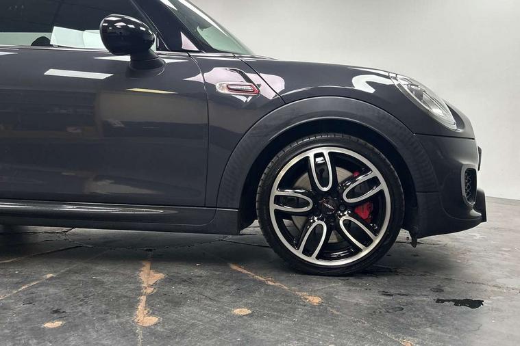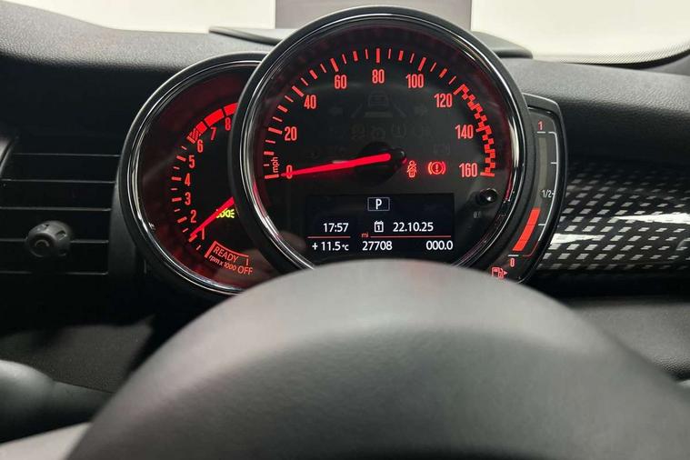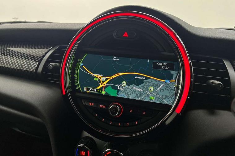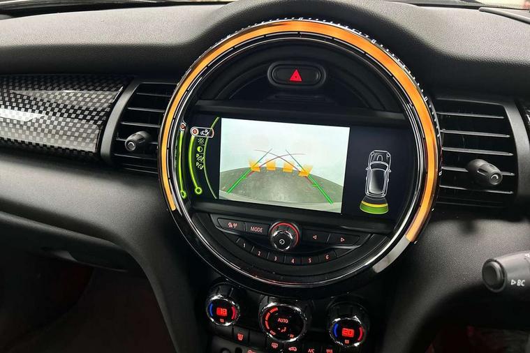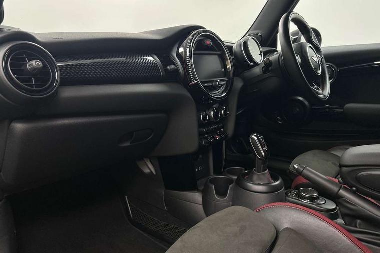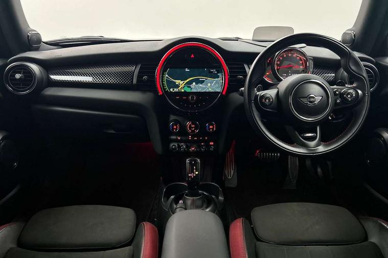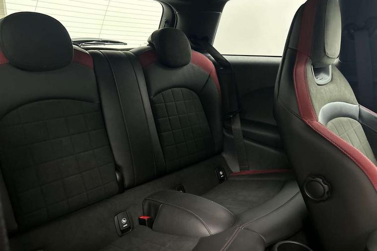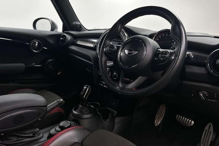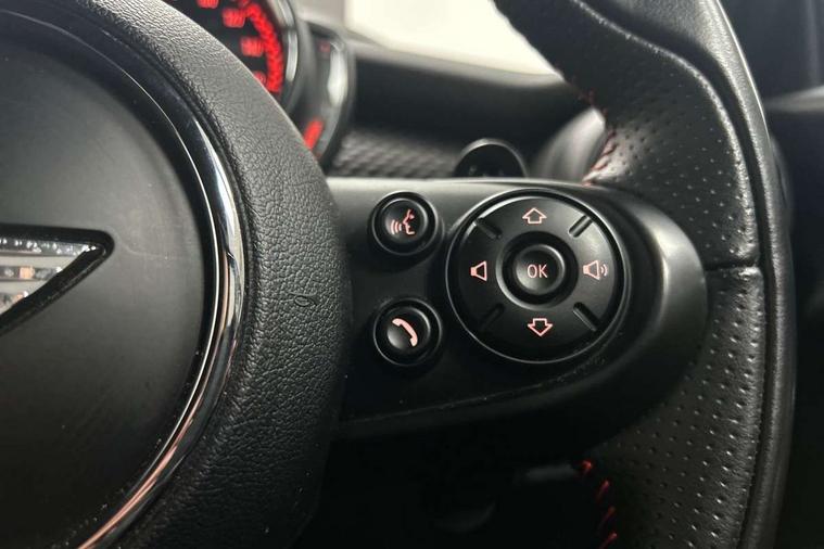 Acoustic seat-belt warning, Brake fluid level warning light, Brake pad wear indicator warning light, DTC - Dynamic traction control, Exterior temperature gauge, Intelligent emergency call, MINI Driving Modes - centre toggle switch to control driving setting (sport, mid and green), MINI TeleServices, Oil level indicator, On board computer, Push button starter, Service interval indicator, Servotronic PAS, Electronic differential lock, Performance Control, Auxiliary input socket, DAB digital radio module, 2 speed wipers+intermittent wipe, Anti dazzle mirror, Anti trapping/one touch open close front windows, Body colour scoop integrated into engine- compartment lid, Body coloured bumpers, Chili red grille bar, Chrome bezels around rear lights and headlights, Chrome door handles, Chrome plated fuel cap, Chrome plated trim on bottom edge of window, Chrome strip on lower grille, Electric front windows, Electrically adjustable door mirrors, Extended wheel arches, Follow me home headlights, Green tinted heat insulating glass, Heated door mirrors/heated windscreen washers, Heated rear window with auto timer, High gloss black tailgate, Honeycomb radiator grille, John Cooper Works roof spoiler, LED fog lights, Metal look door sill finishers, Rear wiper, Side scuttles, Twin chromed exhaust pipes, White indicator lights, 2 rear head restraints, 4 boot load lashing points, 6 way manually adjustable passenger seat, 6-way manually adjustable driver's seat, Active carbon filter, Air recirculation system, Anthracite headlining, Auxiliary socket in centre console storage compartment, Centre console storage, Driver's seat height adjuster, Driver/passenger sunvisors, Easy entry seats, Front and rear cupholders, Front head restraints, Front interior light, Front passenger grab handle, Front seat backrest storage nets, Front sports seats, Gear/selector and handbrake in artificial leather, Internal chrome door handles, Isofix child seat preparation, Luggage compartment lighting, Multifunction steering wheel, Passenger seat height adjuster, Reach + rake adjustable steering column, Rear grab handles, Rear storage trays, Split folding rear seats, Storage compartments in doors, Toolkit in luggage compartment, 3 point seatbelts, ABS/EBD, ASC+T, Brake calipers in red, Cornering brake control (CBC), Crash Sensor - activates hazard/interior lighting + unlocks doors, Driver and passenger airbags, Driver/front passenger side airbags, DSC - Dynamic Stability Control, Fuel cut off safety device, Head airbags, Hill start assist, Passenger airbag deactivation system, Seatbelt pretensioners, Tyre pressure warning, Ventilated front disc brakes, Drive away door locking, Locking wheel bolts, Remote central locking/doors+fuel cap+tailgate, Second remote key, Thatcham category 1 alarm + immobiliser,